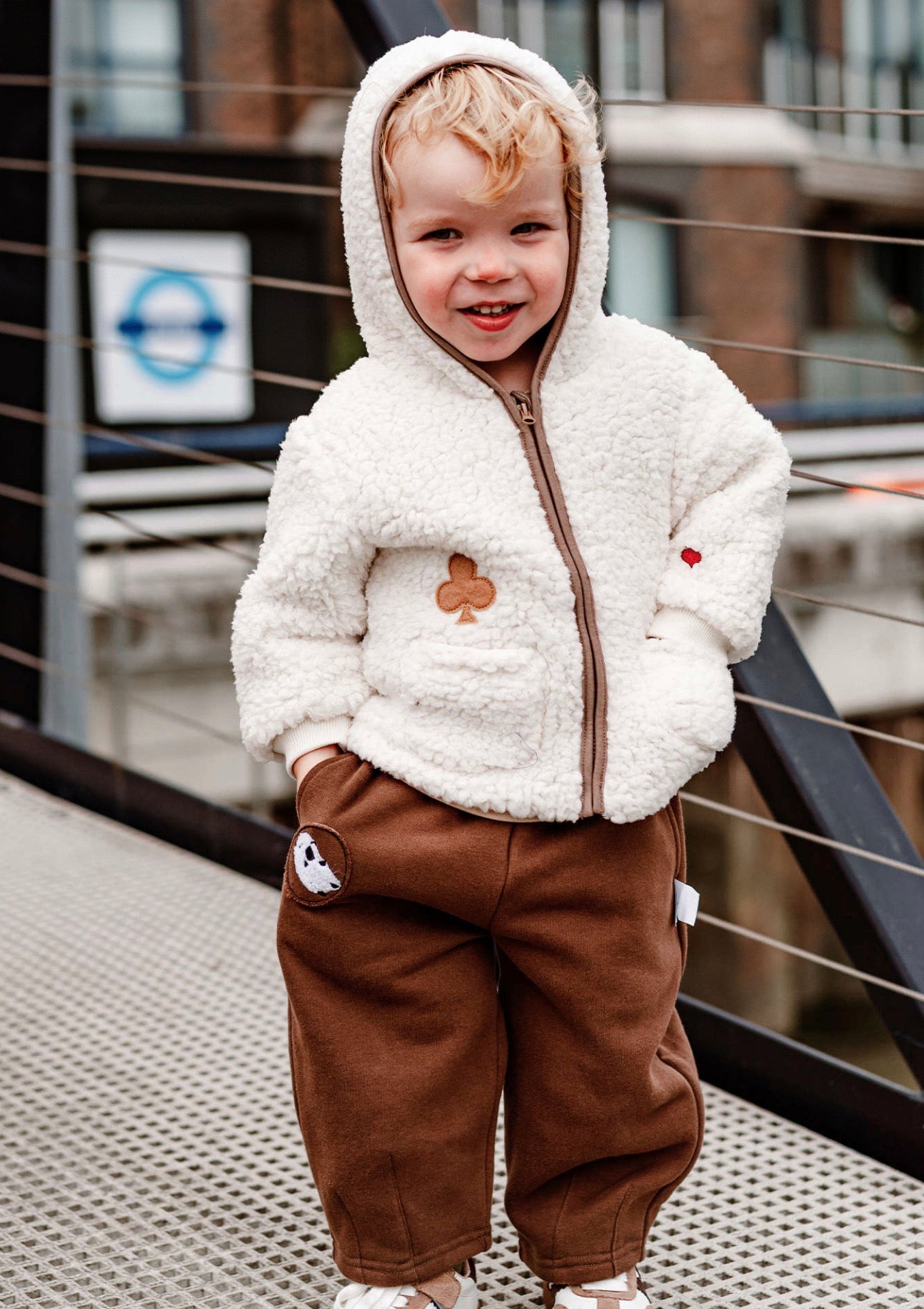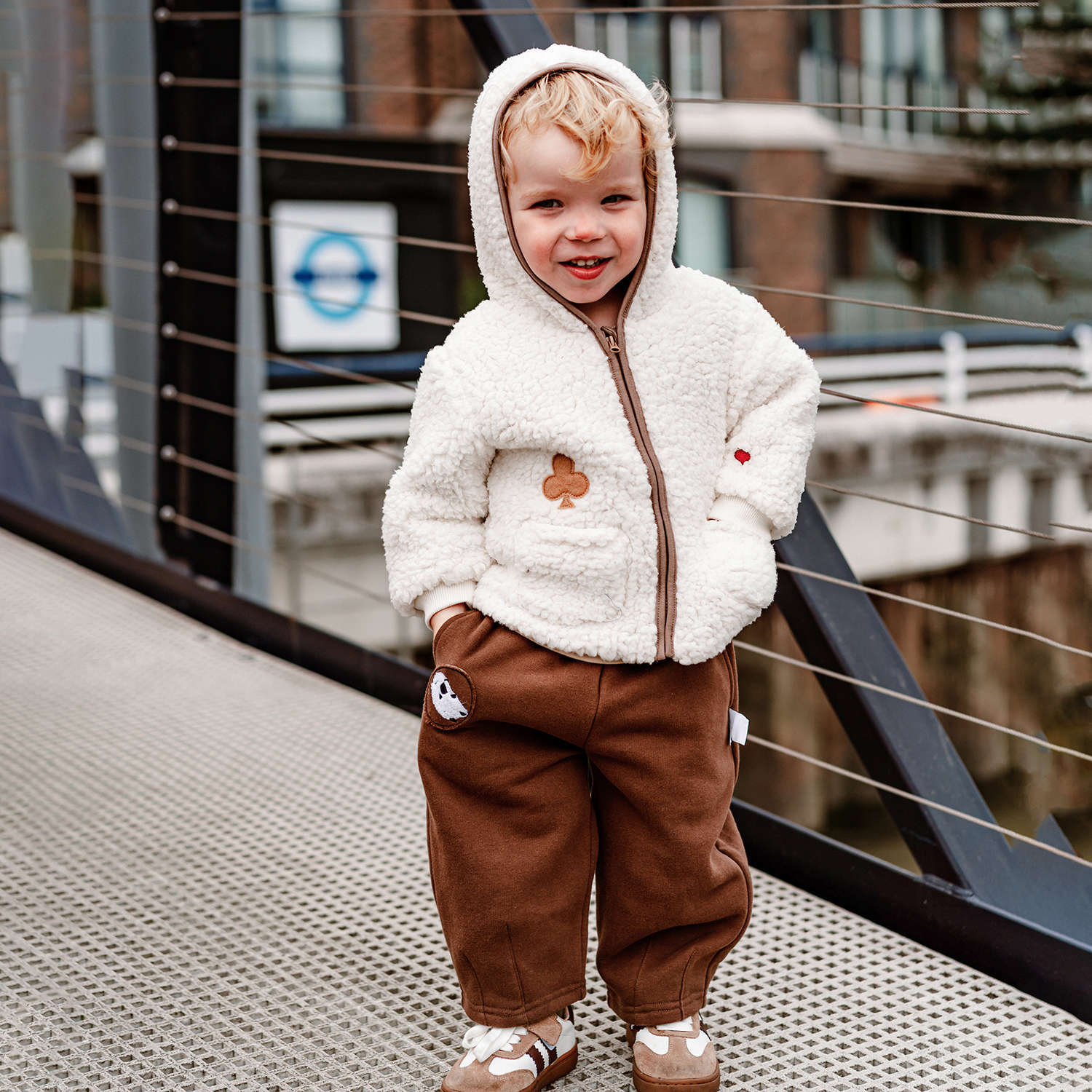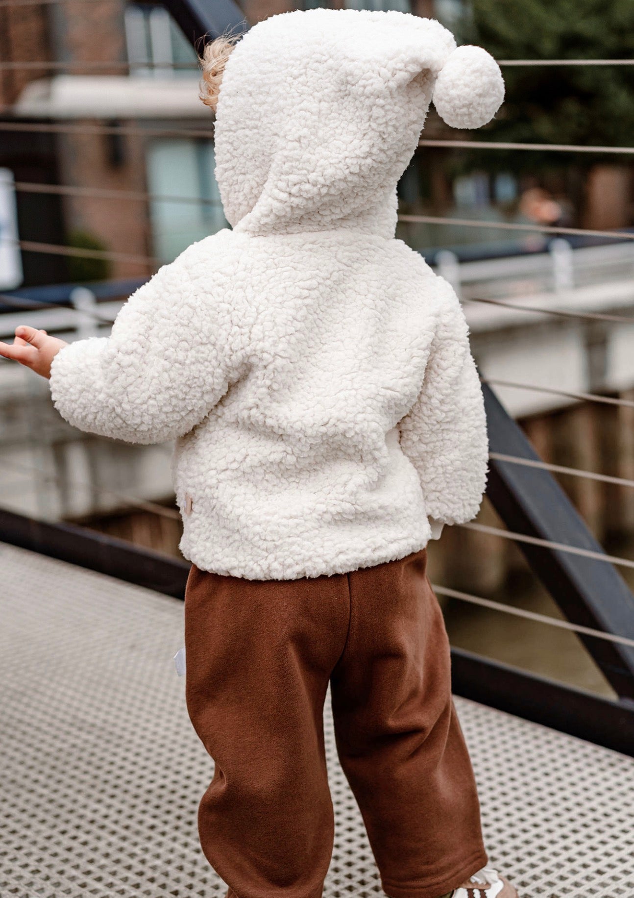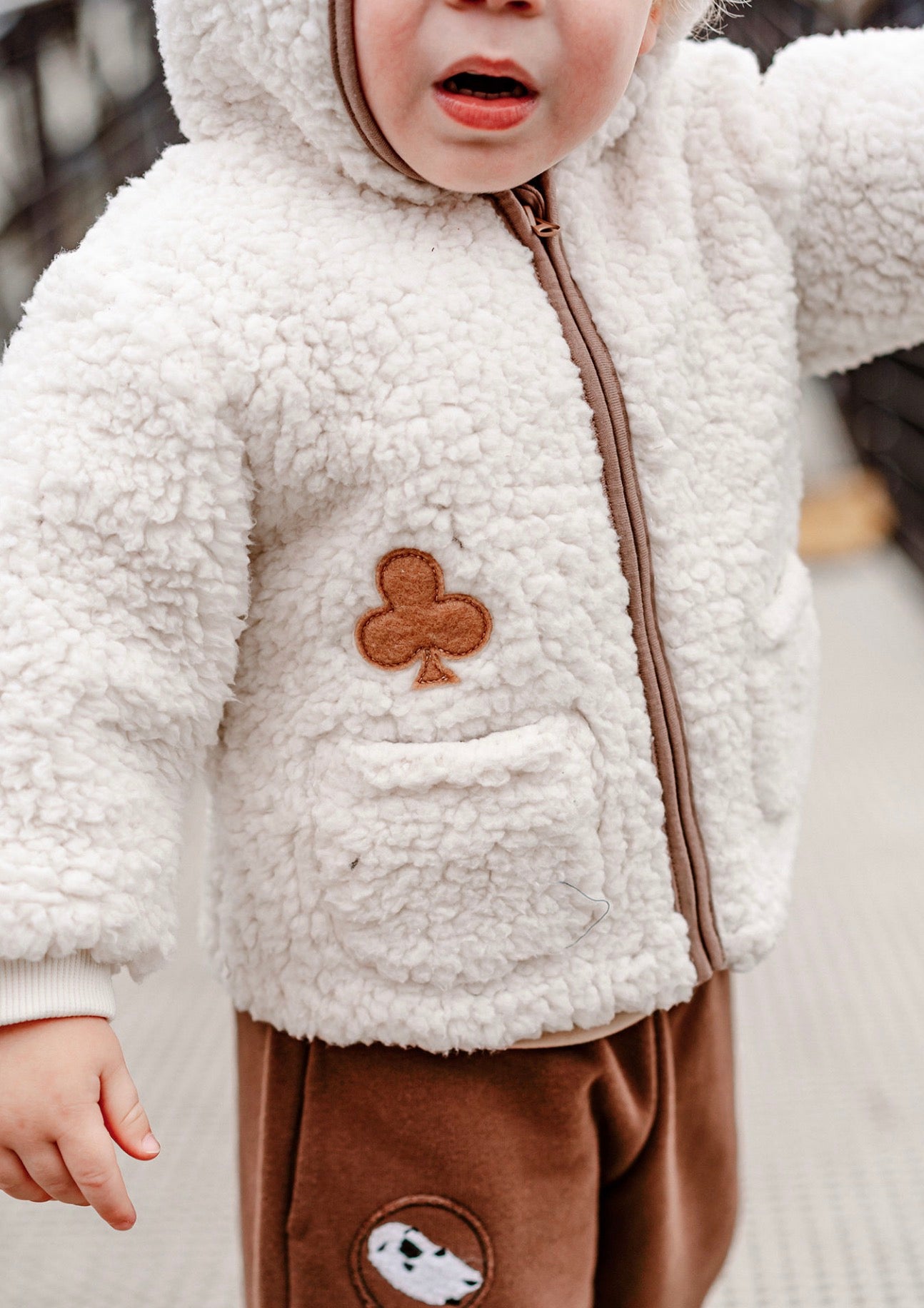 ポンポン付きのフードが遊び心を添えるボア素材のジャケットは、寒い日のおしゃれを楽しむためのアウターです。もこもことした質感が愛らしいこのジップアップは、北欧テイストを感じさせる洗練されたデザインが魅力。厚手の生地がベビーをしっかりと暖め、カジュアルな装いをセンス良く仕上げるトップスとして活躍します。