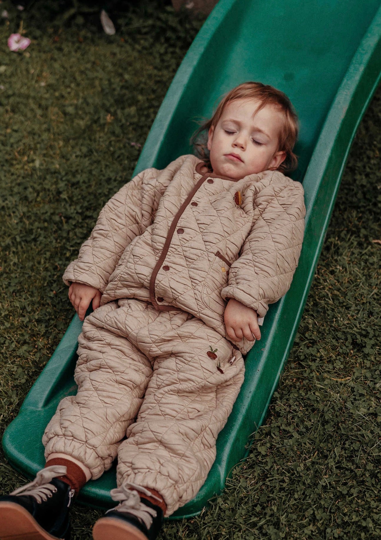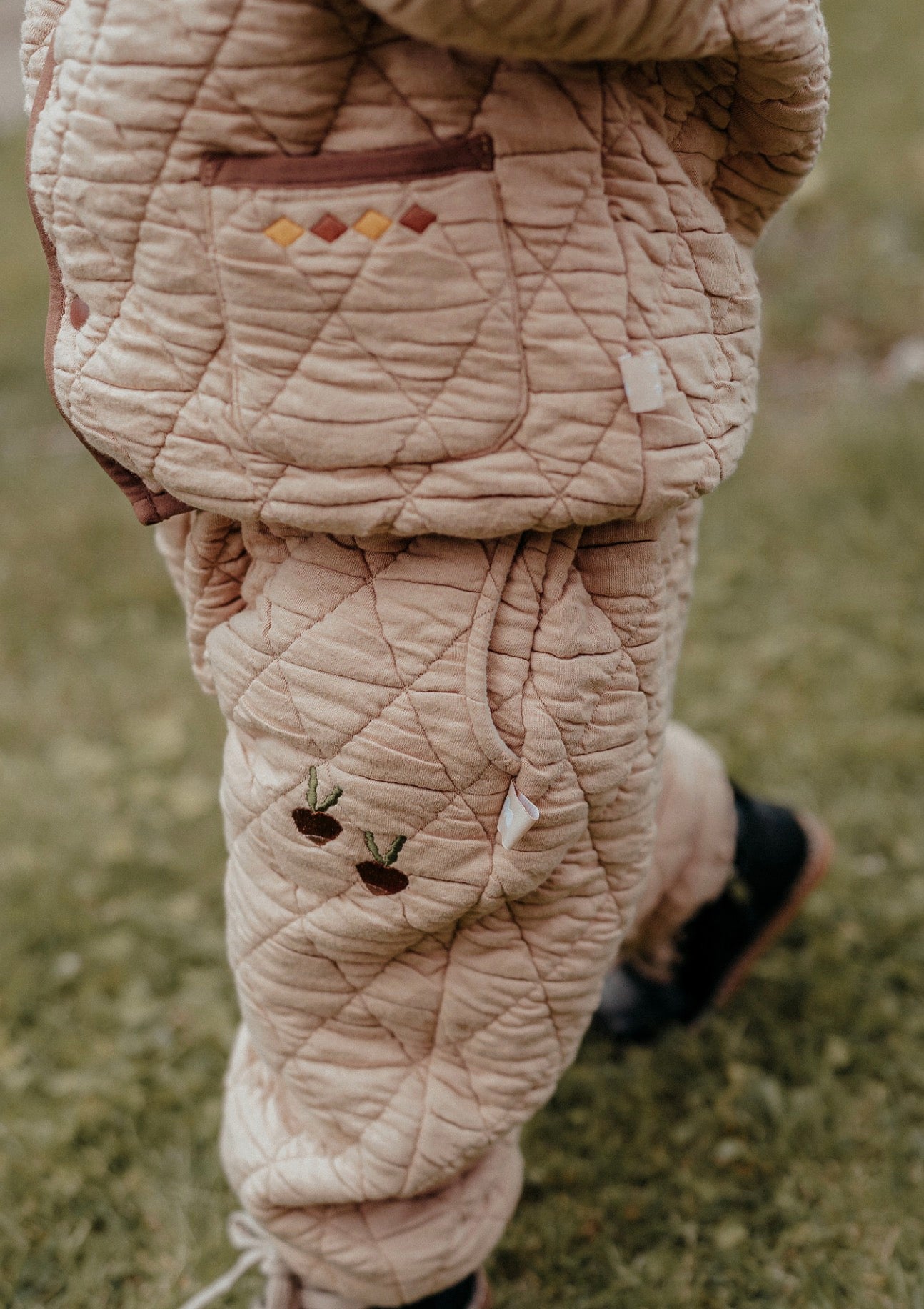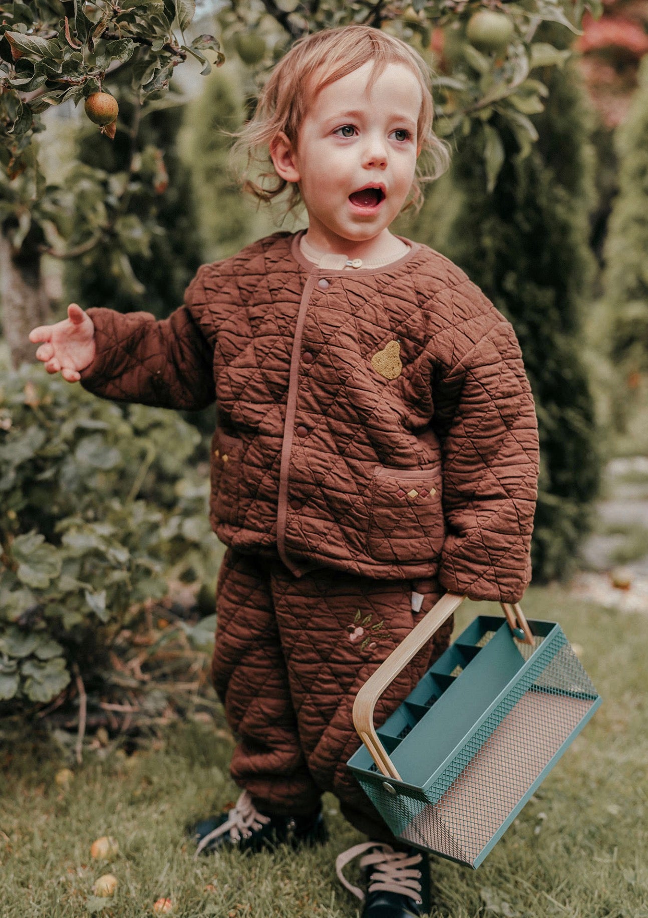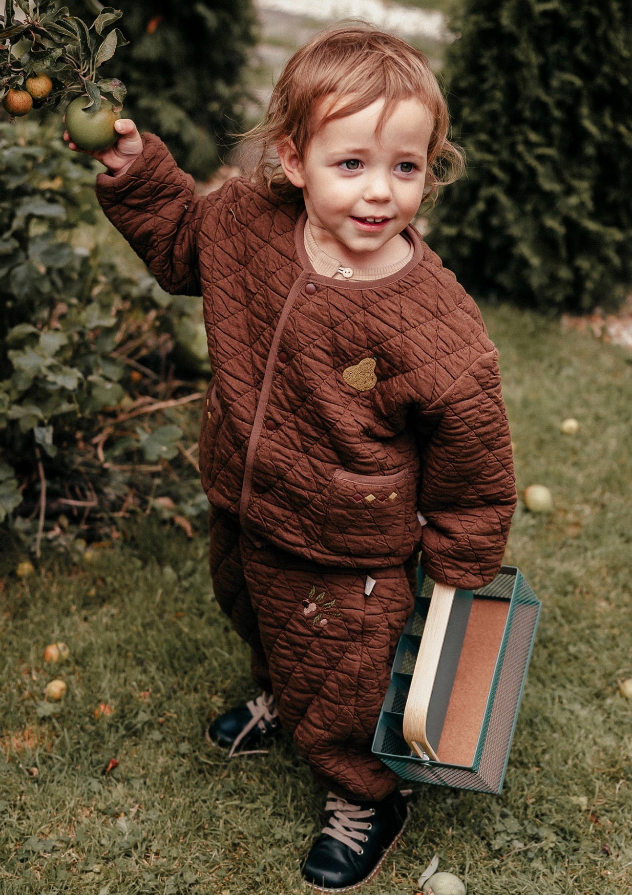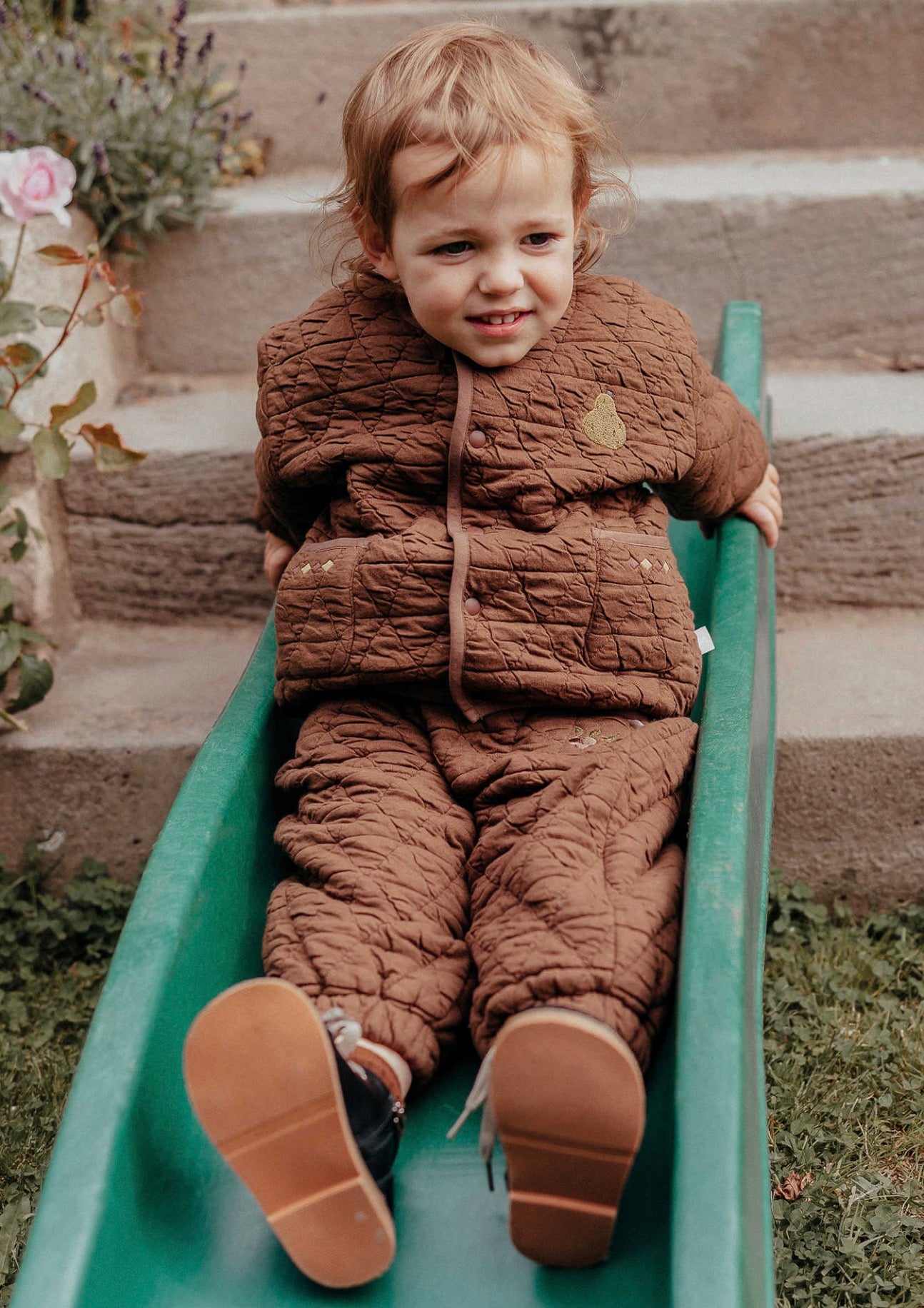 キルティングデザインにパイピングを効かせた長袖ジャケットは、洗練された印象を与えるアウターです。裏起毛素材を使用しているため、しっかりと暖かく、寒い日のお出かけに最適なブルゾン。シンプルで上品なトップスは、どんなコーディネートにも馴染みやすく、カジュアルでありながらもおしゃれなスタイルを完成させるベビー服です。
