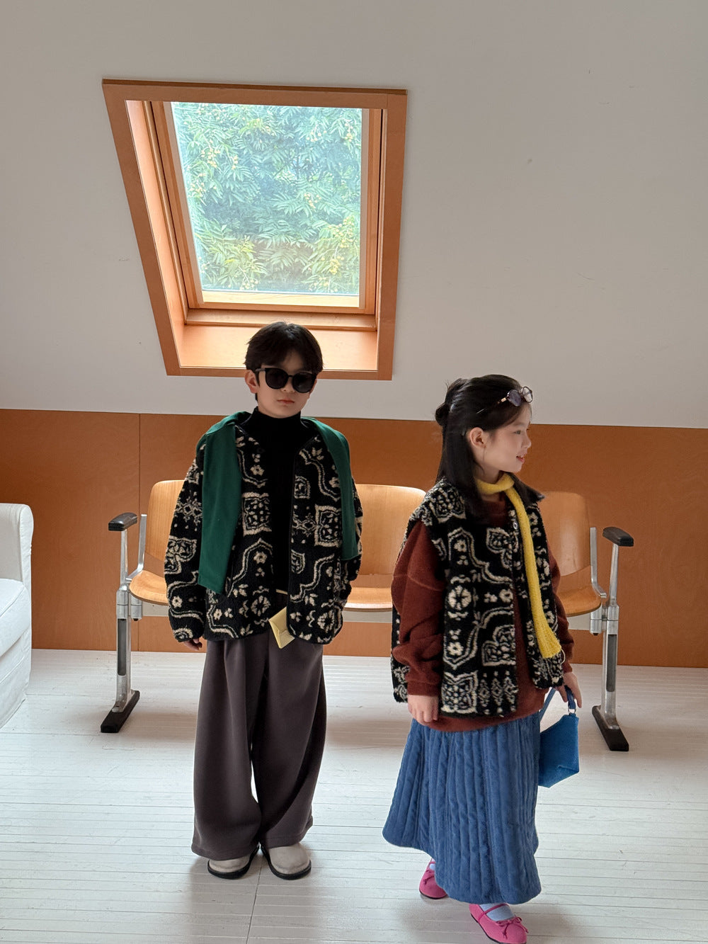 ボアジャケット キッズ 総柄 レトロ 厚手 ノーカラー もこもこ アウター【mh0011658】