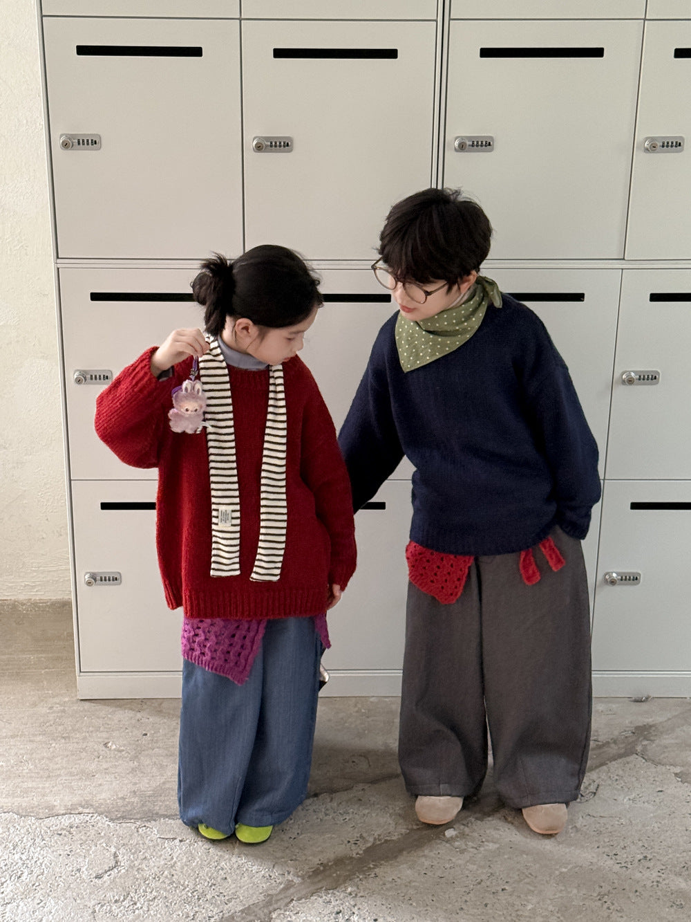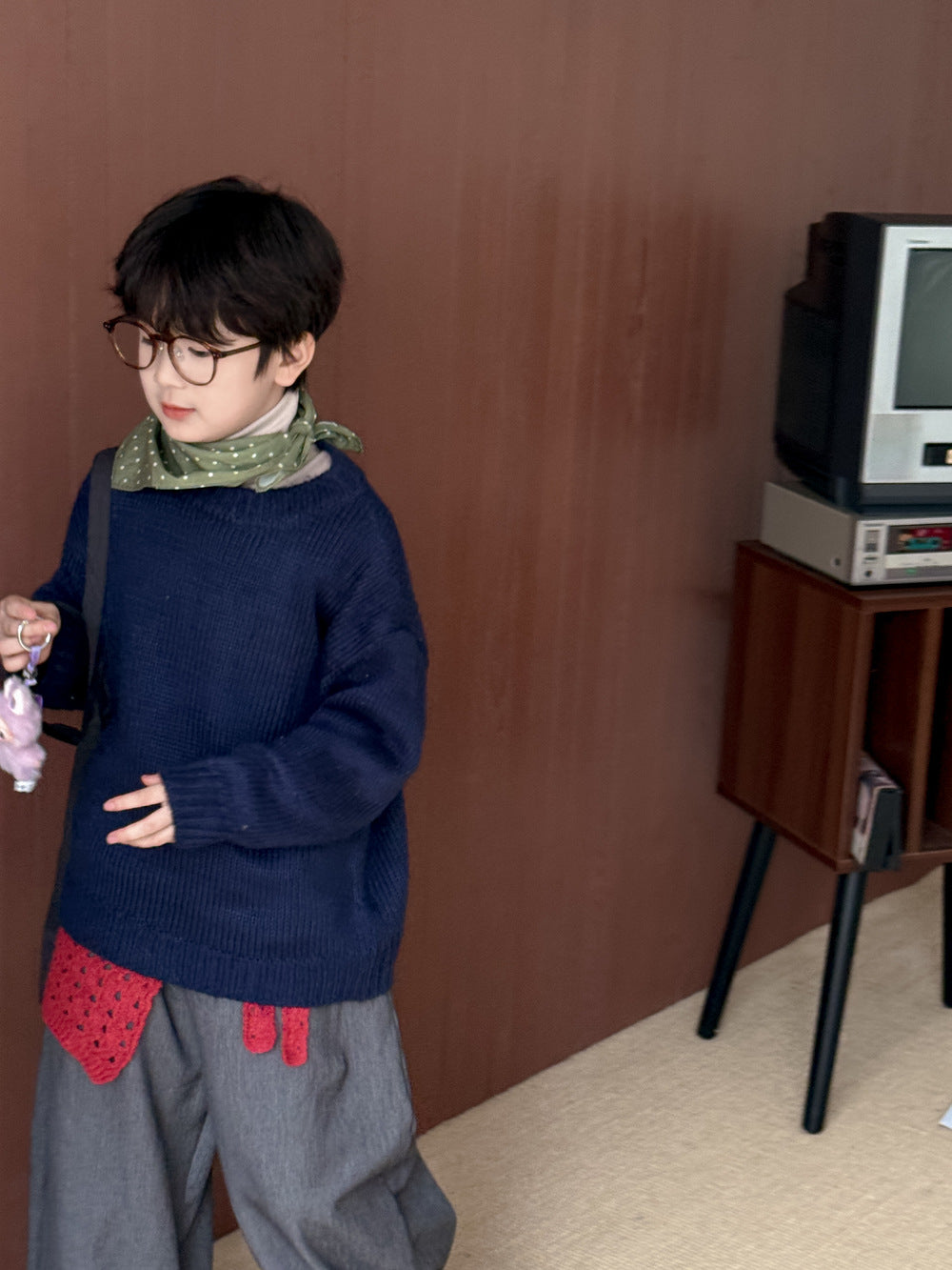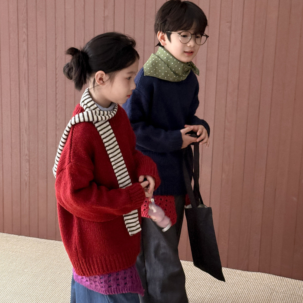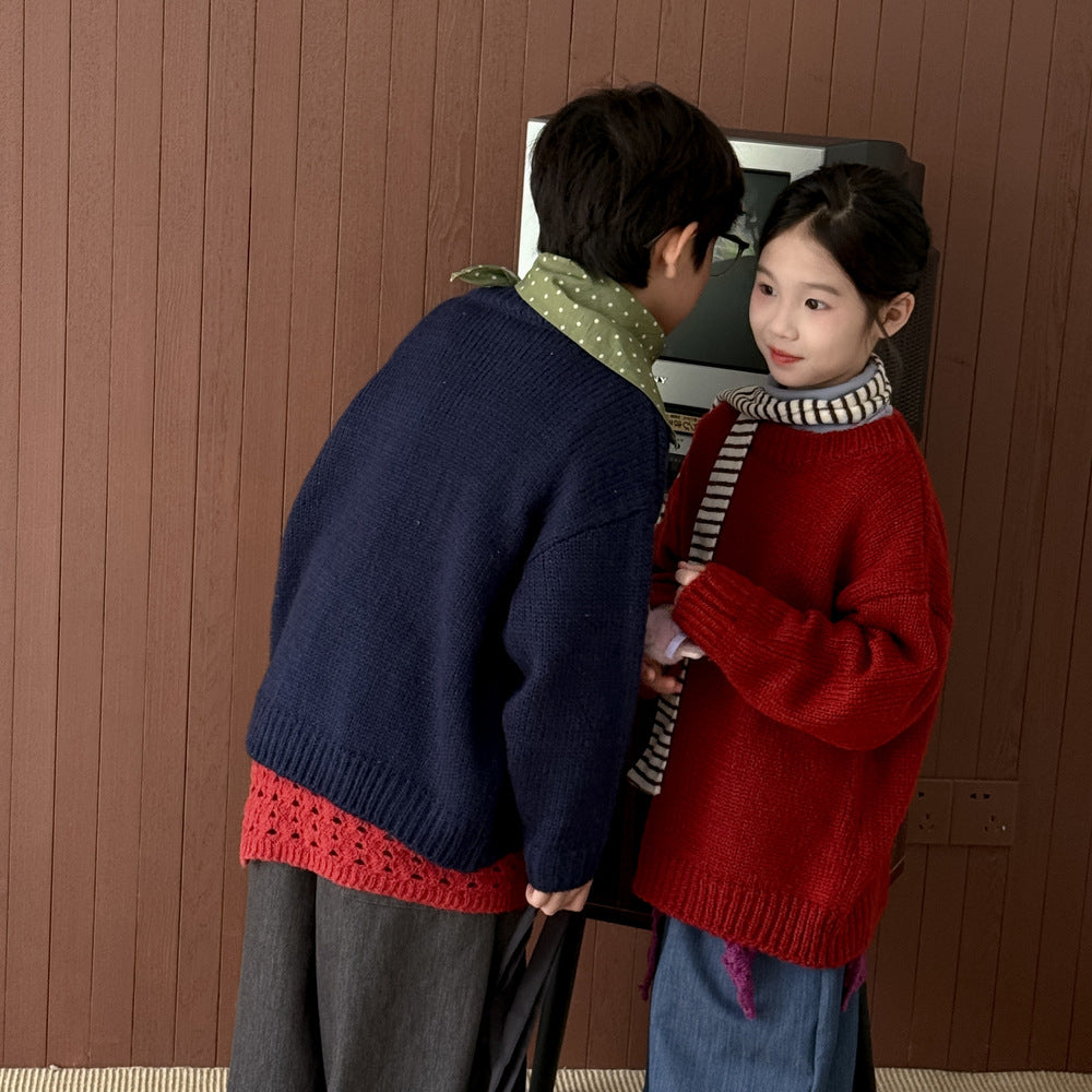 ニットセーター キッズ 裏起毛 厚手 クルーネック 無地 ルーズフィット プルオーバー【mh0011674】