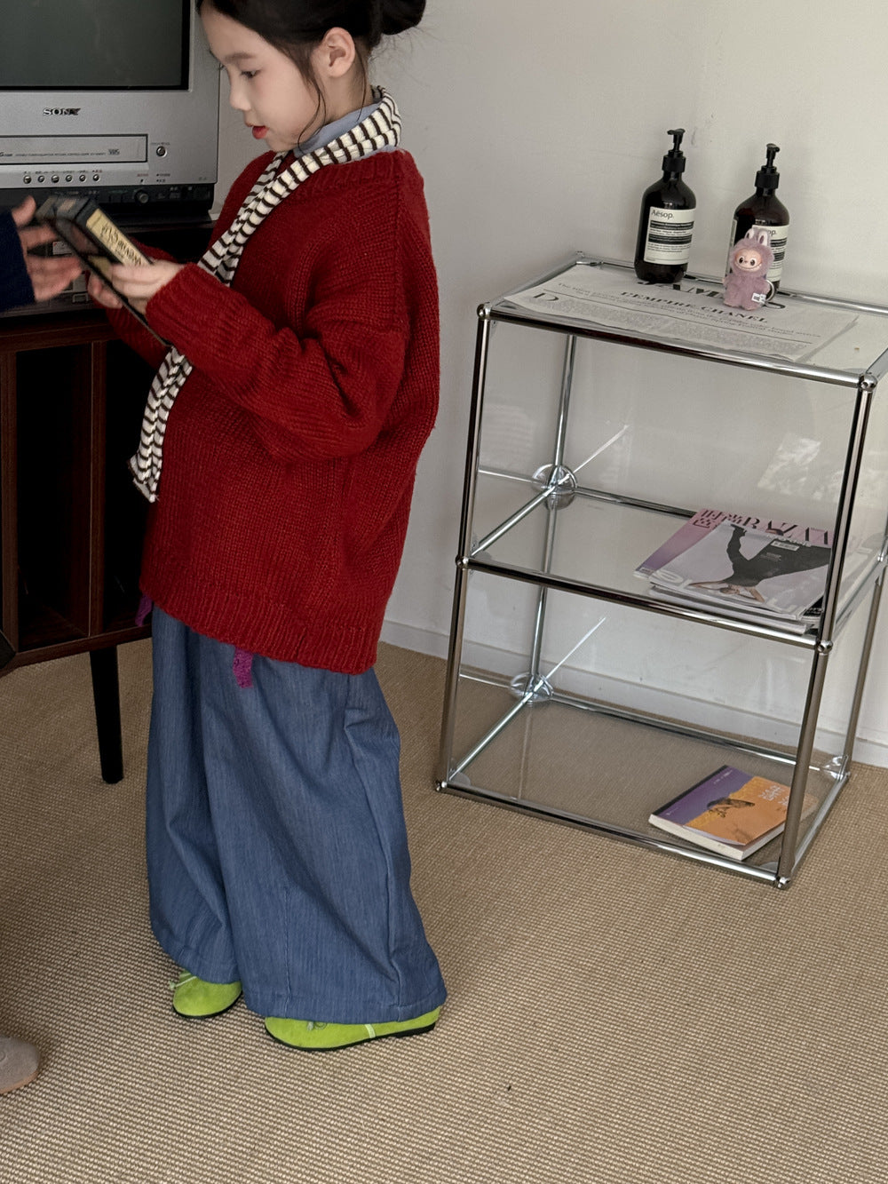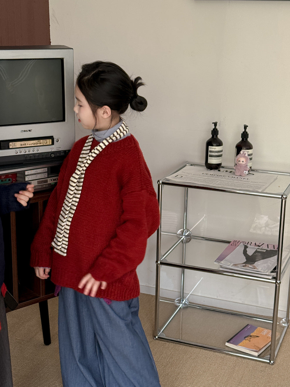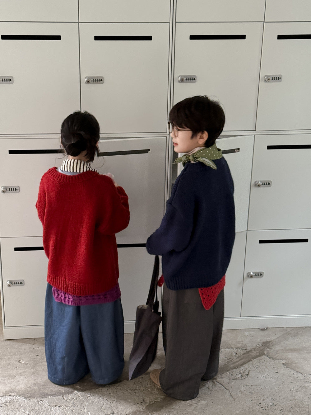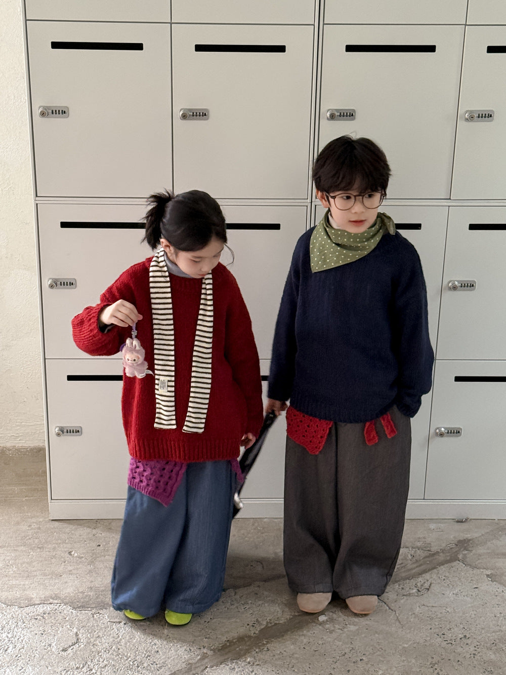 ニットセーター キッズ 裏起毛 厚手 クルーネック 無地 ルーズフィット プルオーバー【mh0011674】
