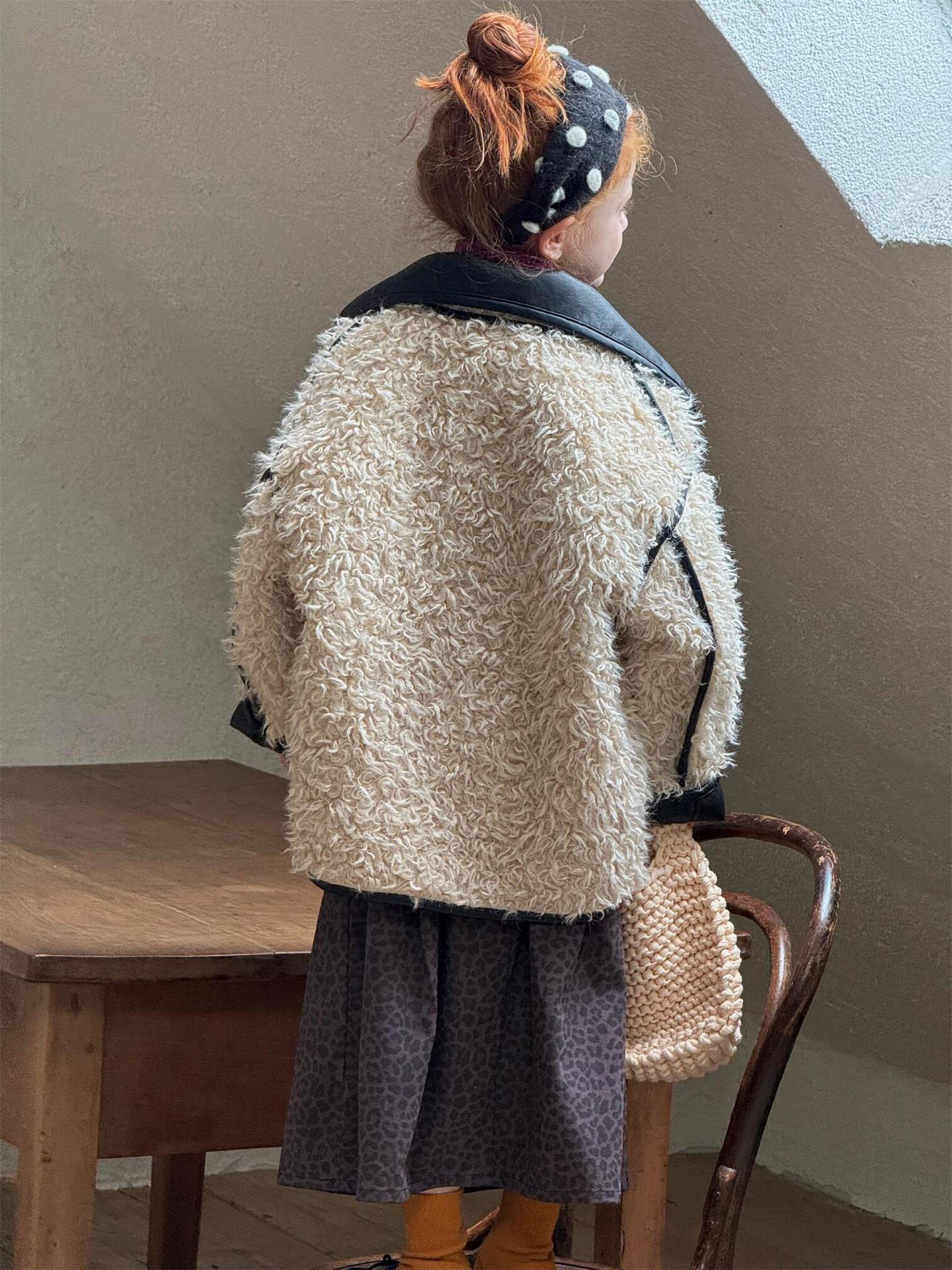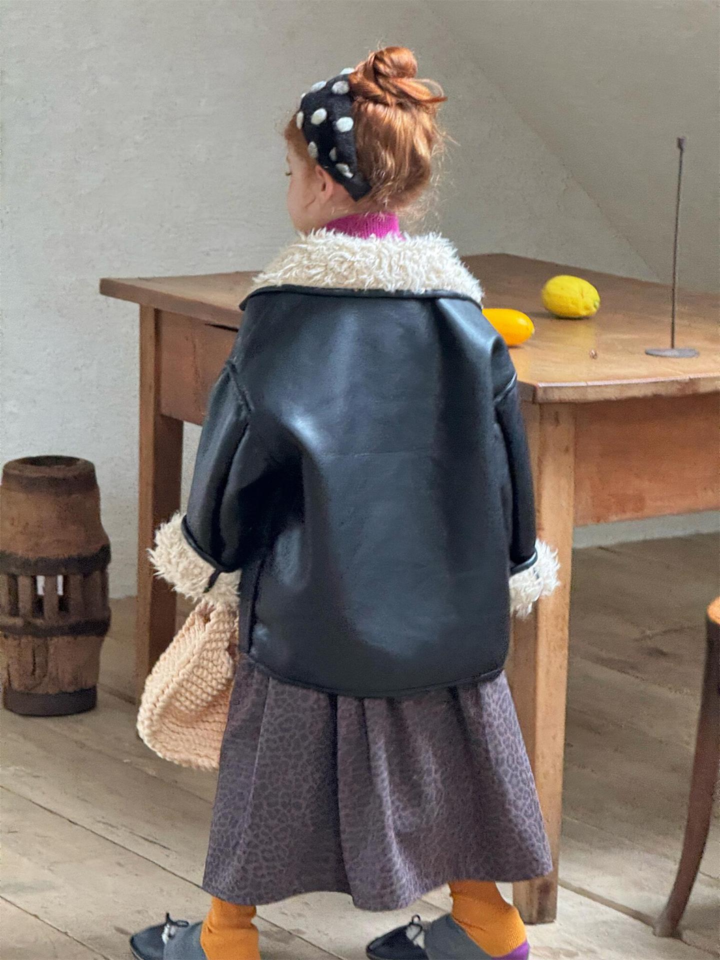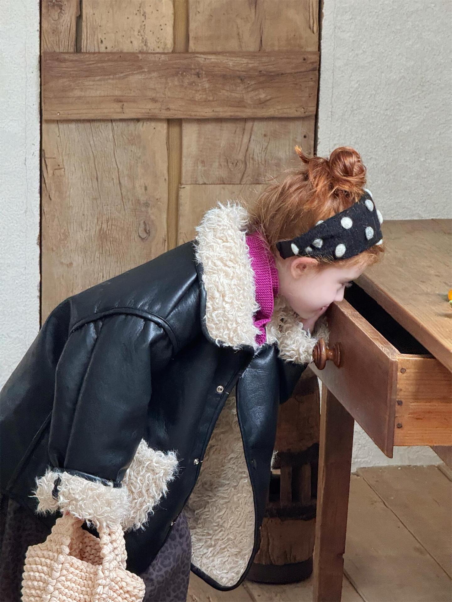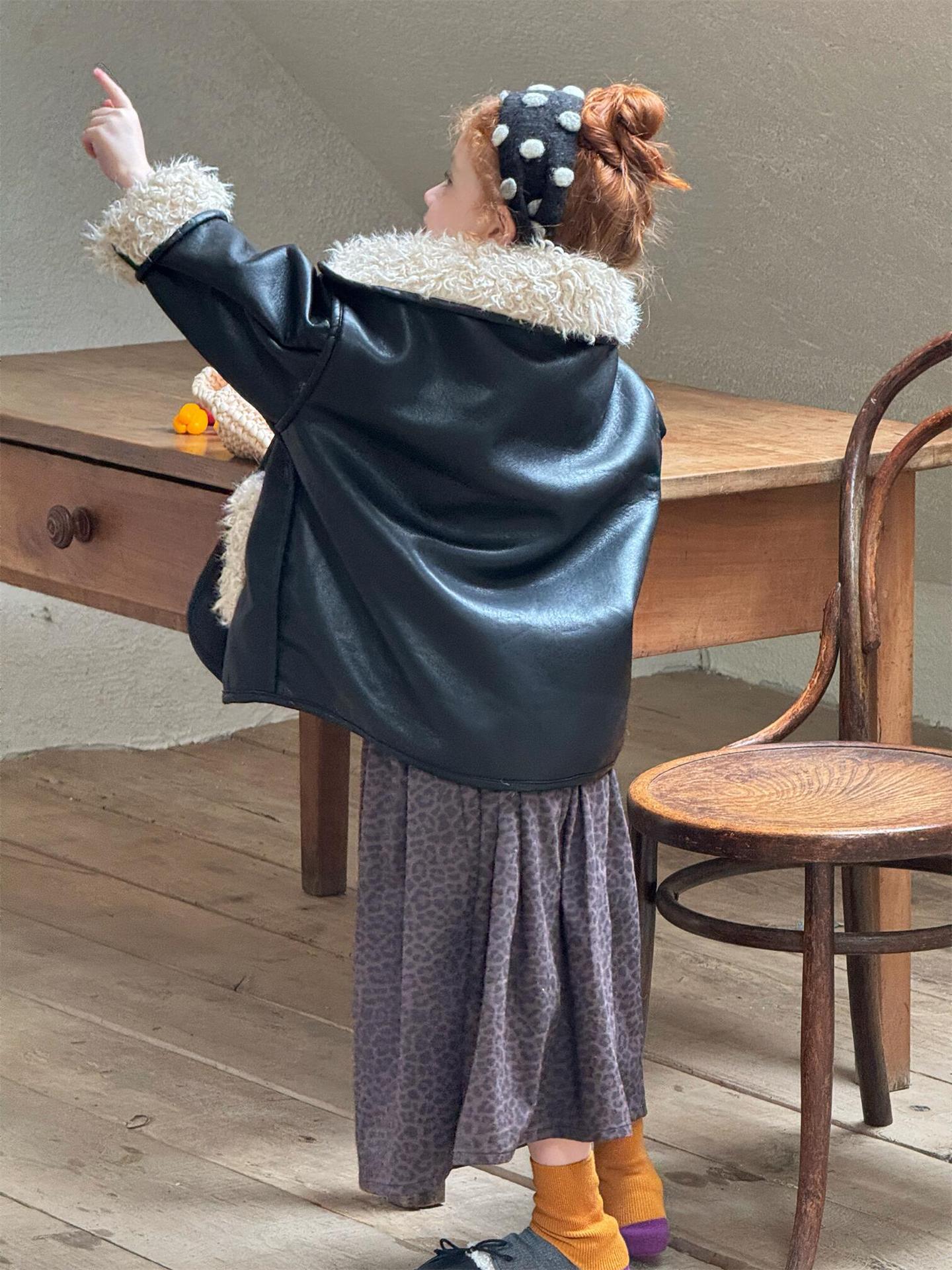 ボアとレザーライクな異素材を切り替えた、スタイリッシュなミドル丈コート。リバーシブルで着用できるため、一つのアウターで二つの雰囲気を楽しめ、デイリーコーデの幅が広がります。毛皮一体型のような温かな裏地を持つこのジャケットは、寒い季節のおしゃれを格上げする一着。女の子のワードローブに上質感をプラスする、デザイン性と機能性を兼ね備えた子ども服のアウターです。
