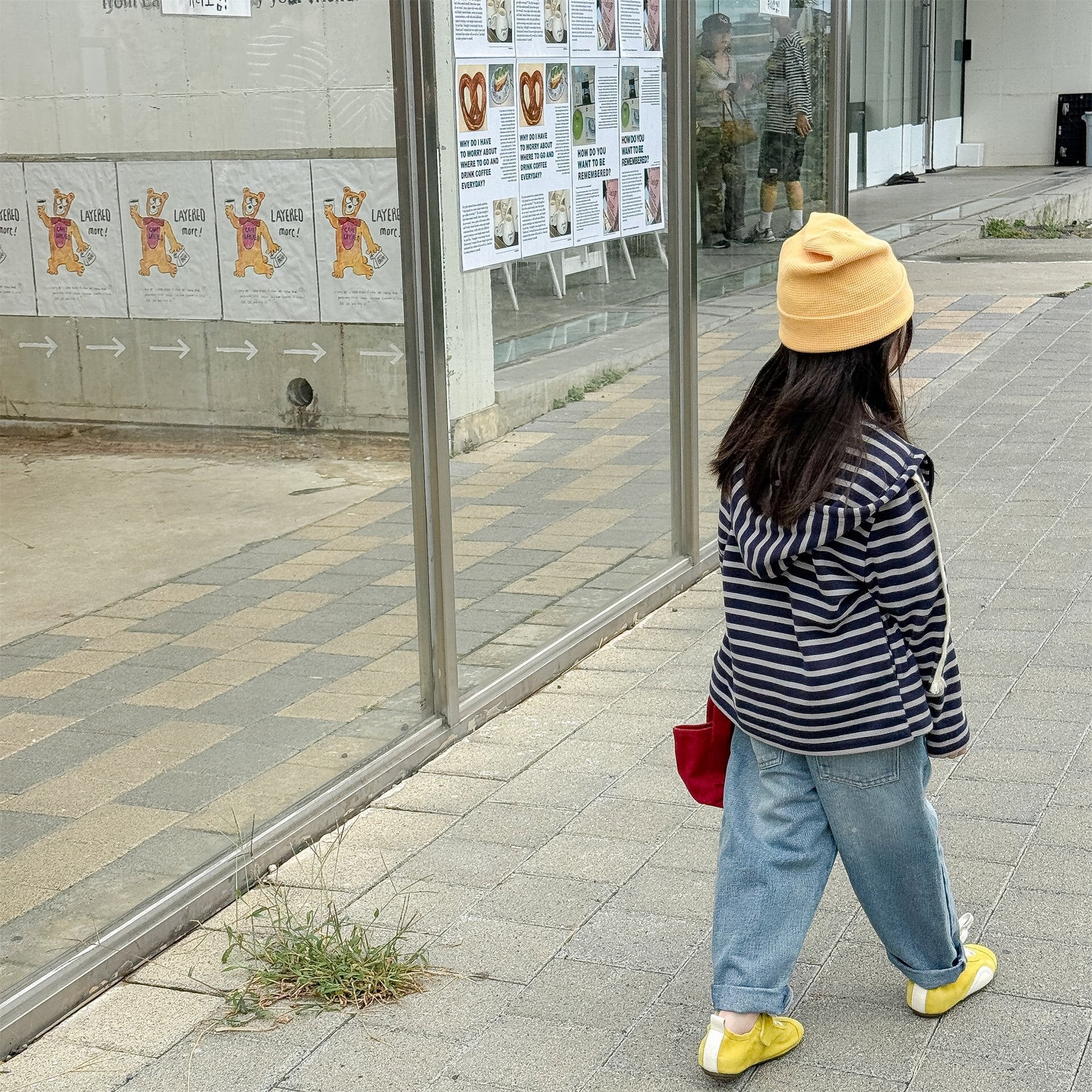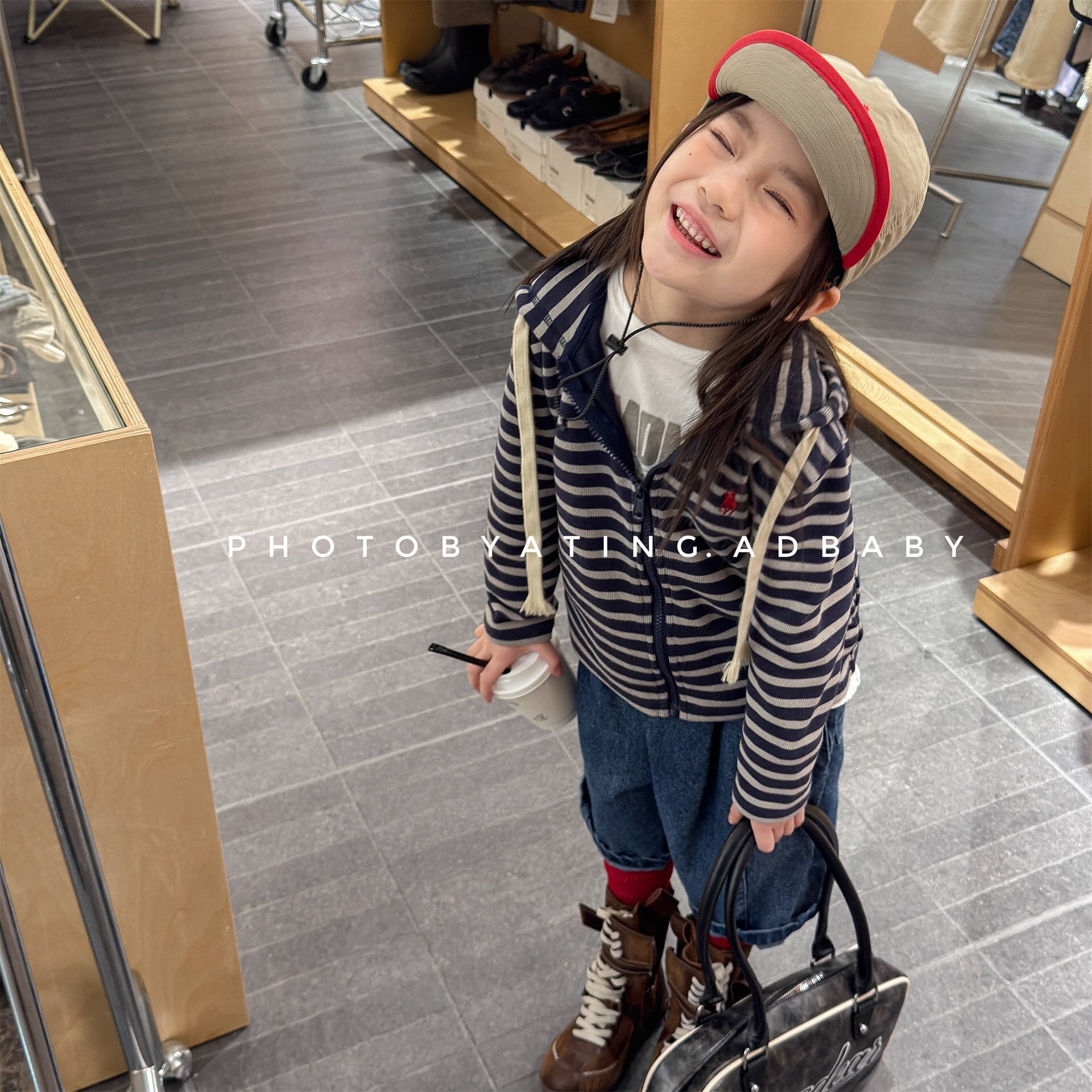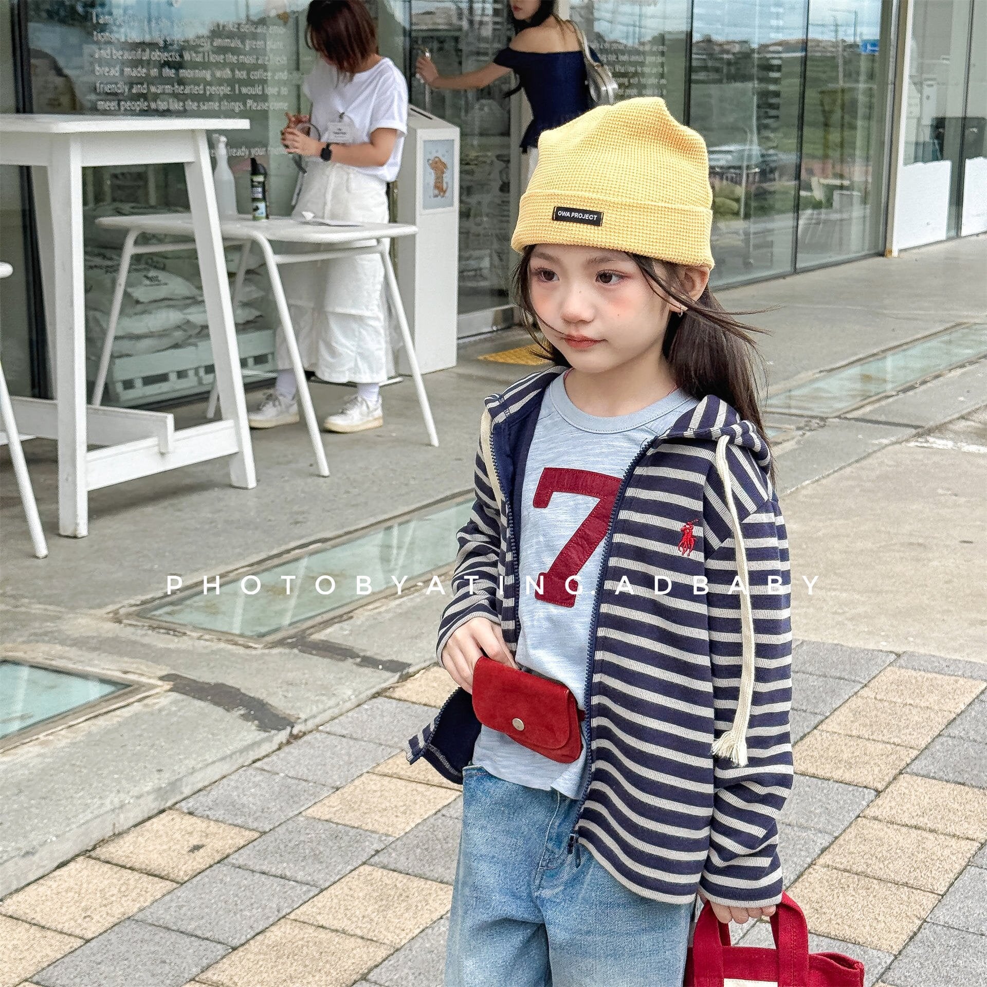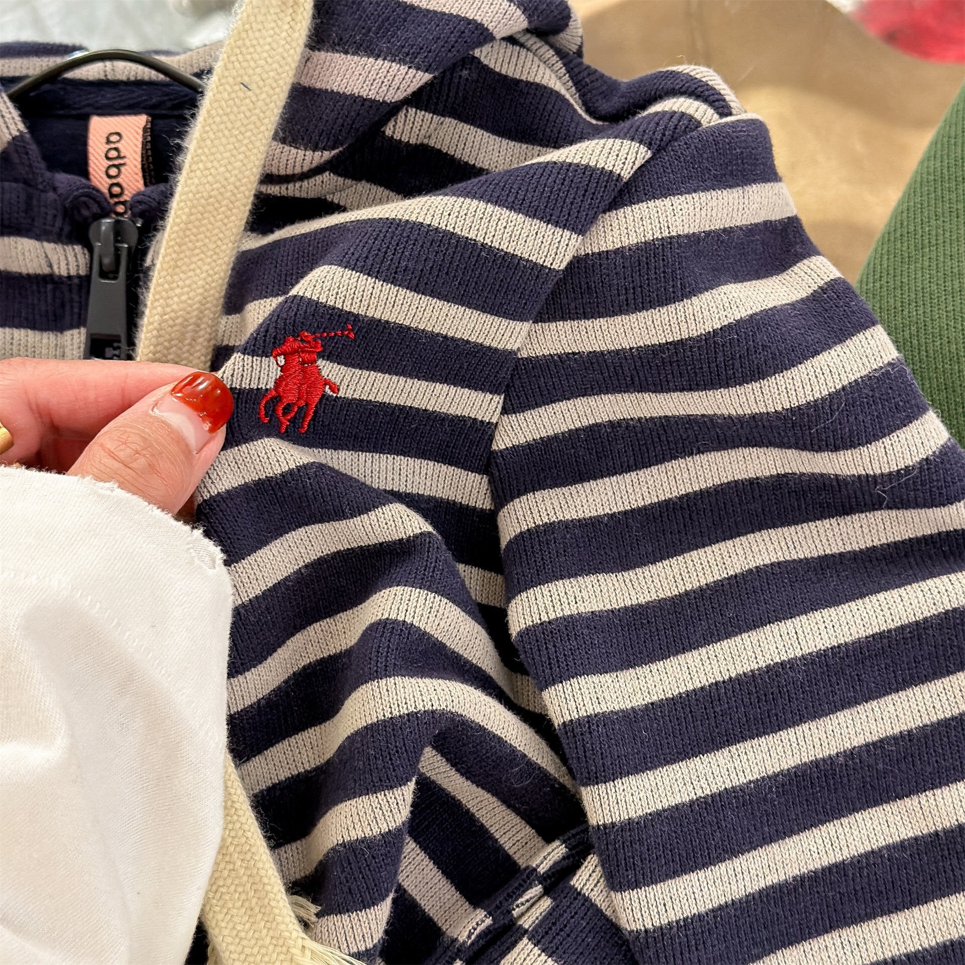 - ■ 洗練されたトラッドデザイン: ネイビーのボーダー柄と鮮やかなグリーンの2タイプをご用意。アイコニックな刺繍がアクセントになり、通園・通学からお出かけまで幅広く活躍します。