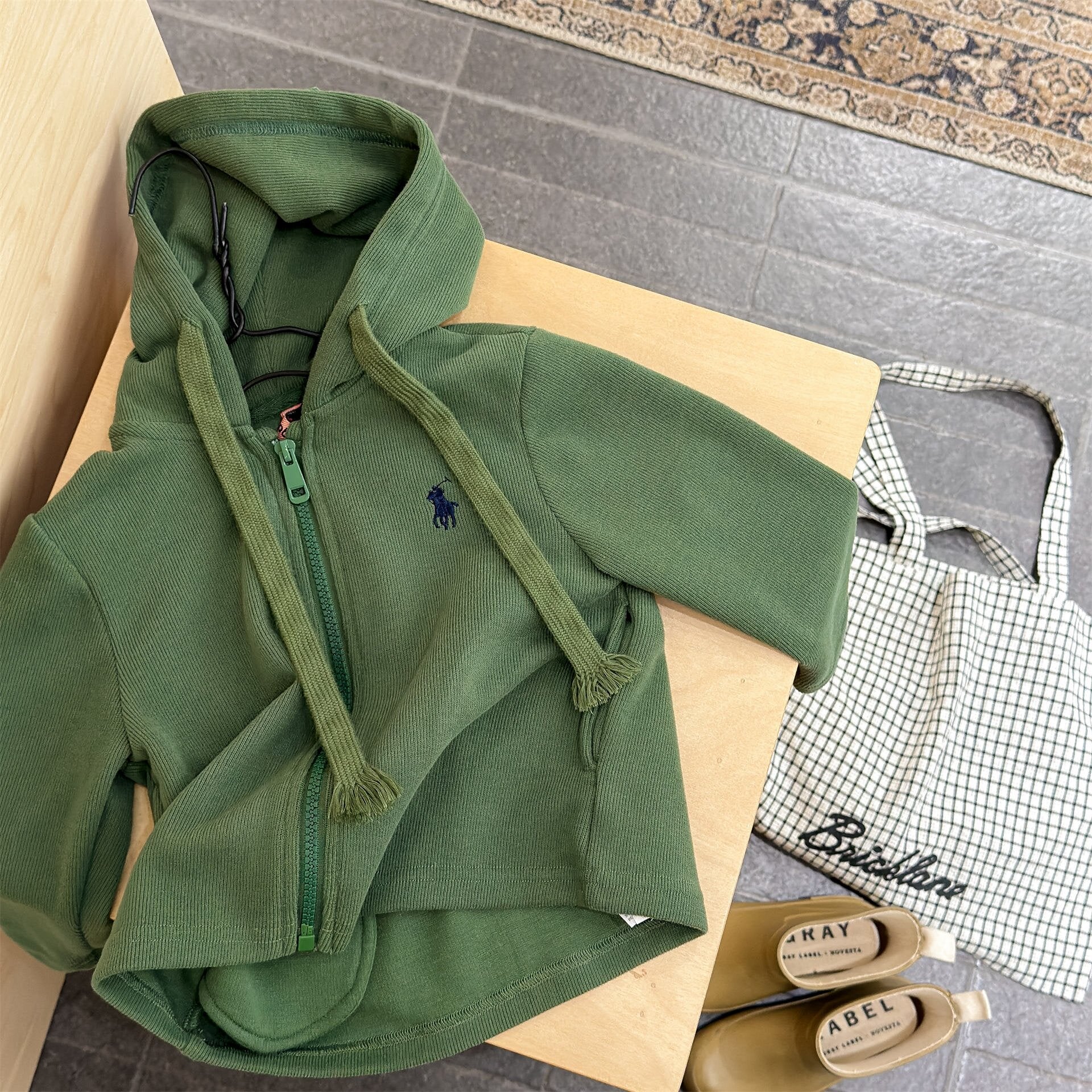 ポニー刺繍が映える、コットン100%のジップアップフーディー