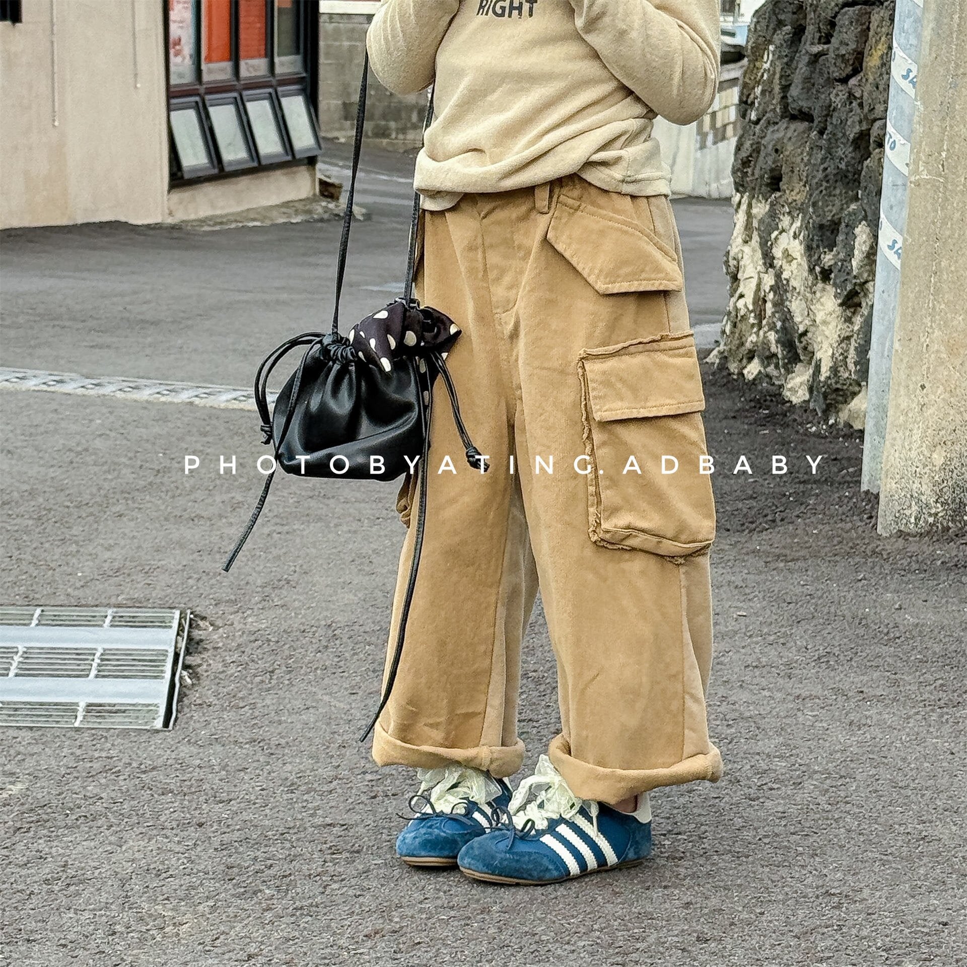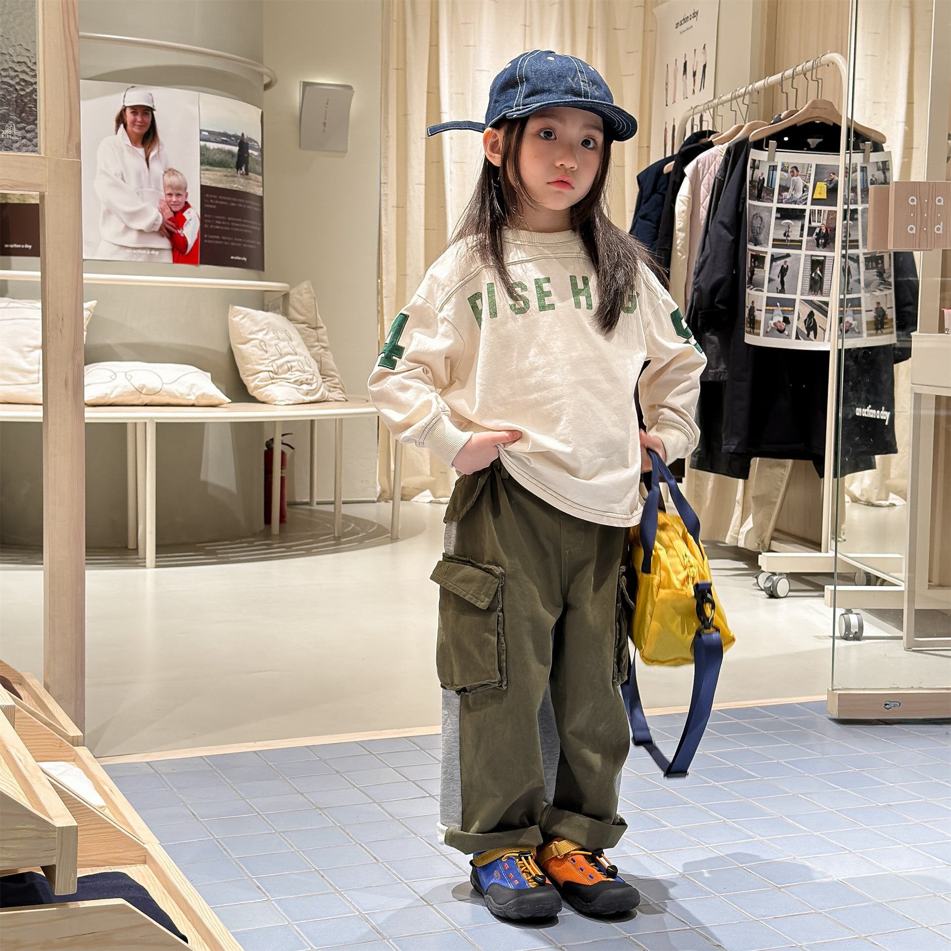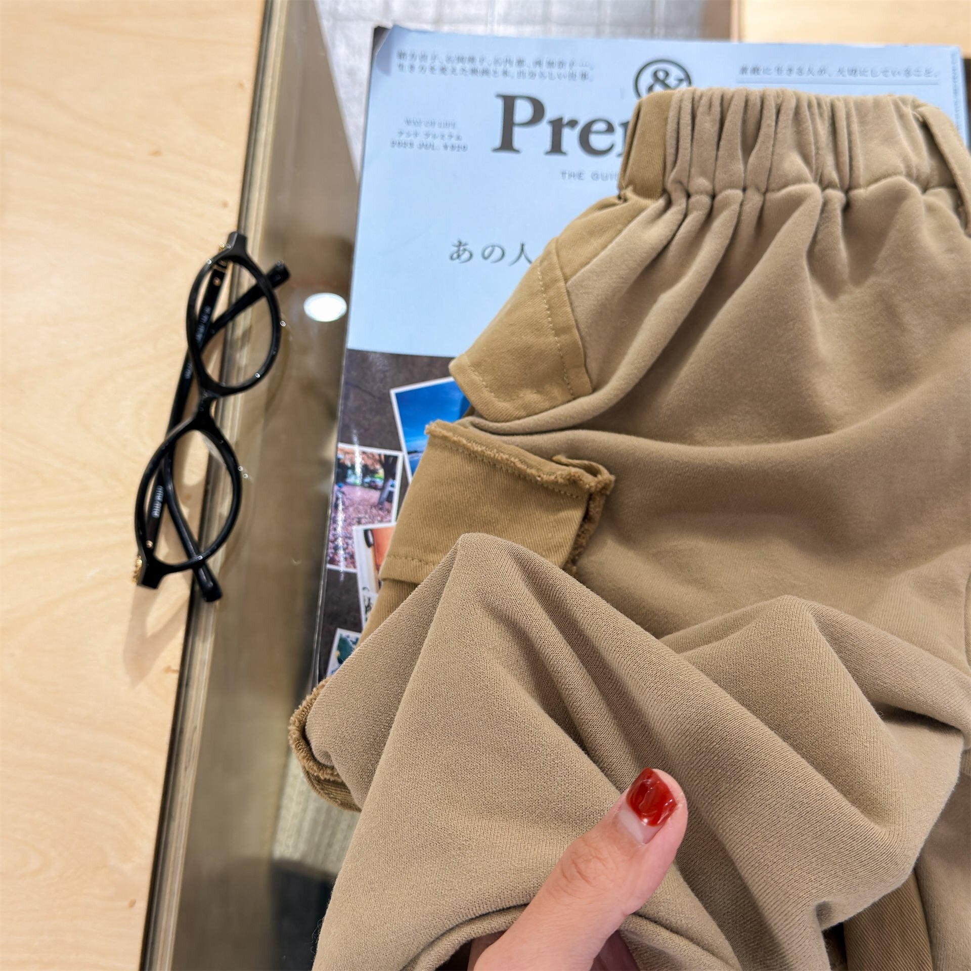 - ■ 機能的なディテール: ウエストは伸縮性の高い総ゴム仕様で、お着替えもスムーズ。 両サイドの大きなフラップポケットは、実用性とファッション性のアクセントになっています。