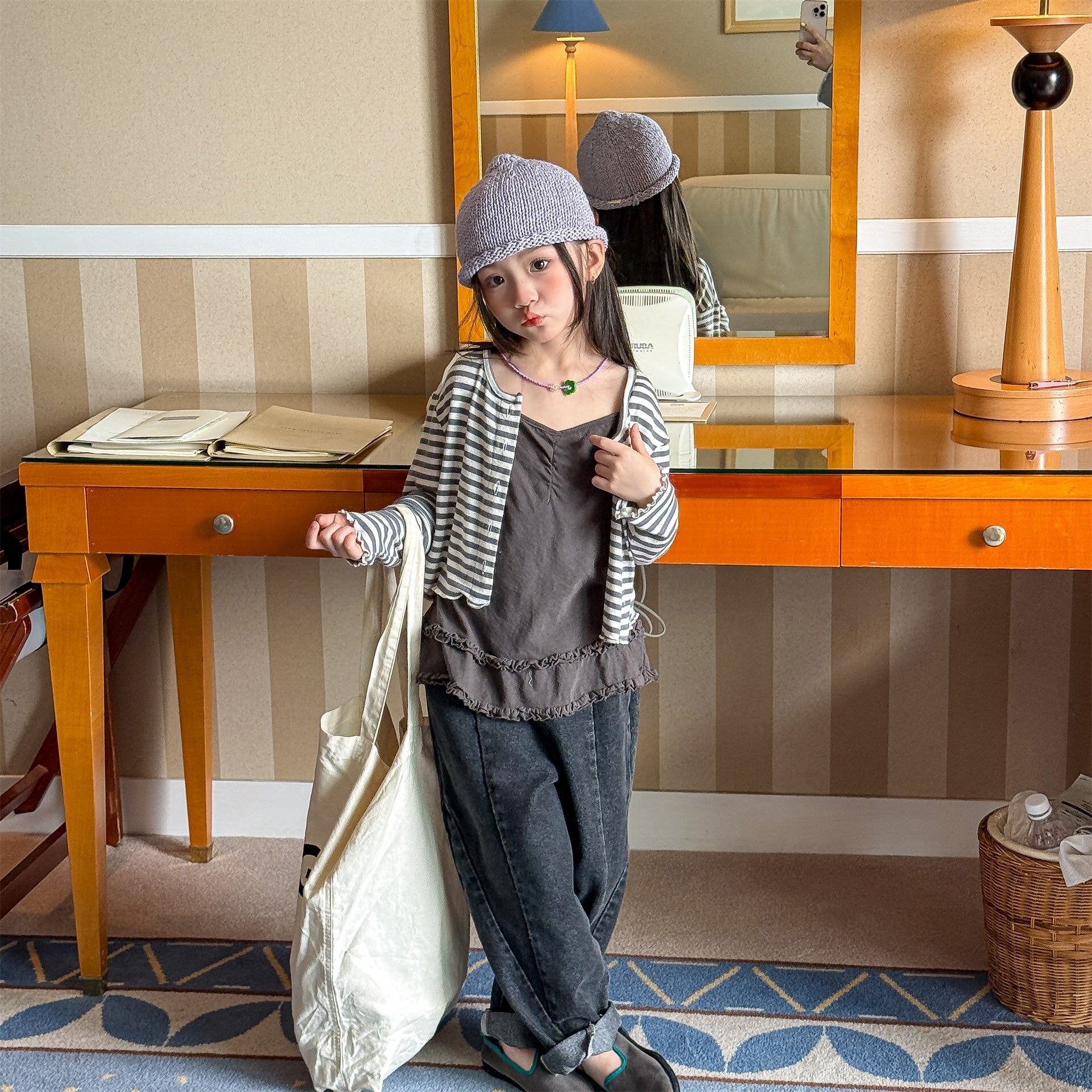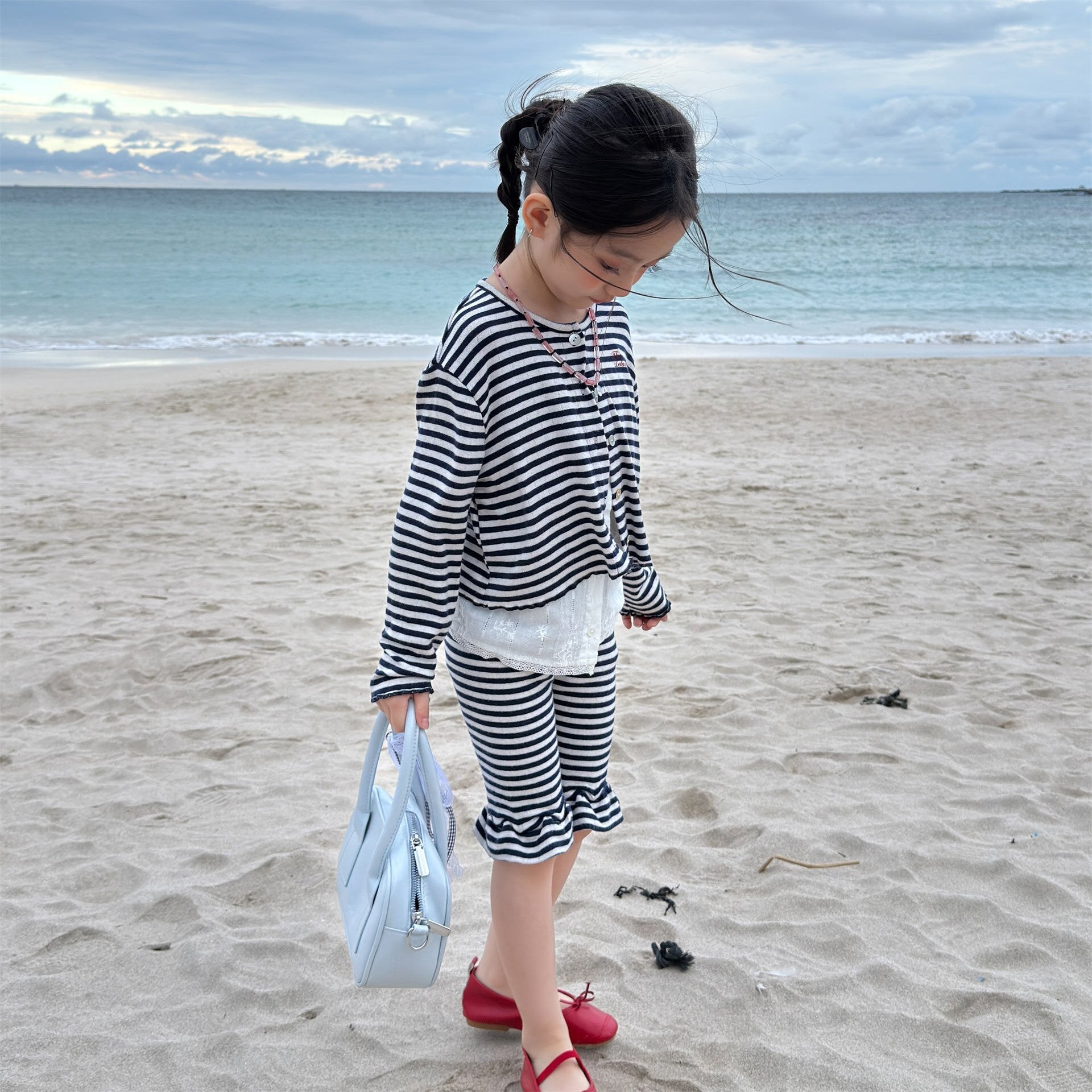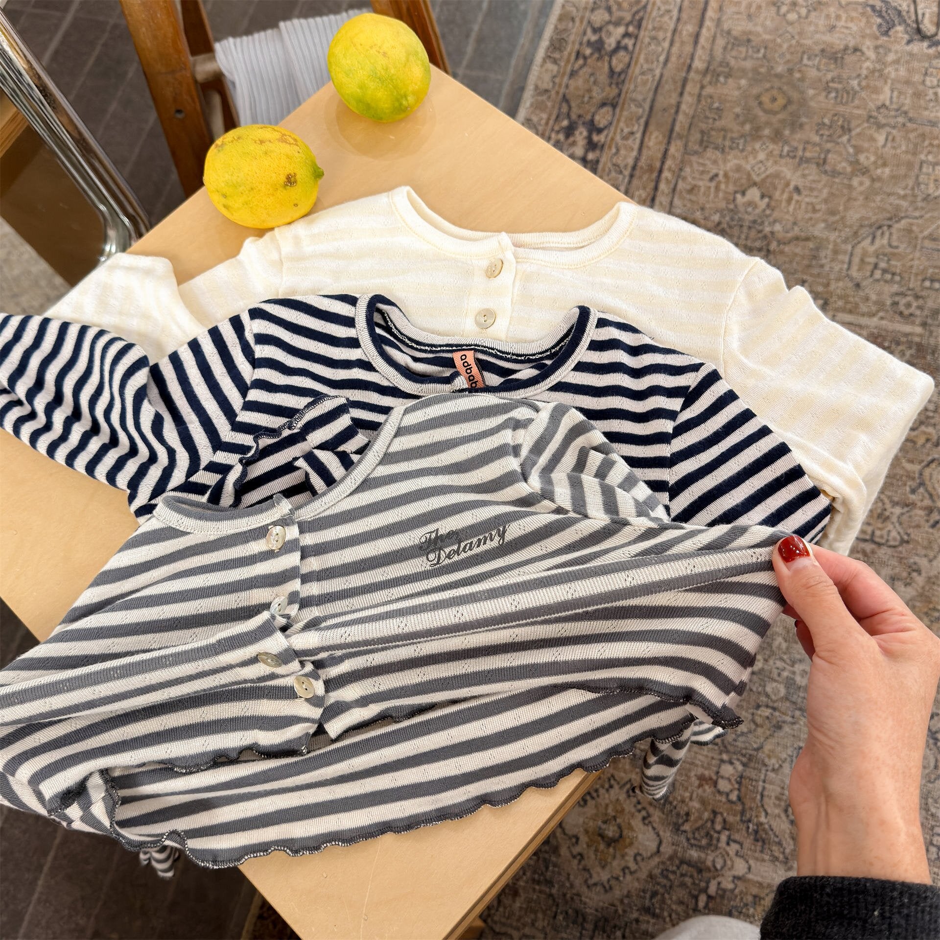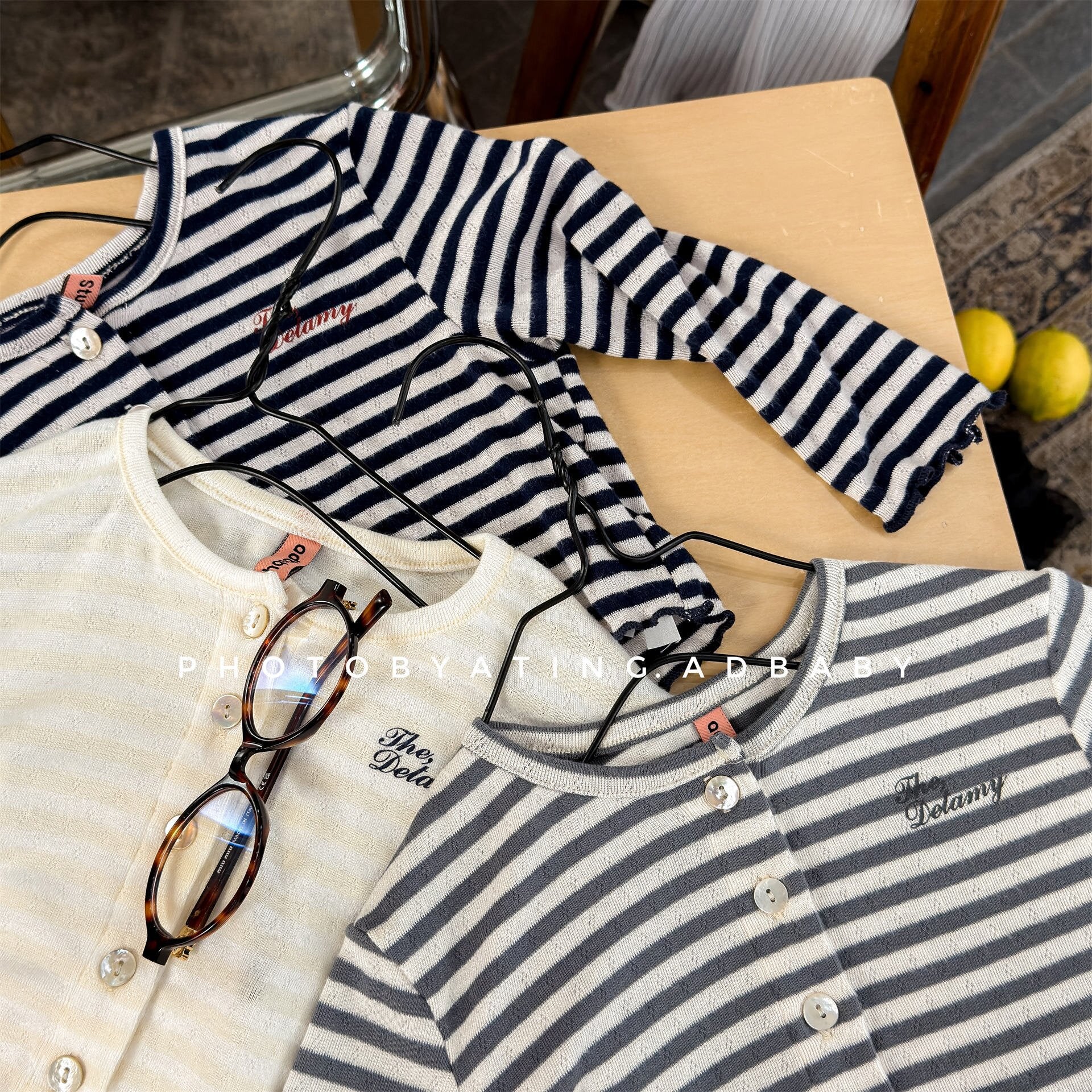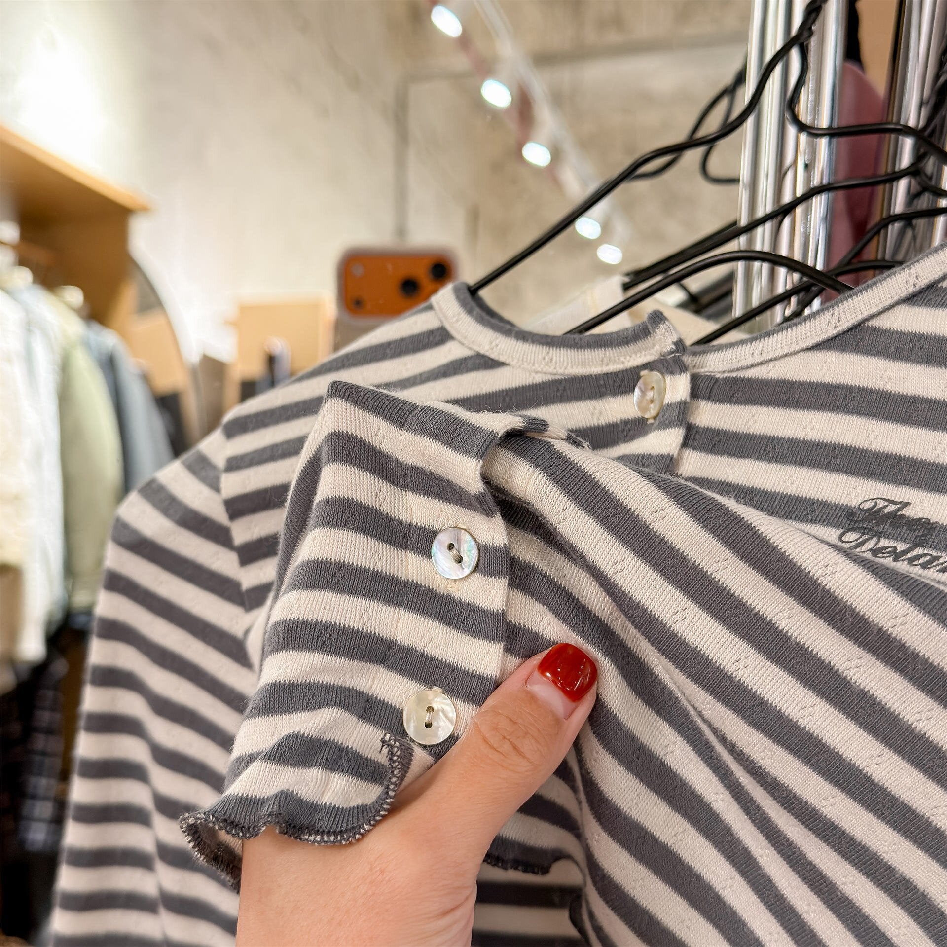 - ■ 上品なマルチボーダー: 落ち着いた色調のピッチ違いのボーダー柄。 シンプルなコーディネートに重ねるだけで、都会的な「韓国スタイル」が完成します。