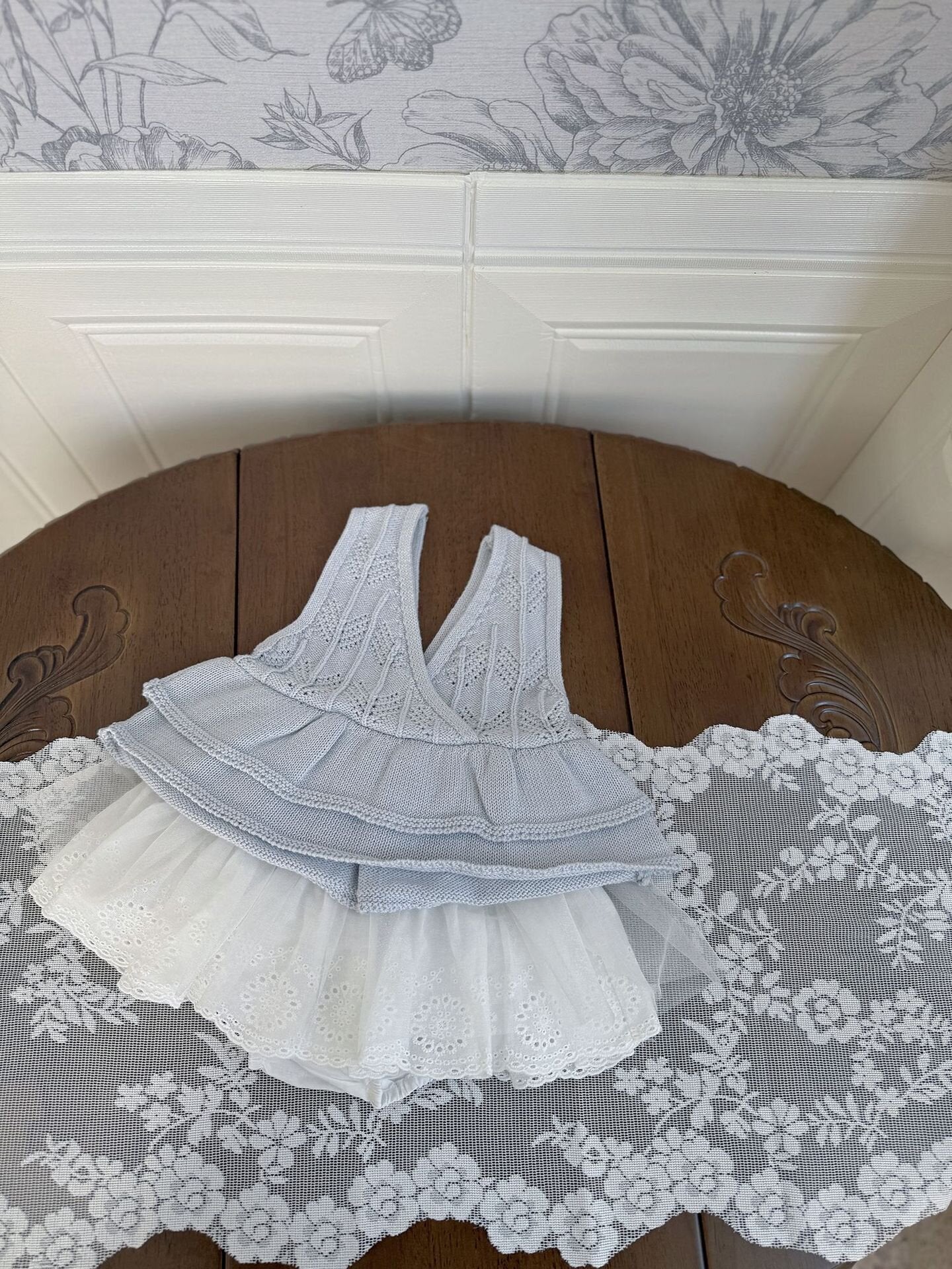 - ・デザイン: 繊細な透かし編みパターン、華やかな2段ティアードフリル