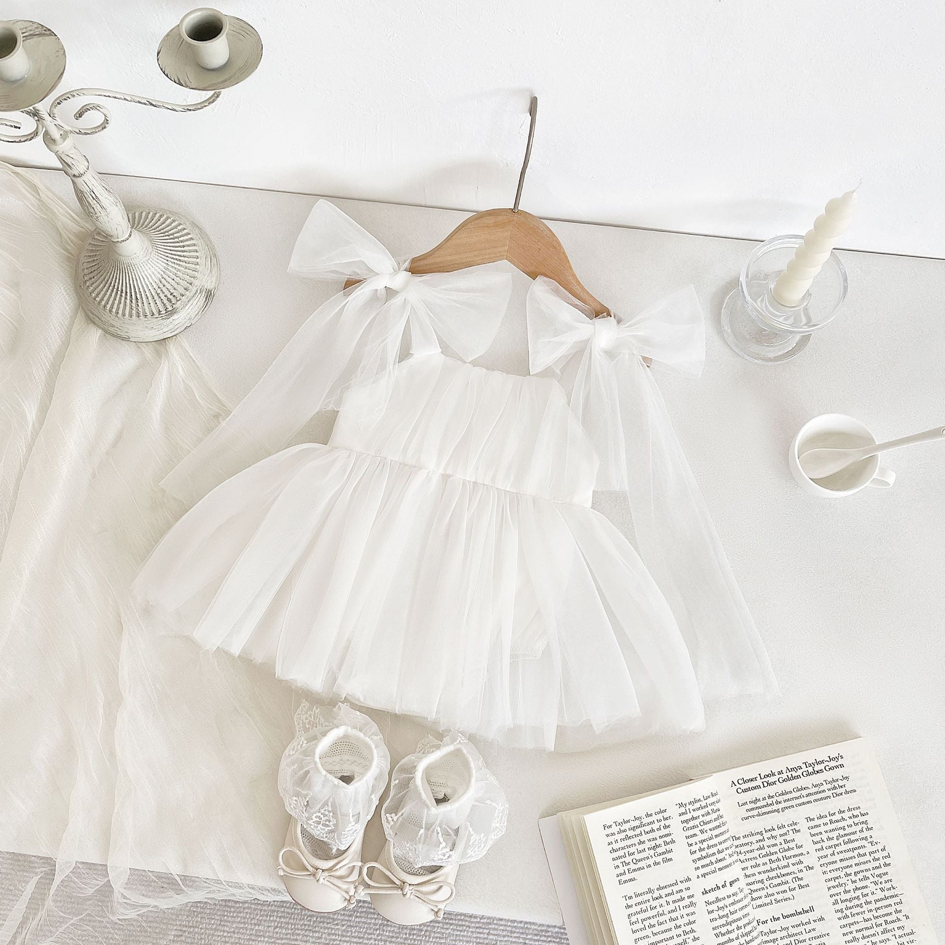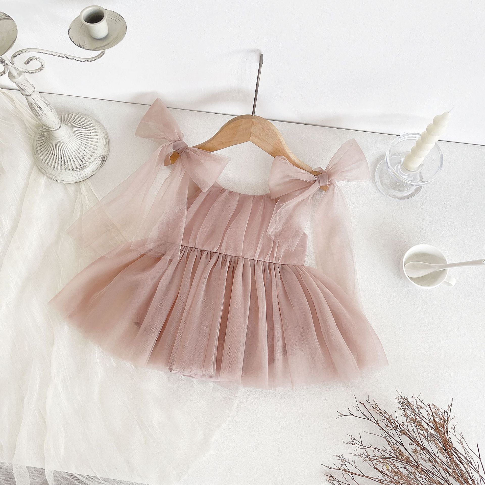 ベビーロンパース チュチュチュール リボン スカートボディスーツ ドレスロンパース パーティ お出かけ【mh0004466】