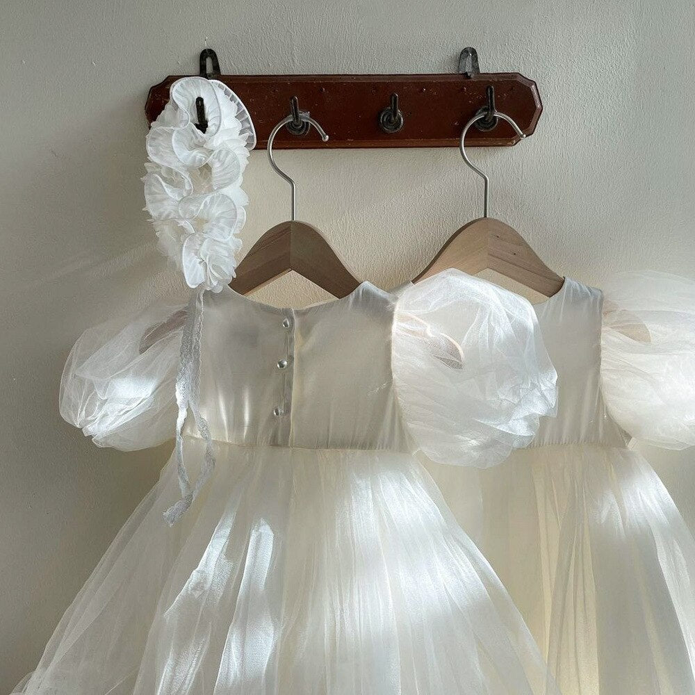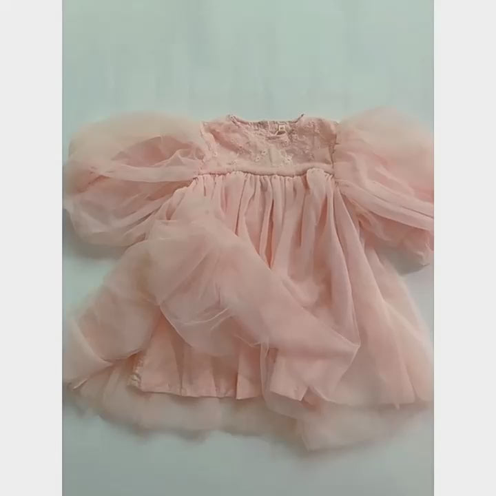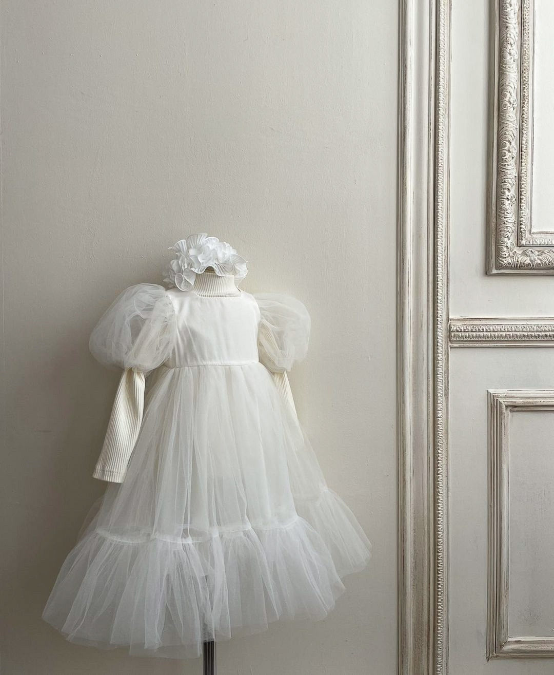 キッズ チュチュ チュール 長袖 パフスリーブ ドレス ワンピース【mh0001274】