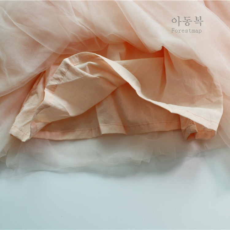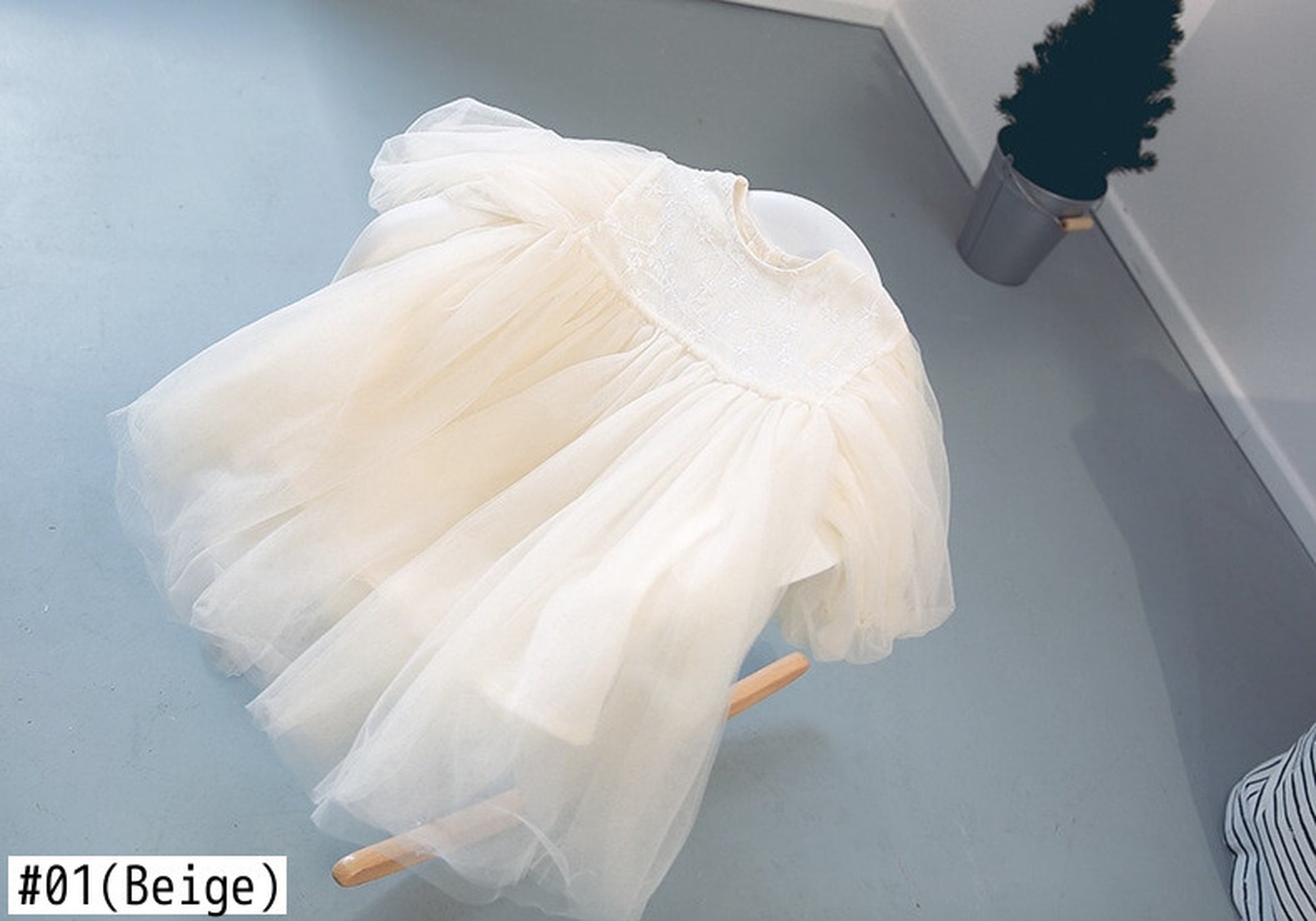 キッズ メッシュ チュール チュチュ 長袖 プリンセス ドレス ワンピース【mh0000948】