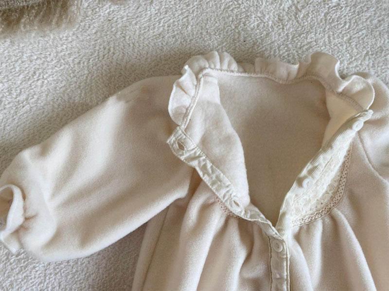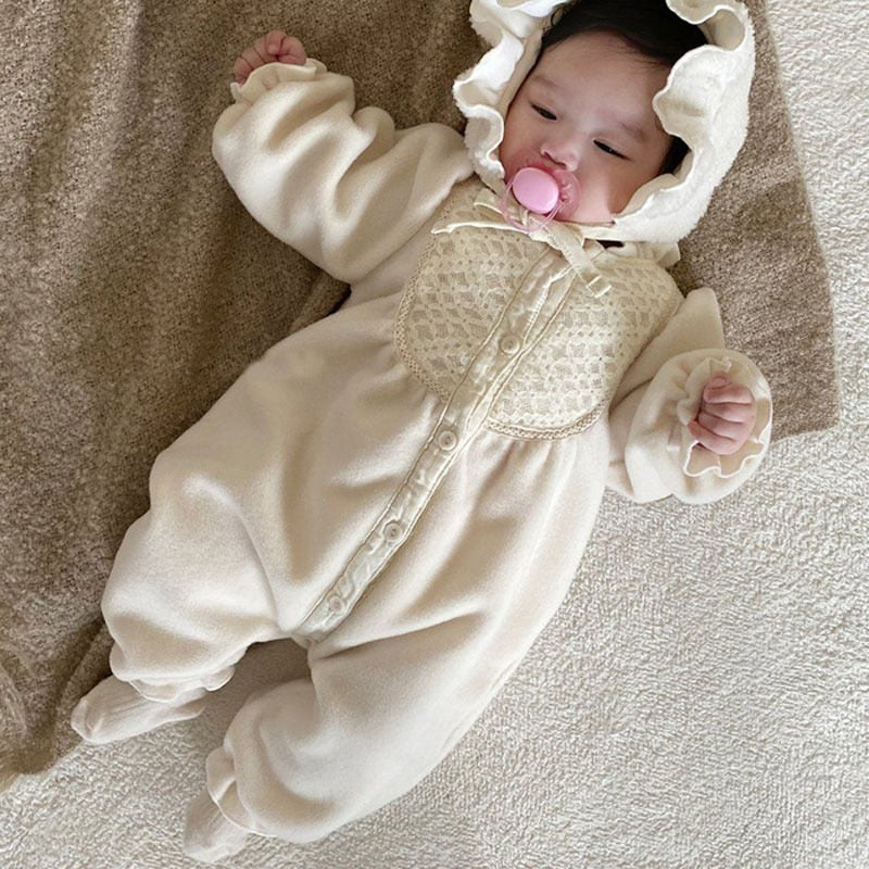 ベビーロンパース レースフリル長袖ドレスロンパース セレモニードレス アプリコット【mh0007146】