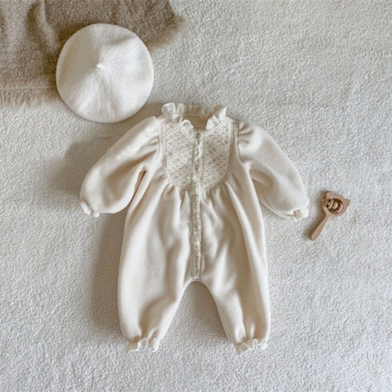 ベビーロンパース/キッズワンピース レース刺繍襟長袖ボディスーツ/ワンピース リンクコーデ 姉妹 お揃いコーデ【mh0007188】