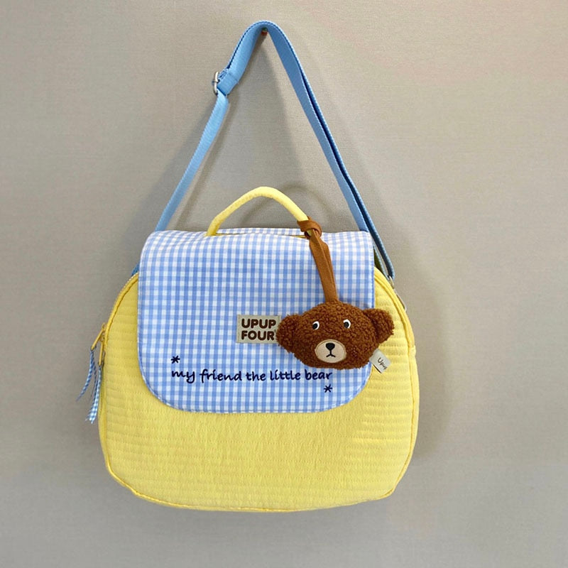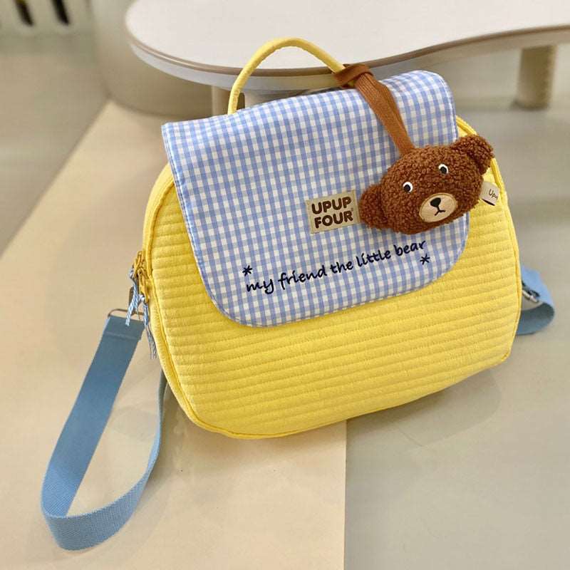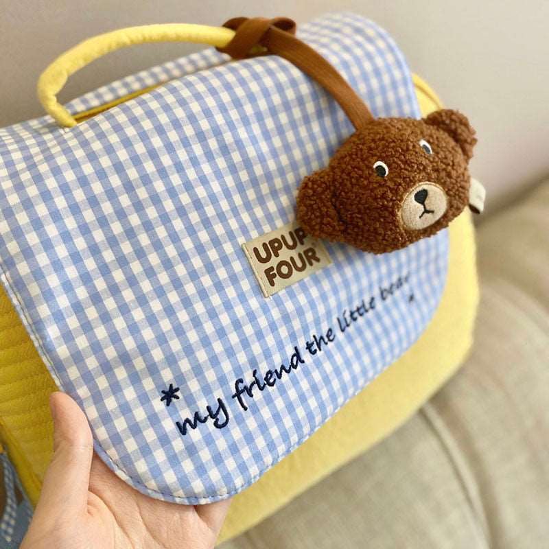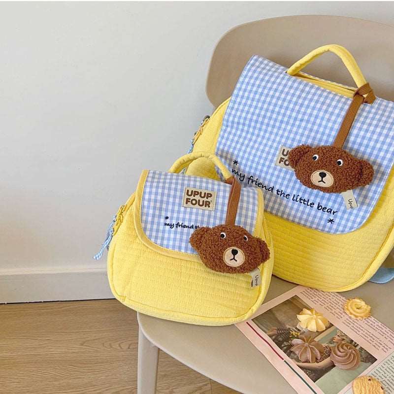 くま チェック キッズ リュックサック バックパック メッセンジャーバッグ ママバッグ 鞄【mh0001145】