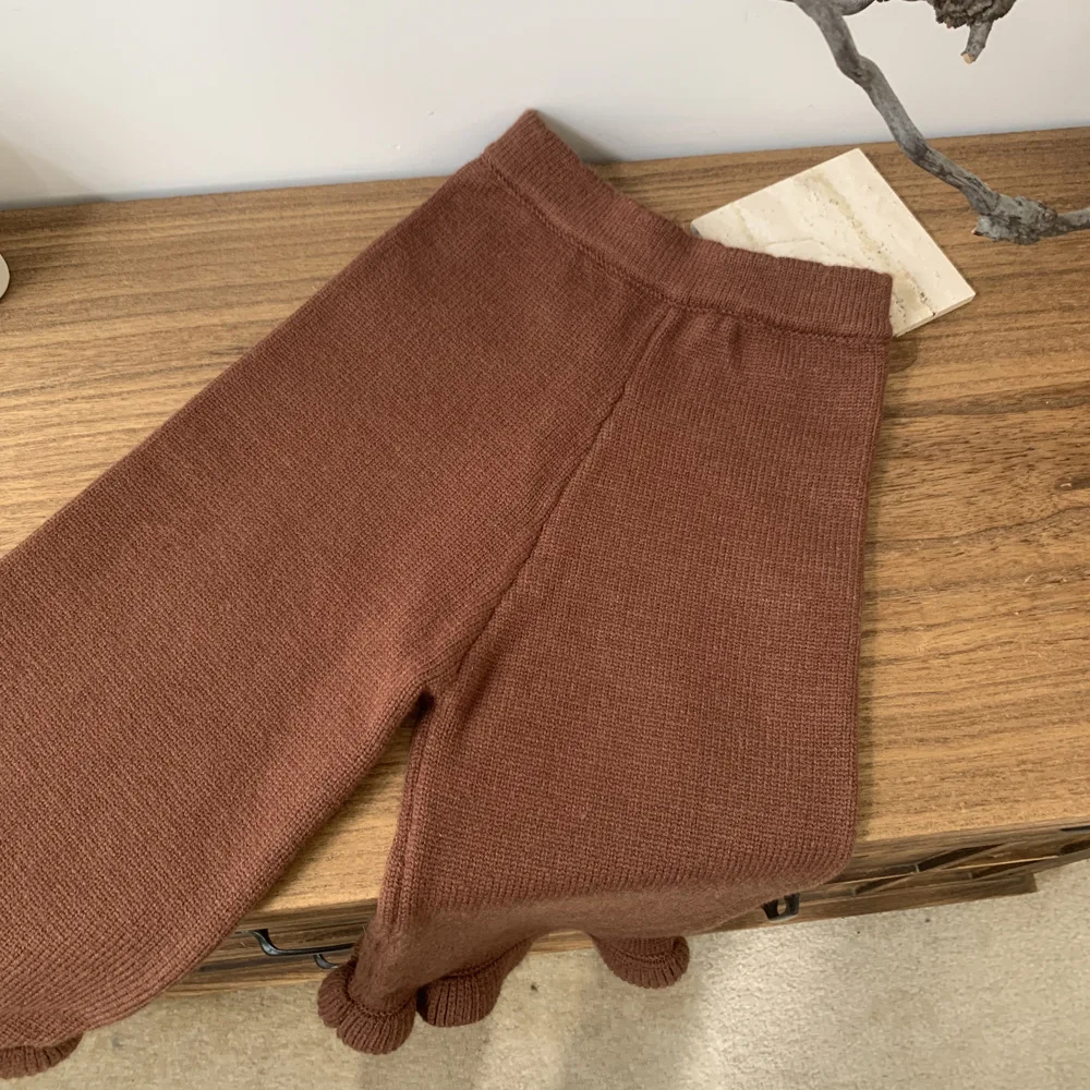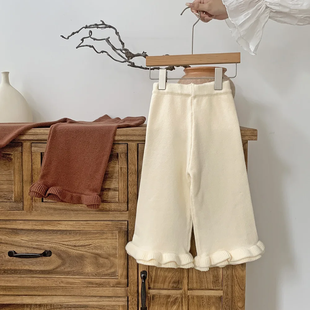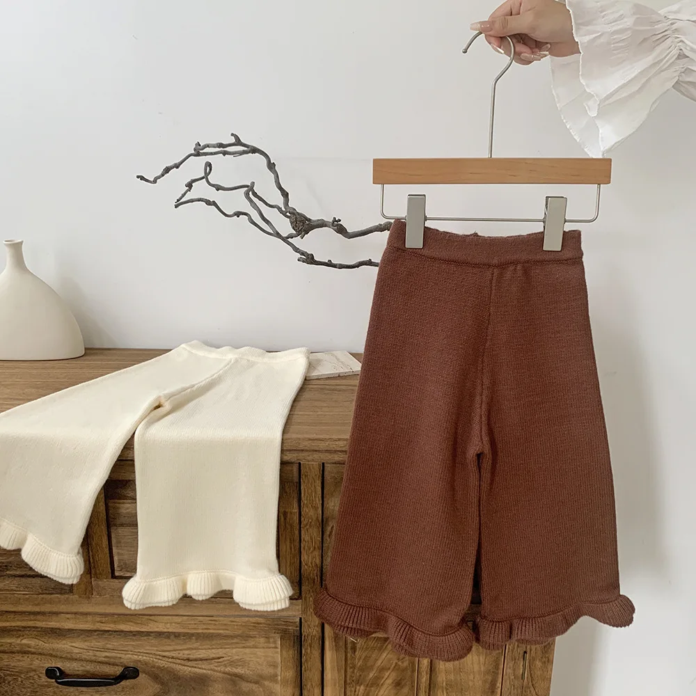 キッズ ニットパンツ フリルワイドパンツ ルーズパンツ コーヒー ベージュ 2カラー ガールズ 女の子 子供服