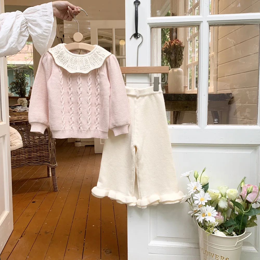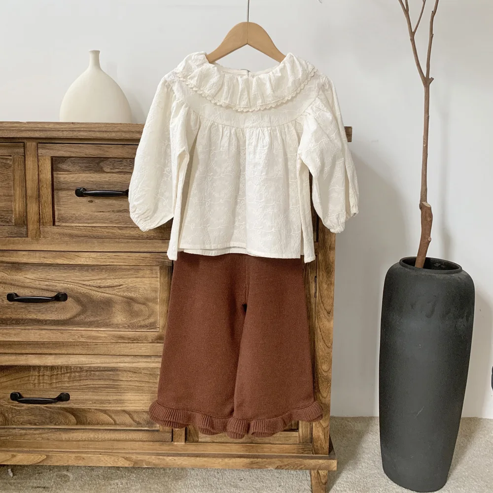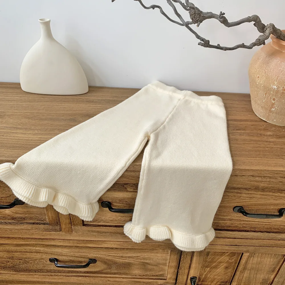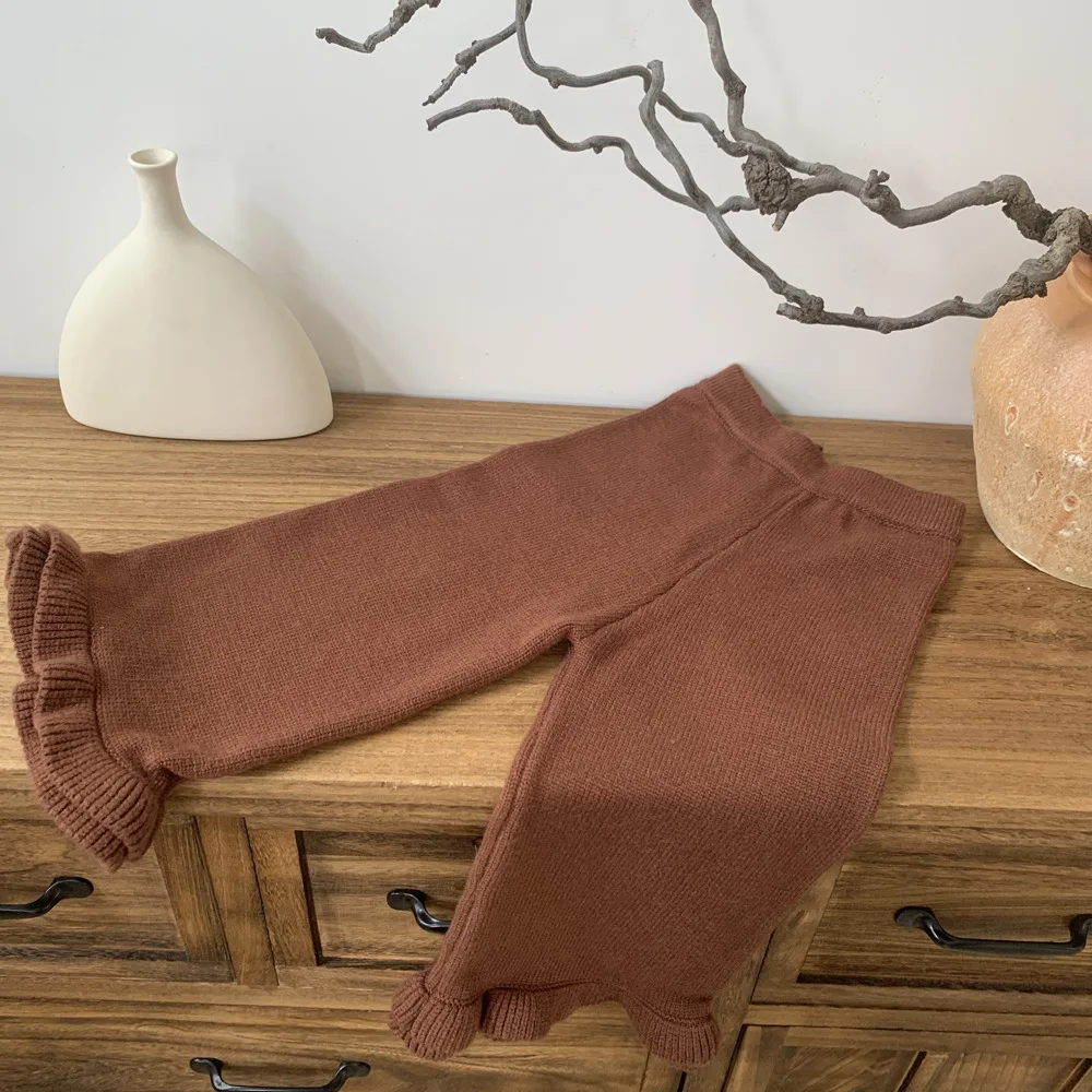キッズ ニットパンツ フリルワイドパンツ ルーズパンツ コーヒー ベージュ 2カラー ガールズ 女の子 子供服