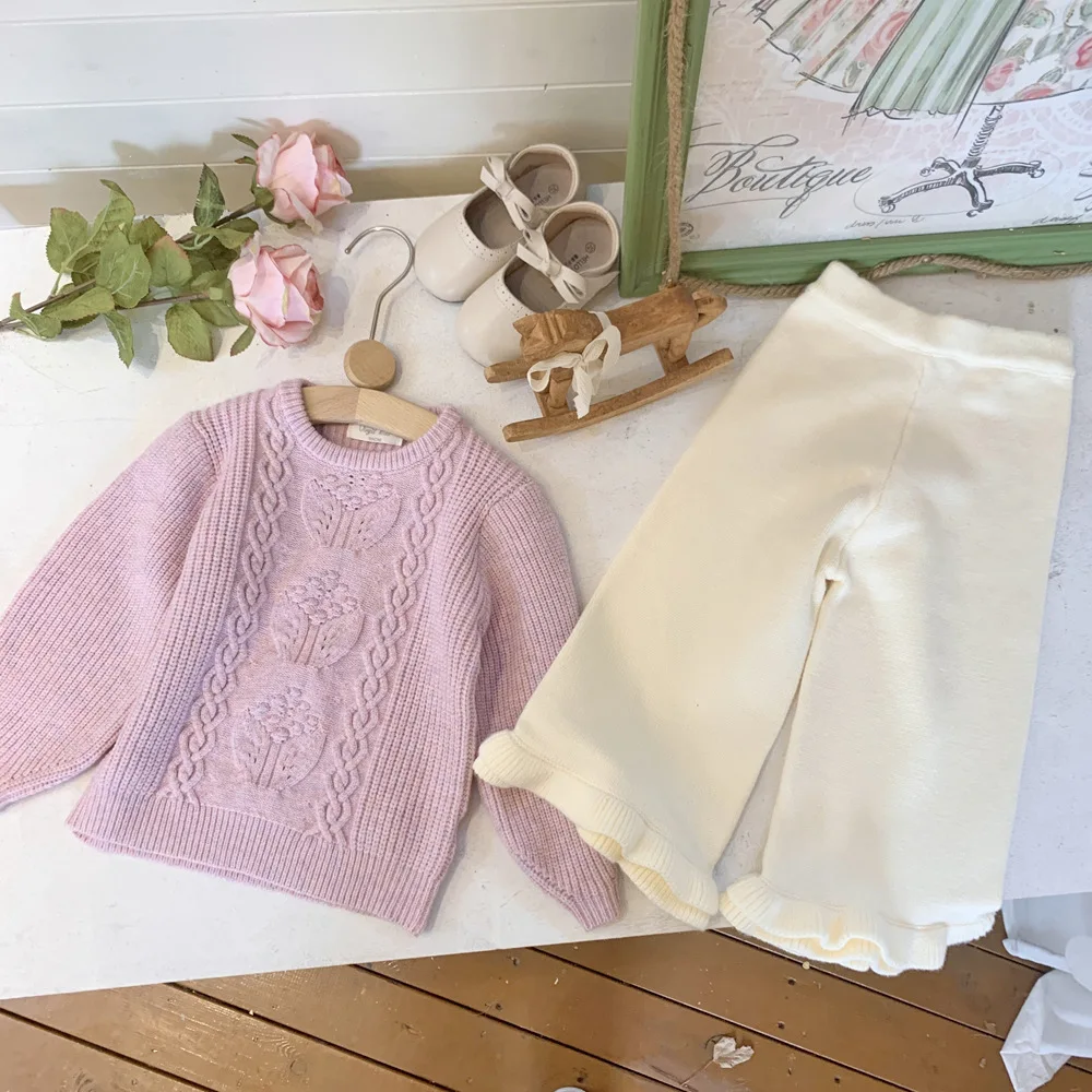 これらのニットパンツは、ルーズでフリルワイドなデザインが特徴で、お子様のおしゃれ度をアップさせてくれます。動きやすく、季節感のあるカラーで、秋のファッションにぴったりです。