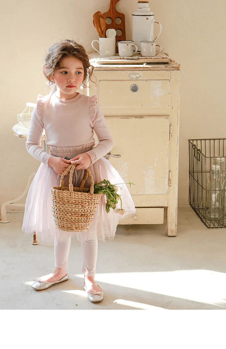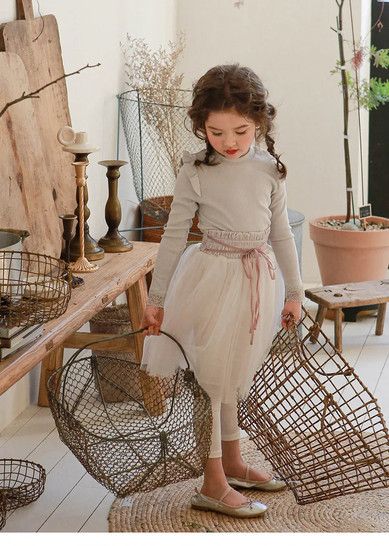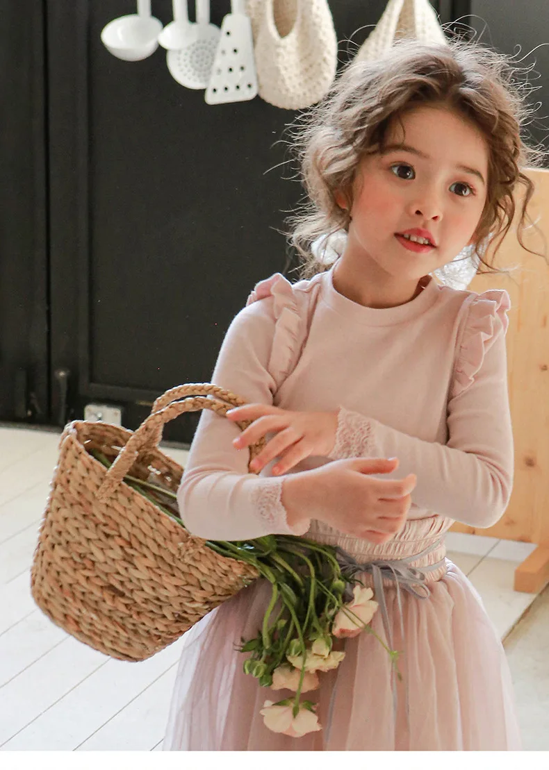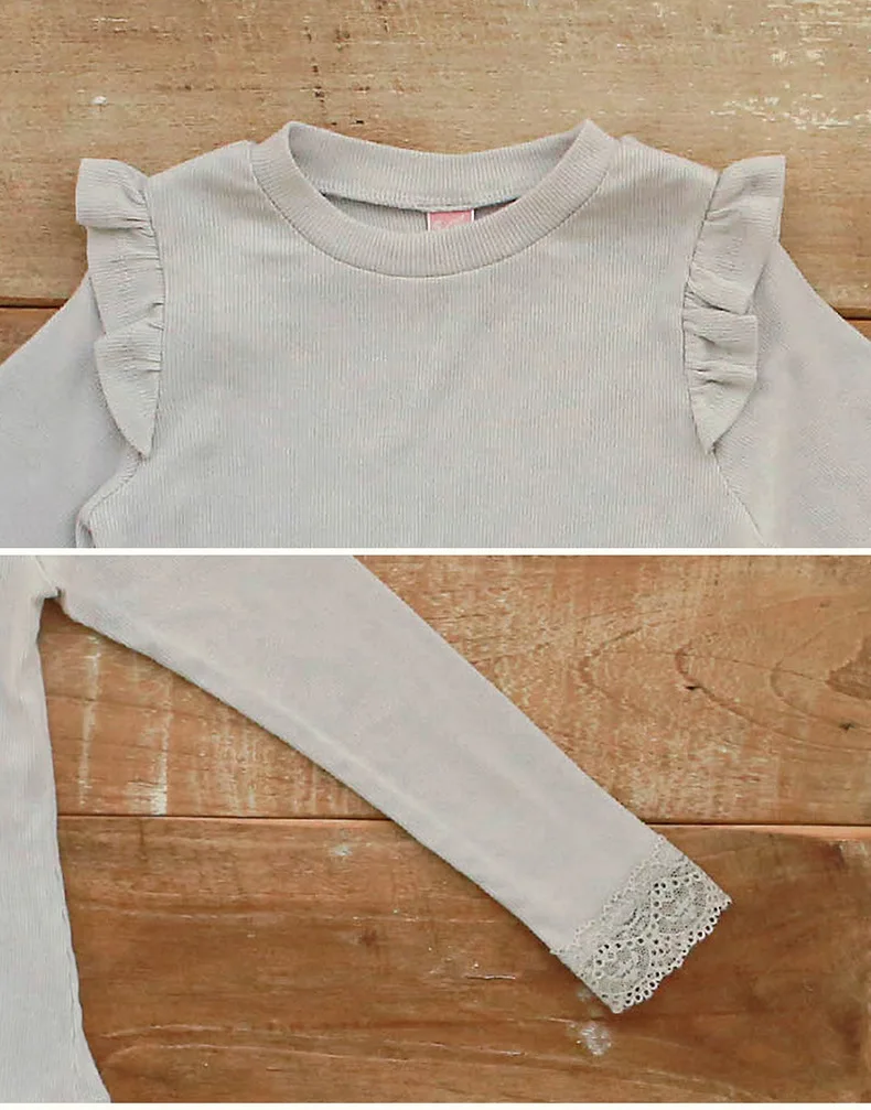 キッズ ショルダー ラッフルフリル 長袖 Tシャツ トップス【mh0001526】