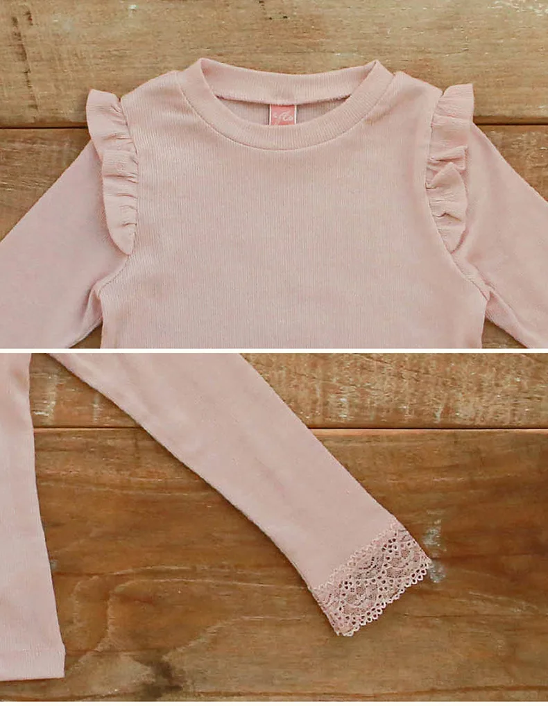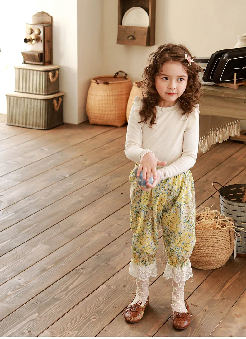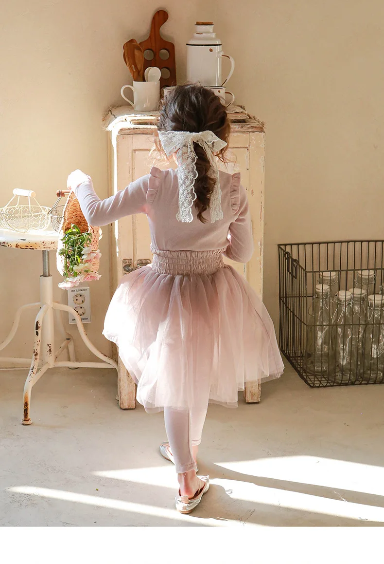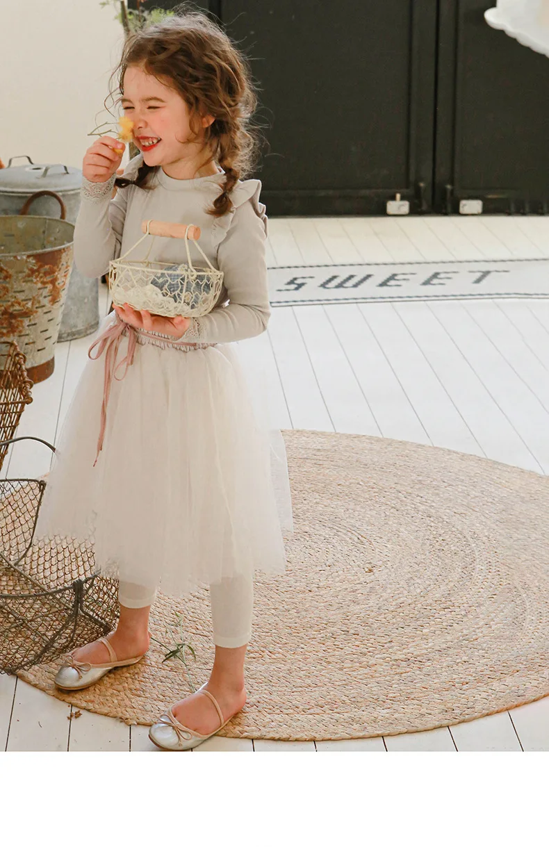 キッズ ショルダー ラッフルフリル 長袖 Tシャツ トップス【mh0001526】