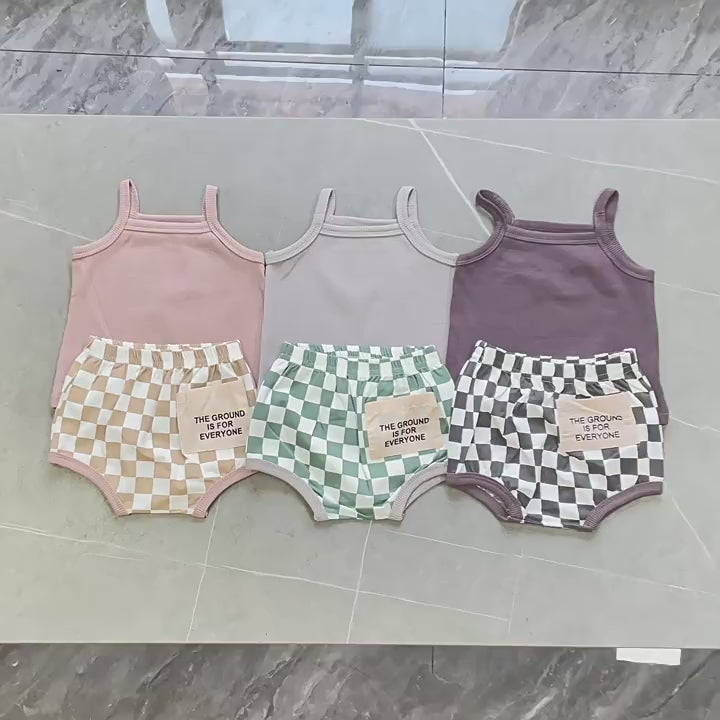ベビーセットアップ 2点セット キャミソール+チェックブルマパンツ 3カラー【mh0006031】