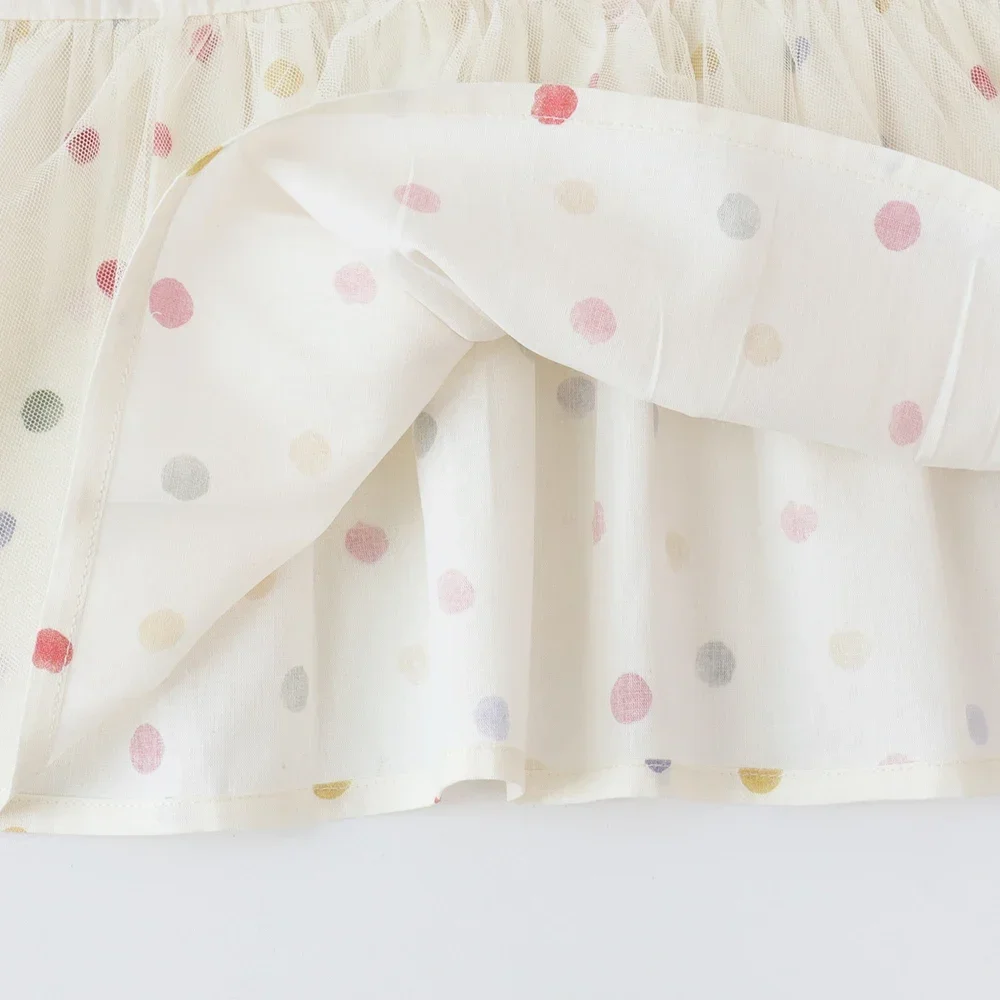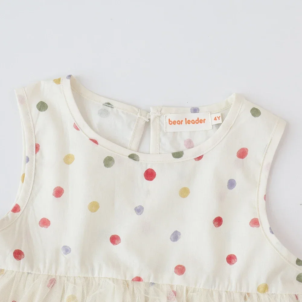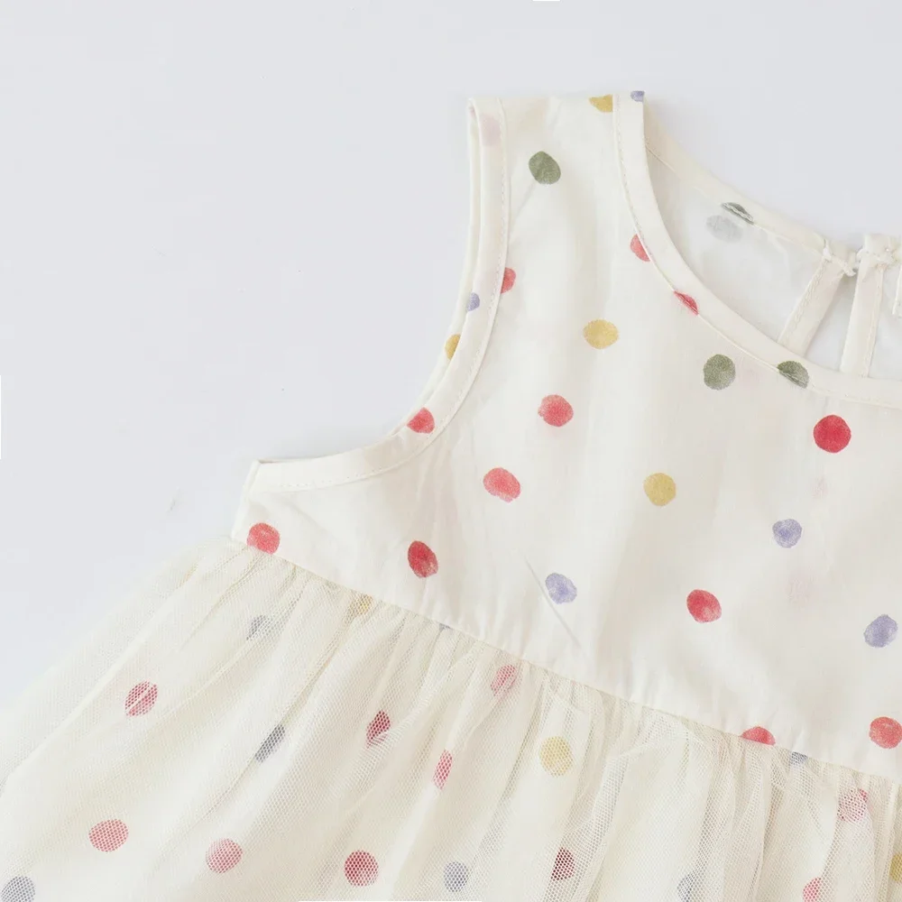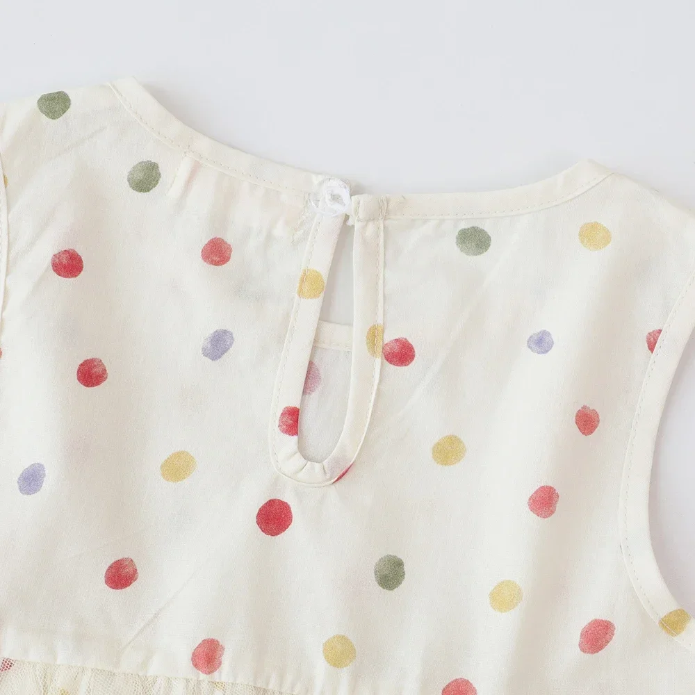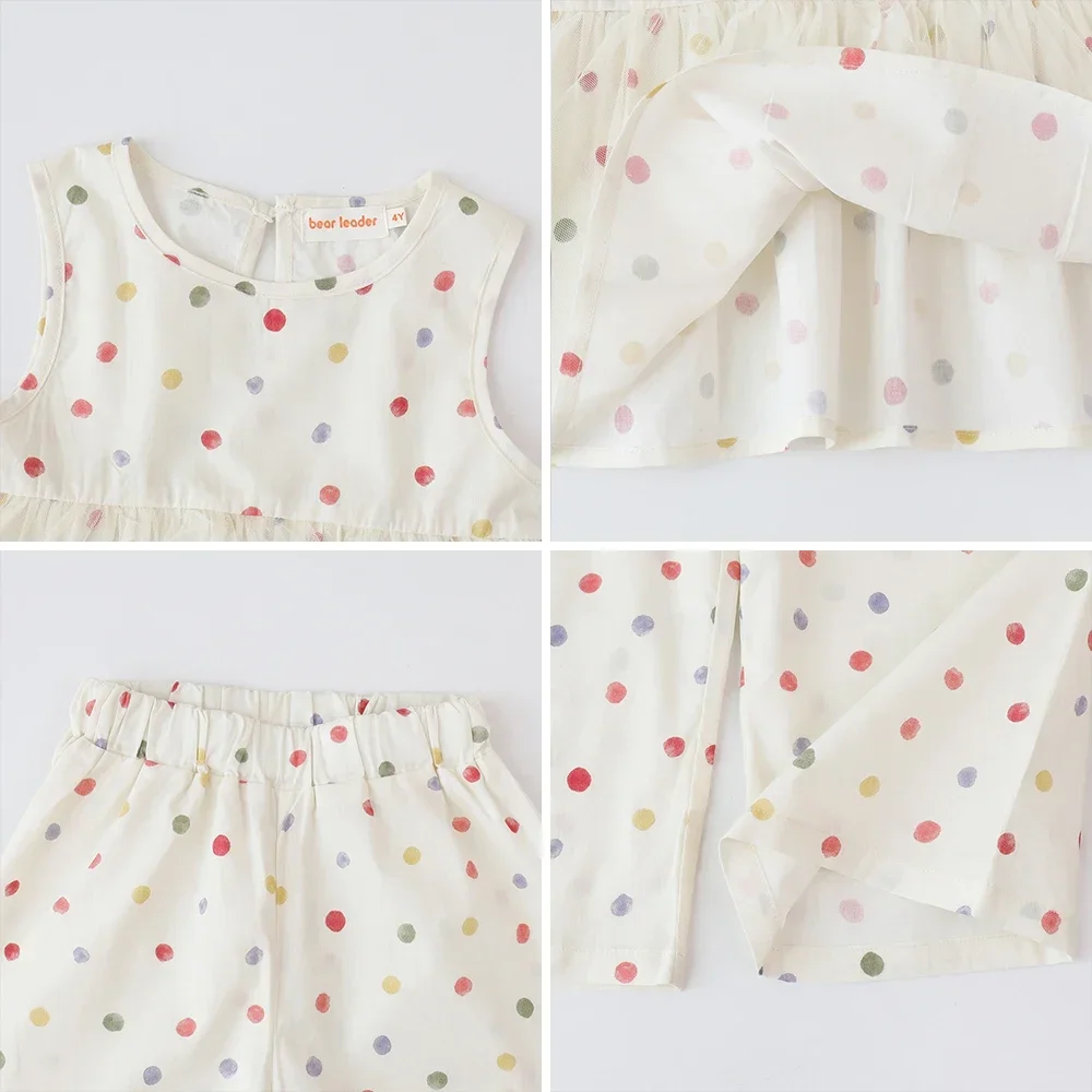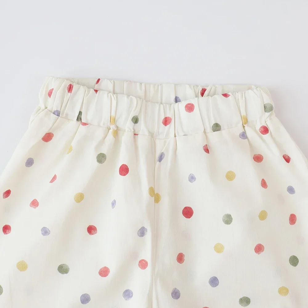 キッズセットアップ 2点セット カラフルドットプリント ノースリーブペプラムブラウス+ロングルーズパンツ【mh0006091】
