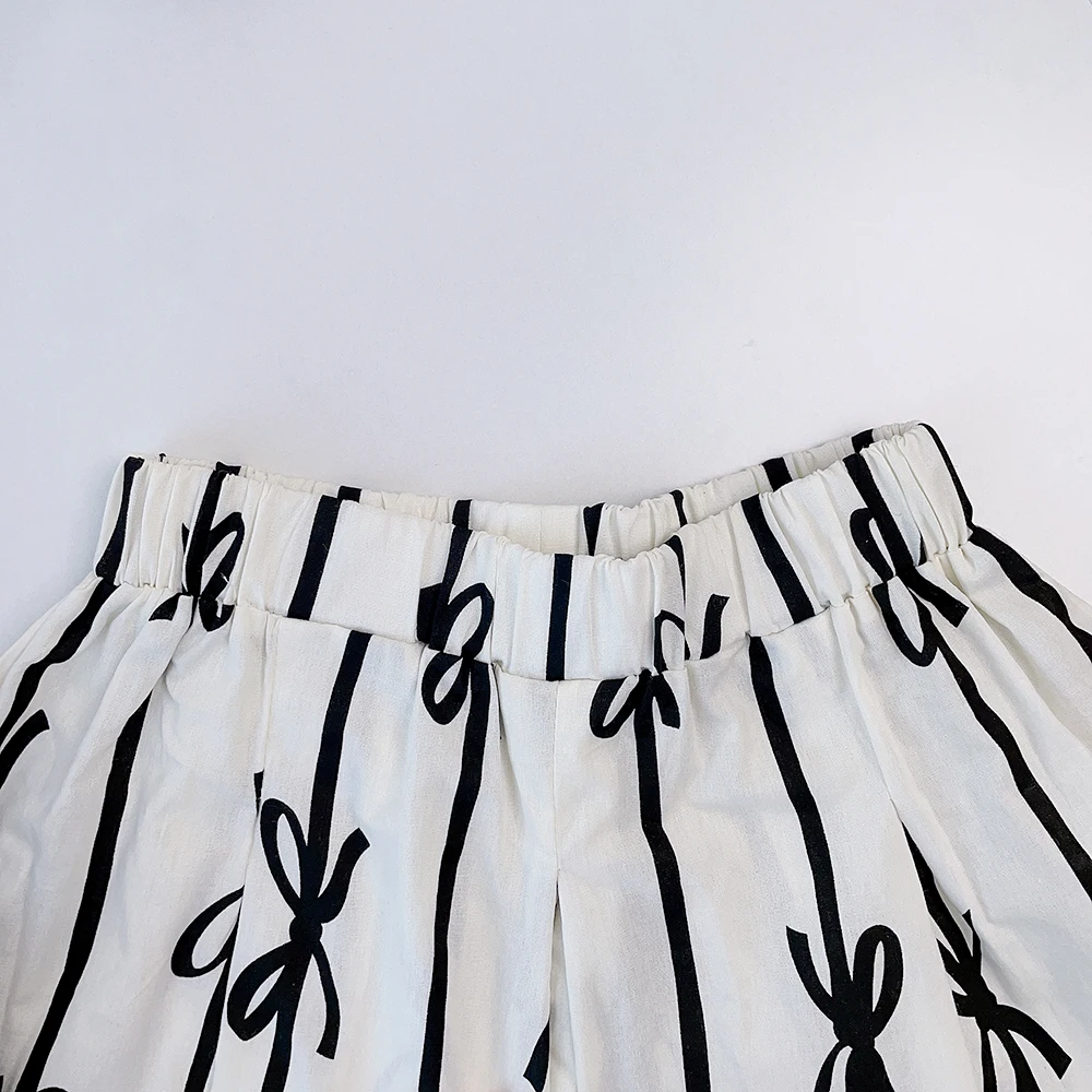 キッズセットアップ 2点セット バタフライスリーブトップス+リボンプリントワイドルーズパンツ【mh0006129】