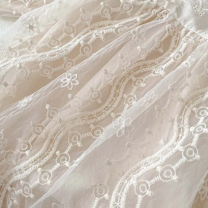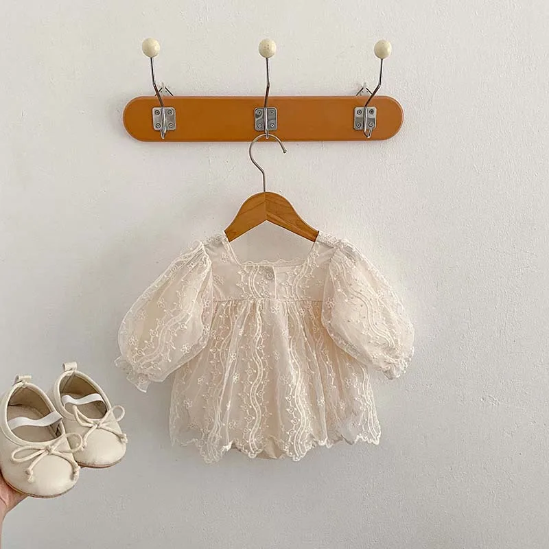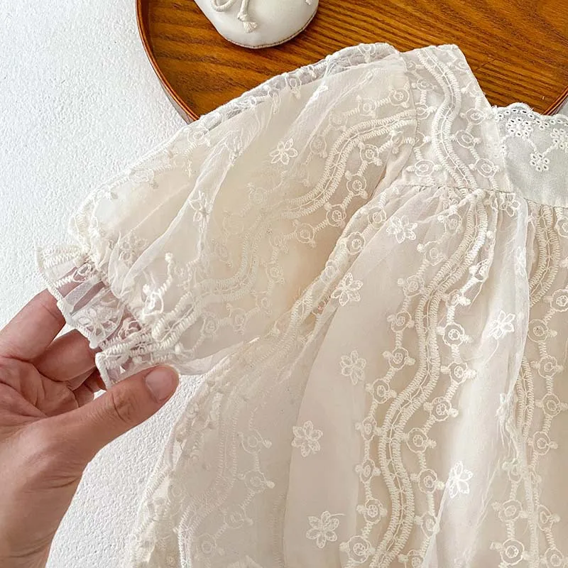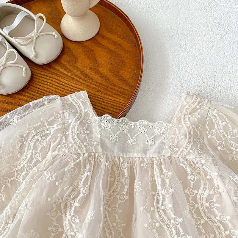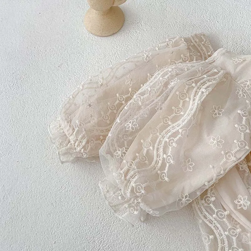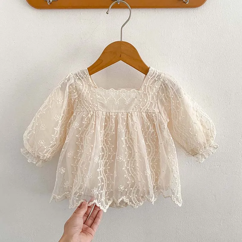 ベビーロンパース レース 長袖スカートボディスーツ ベビードレス お出かけ ベージュ【mh0006204】