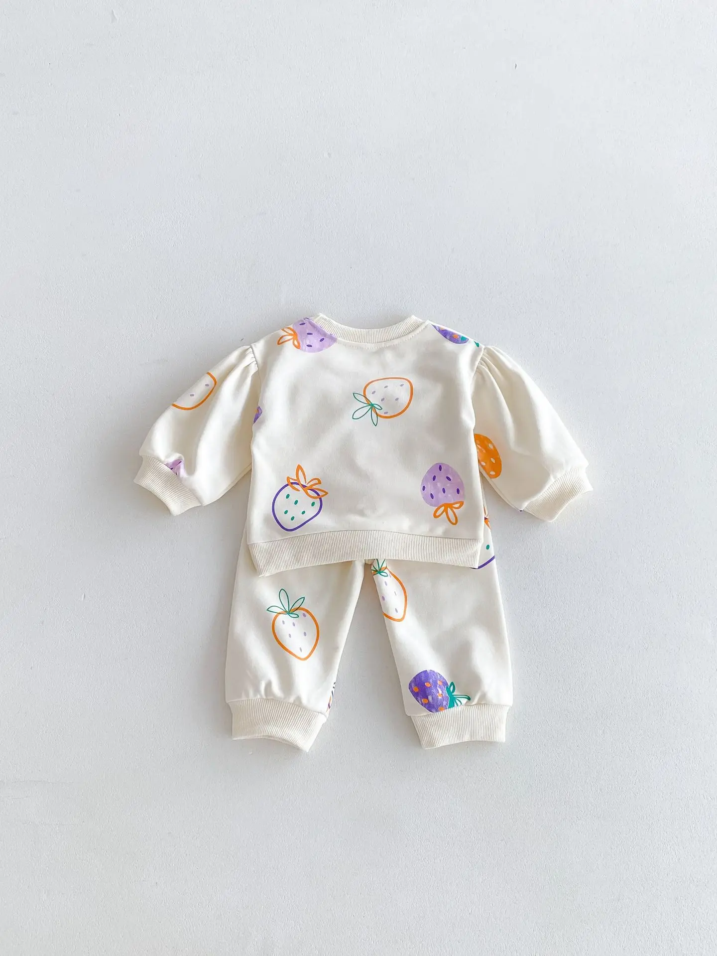 ベビーキッズセットアップ 2点セット 長袖スウェットシャツ+ロングパンツ いちごストロベリープリント【mh0006361】