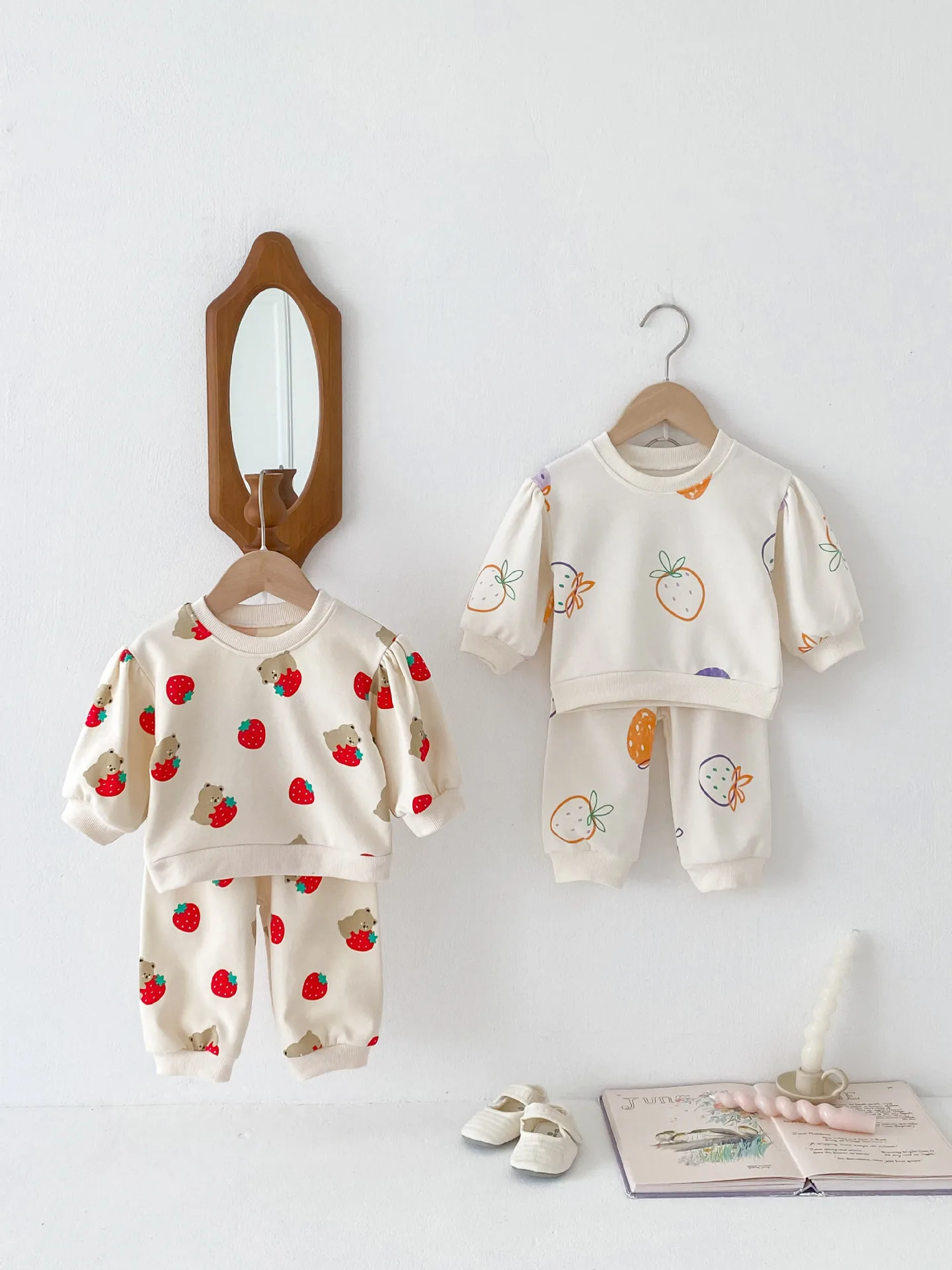 この可愛いベビーキッズセットは、秋にぴったりの新しいアイテムです。ロングスリーブのプリントスウェットシャツとパンツのセットで、いちごとベアのデザインがとてもかわいらしいです。2点セットなので、手軽におしゃれなコーディネートが楽しめます。赤ちゃんの成長に合わせて、カジュアルなスタイリングで着回せます。