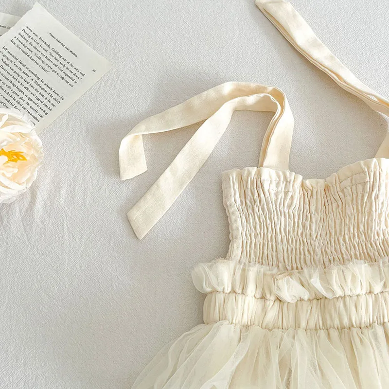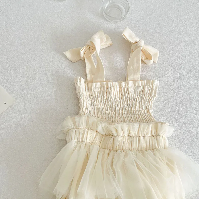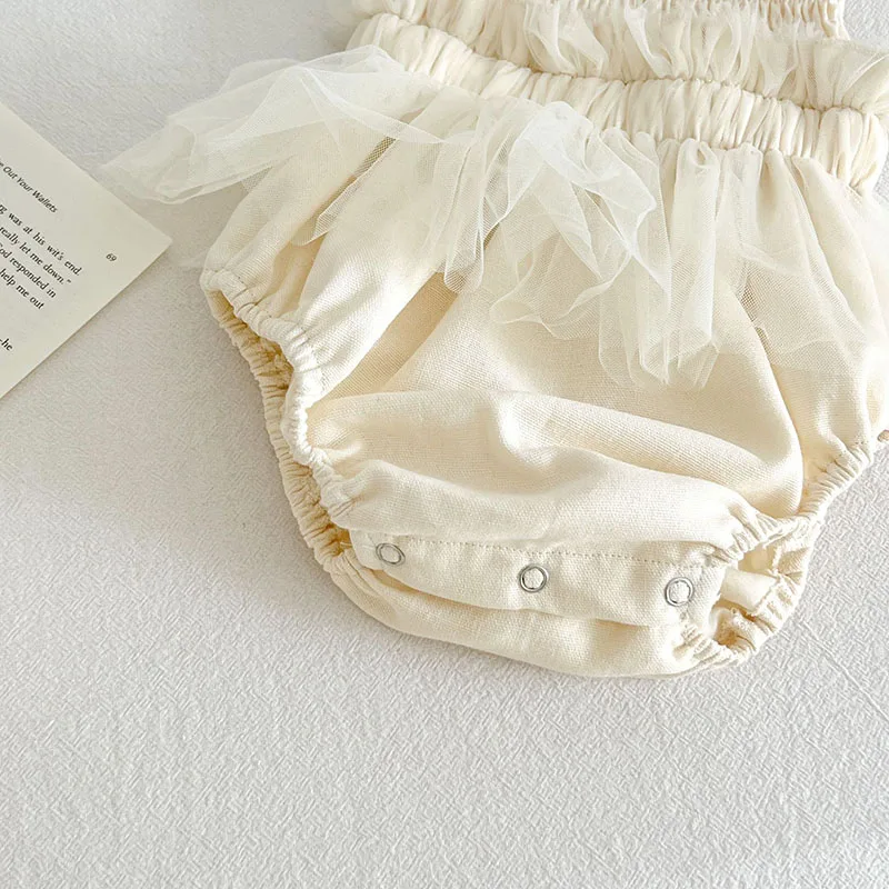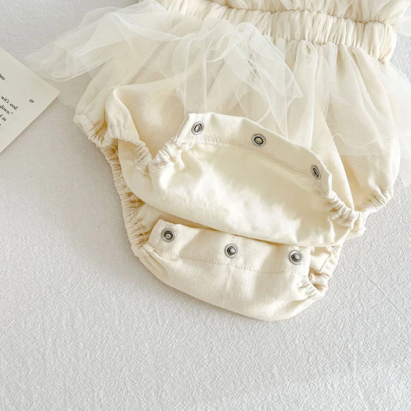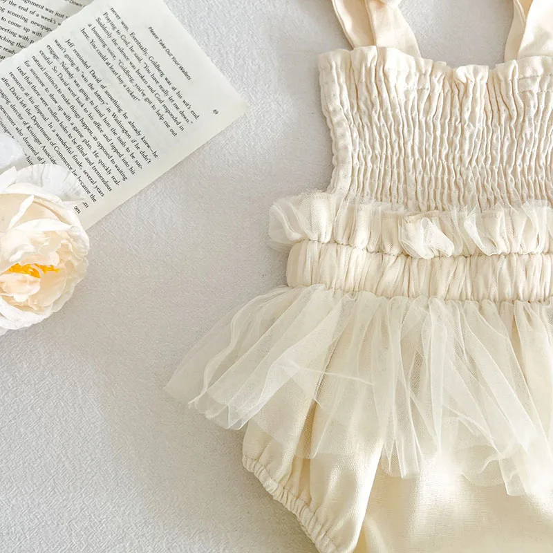 ベビーロンパース キャミソールシャーリング チュチュチュールペプラムボディスーツ ベージュ【mh0006549】