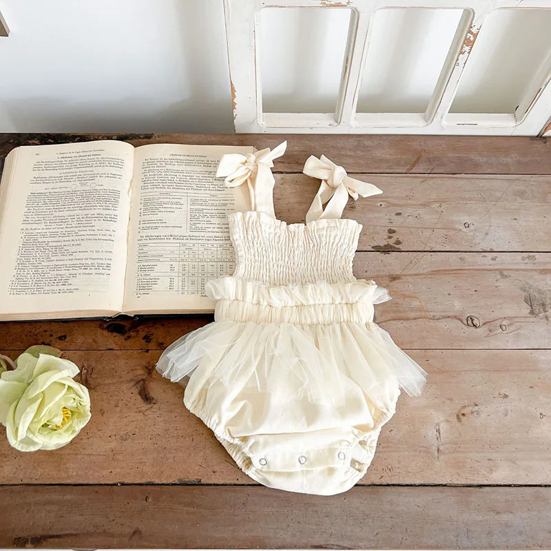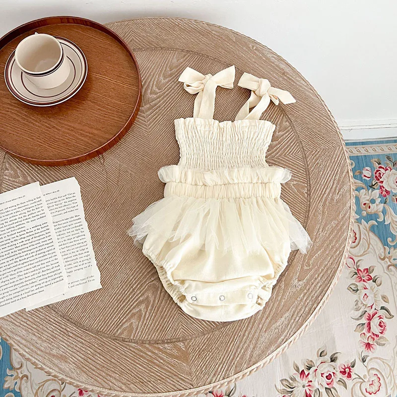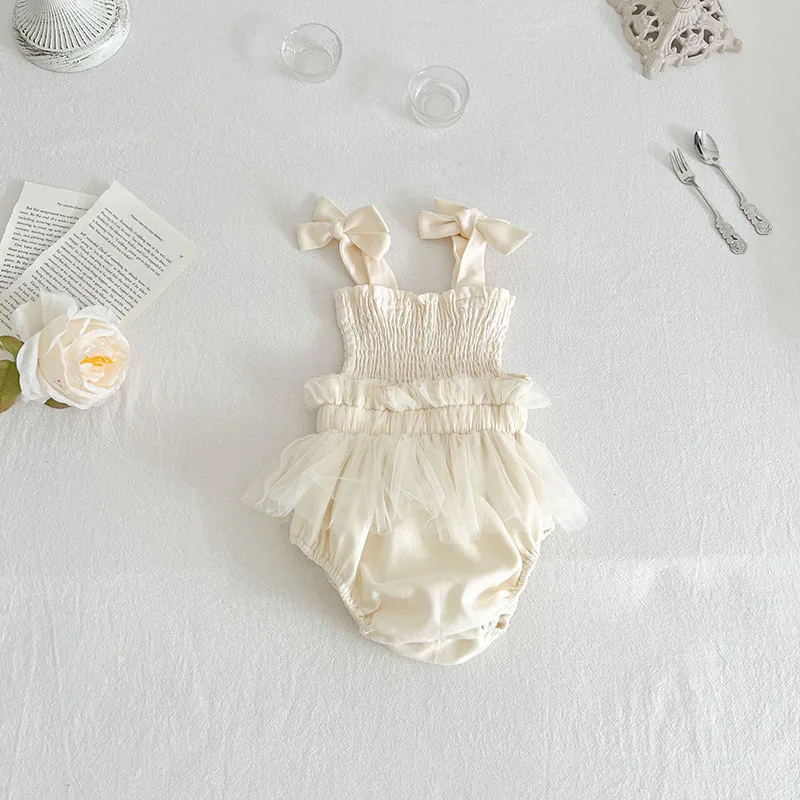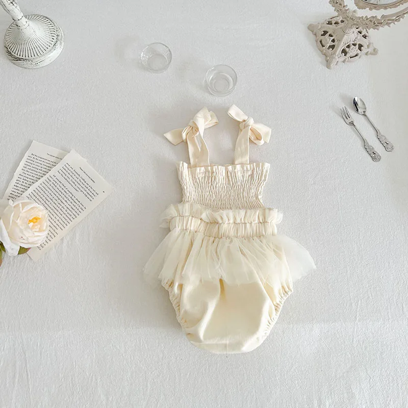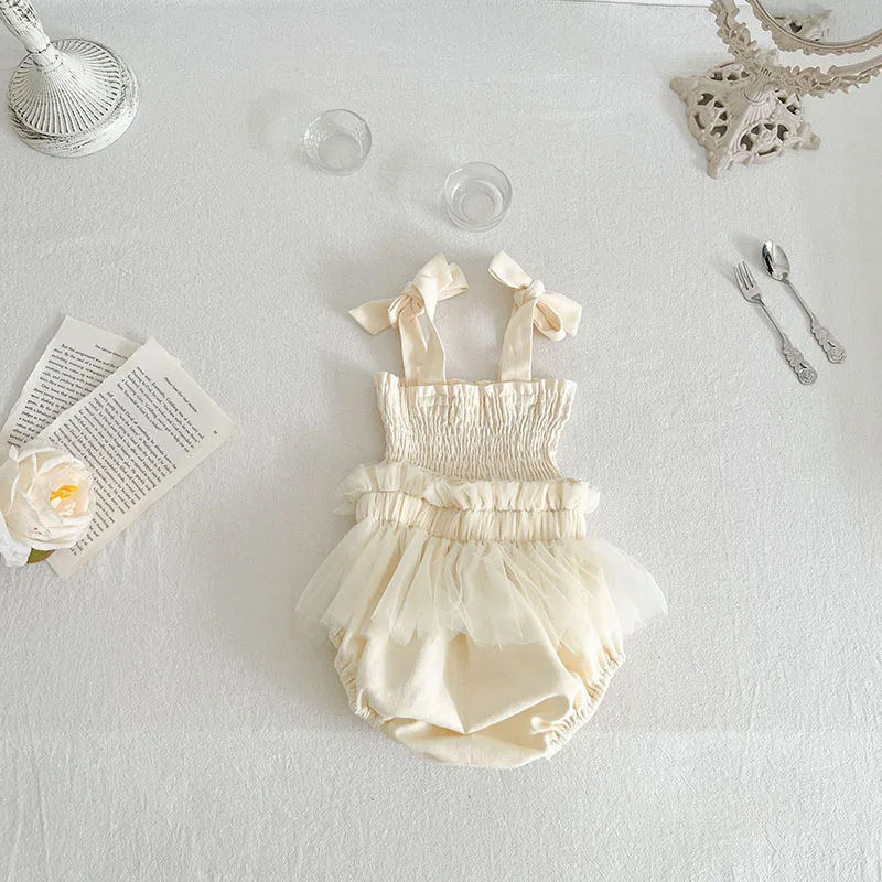 #ベビーロンパース #チュチュチュール #キャミソール #シャーリング #ペプラムボディスーツ #ベージュロンパース #子供服