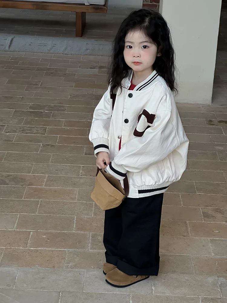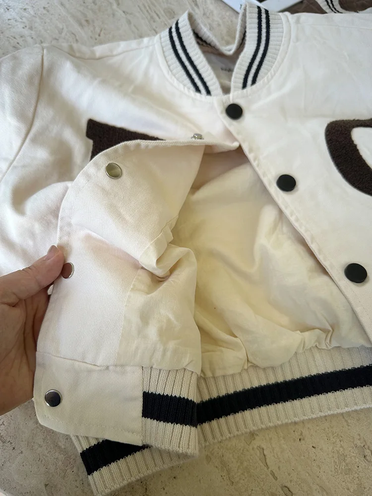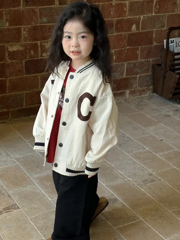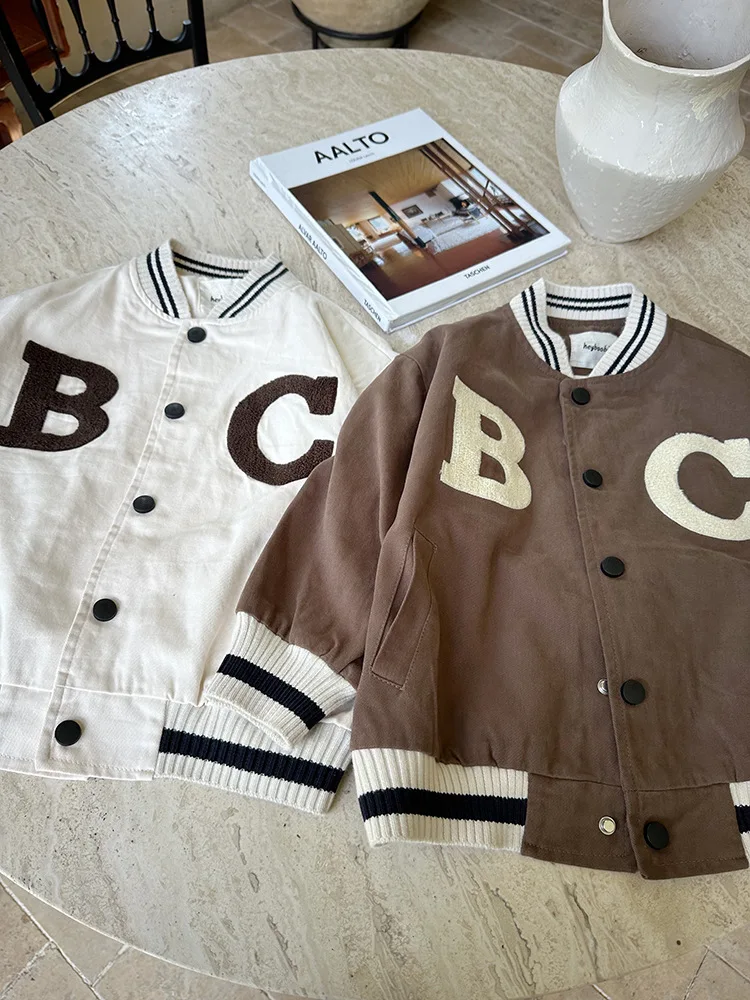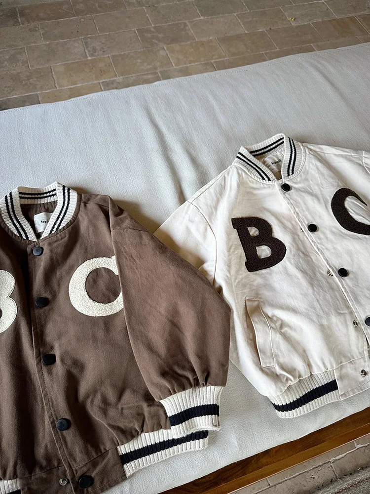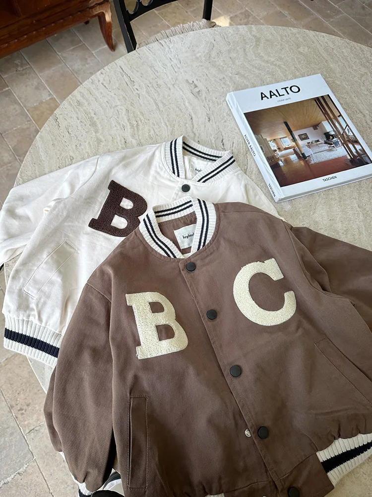 おしゃれなアルファベットアップリケが特徴のスタジアムジャンパーです。男の子も女の子も着こなしやすいカジュアルなデザインで、動きやすく快適な着心地が魅力。スタジャンスタイルで、スポーティーかつトレンド感のあるコーディネートが楽しめます。2カラー展開。