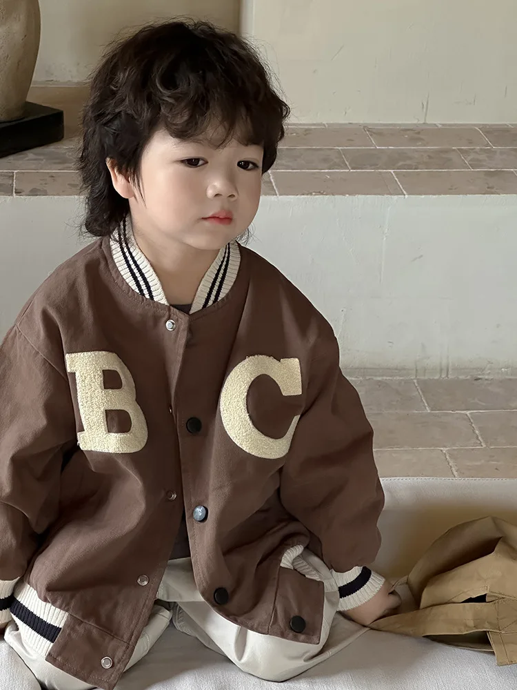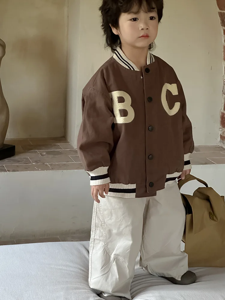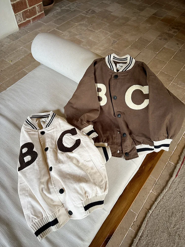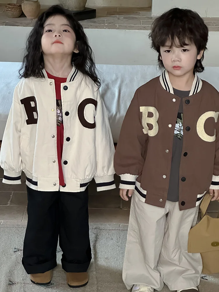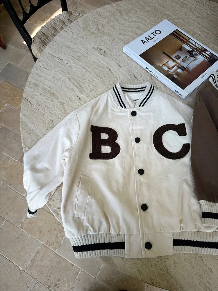 おしゃれなアルファベットアップリケが特徴のスタジアムジャンパーです。男の子も女の子も着こなしやすいカジュアルなデザインで、動きやすく快適な着心地が魅力。スタジャンスタイルで、スポーティーかつトレンド感のあるコーディネートが楽しめます。2カラー展開。