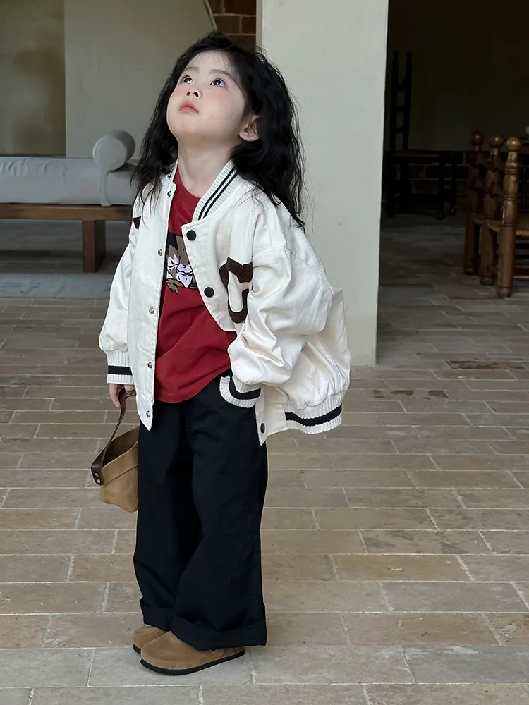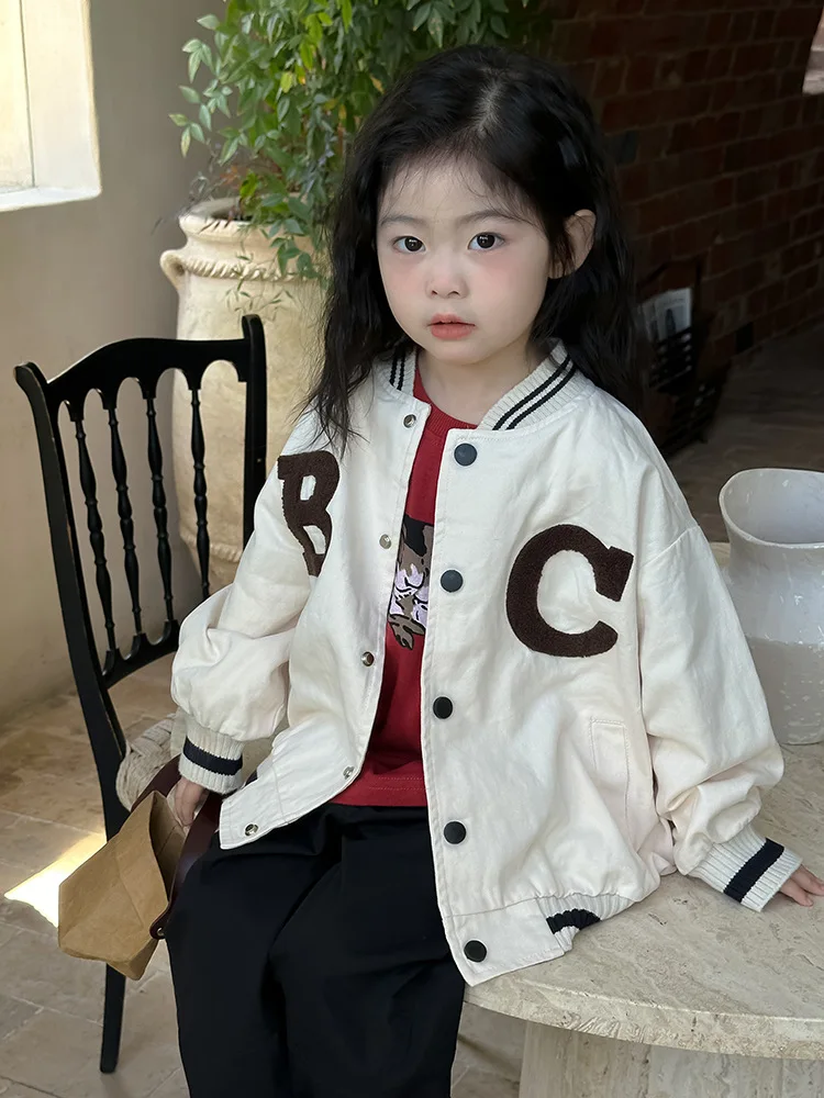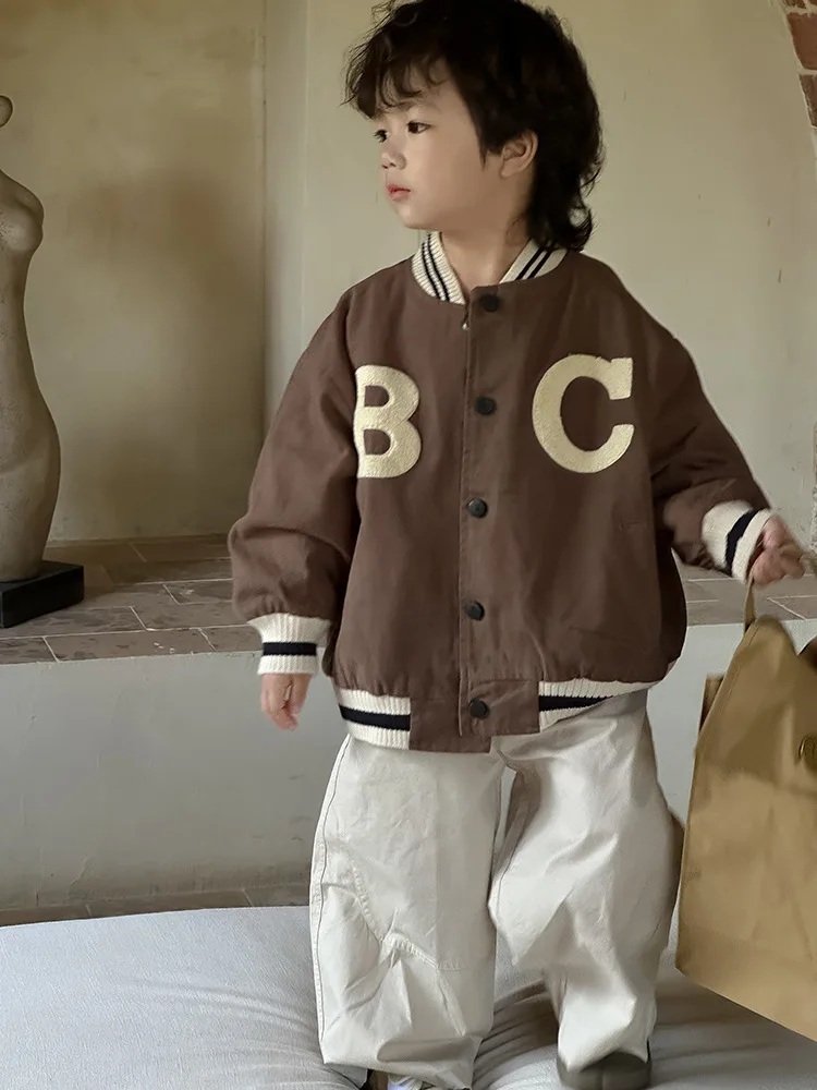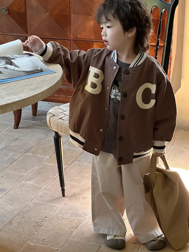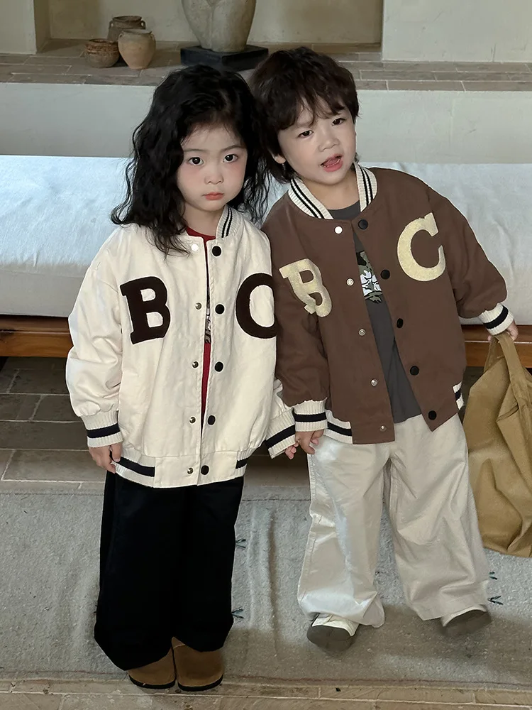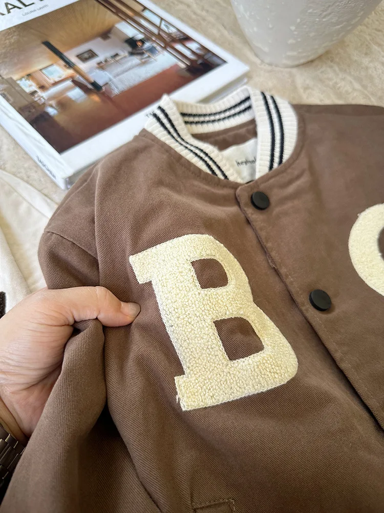 おしゃれなアルファベットアップリケが特徴のスタジアムジャンパーです。男の子も女の子も着こなしやすいカジュアルなデザインで、動きやすく快適な着心地が魅力。スタジャンスタイルで、スポーティーかつトレンド感のあるコーディネートが楽しめます。2カラー展開。