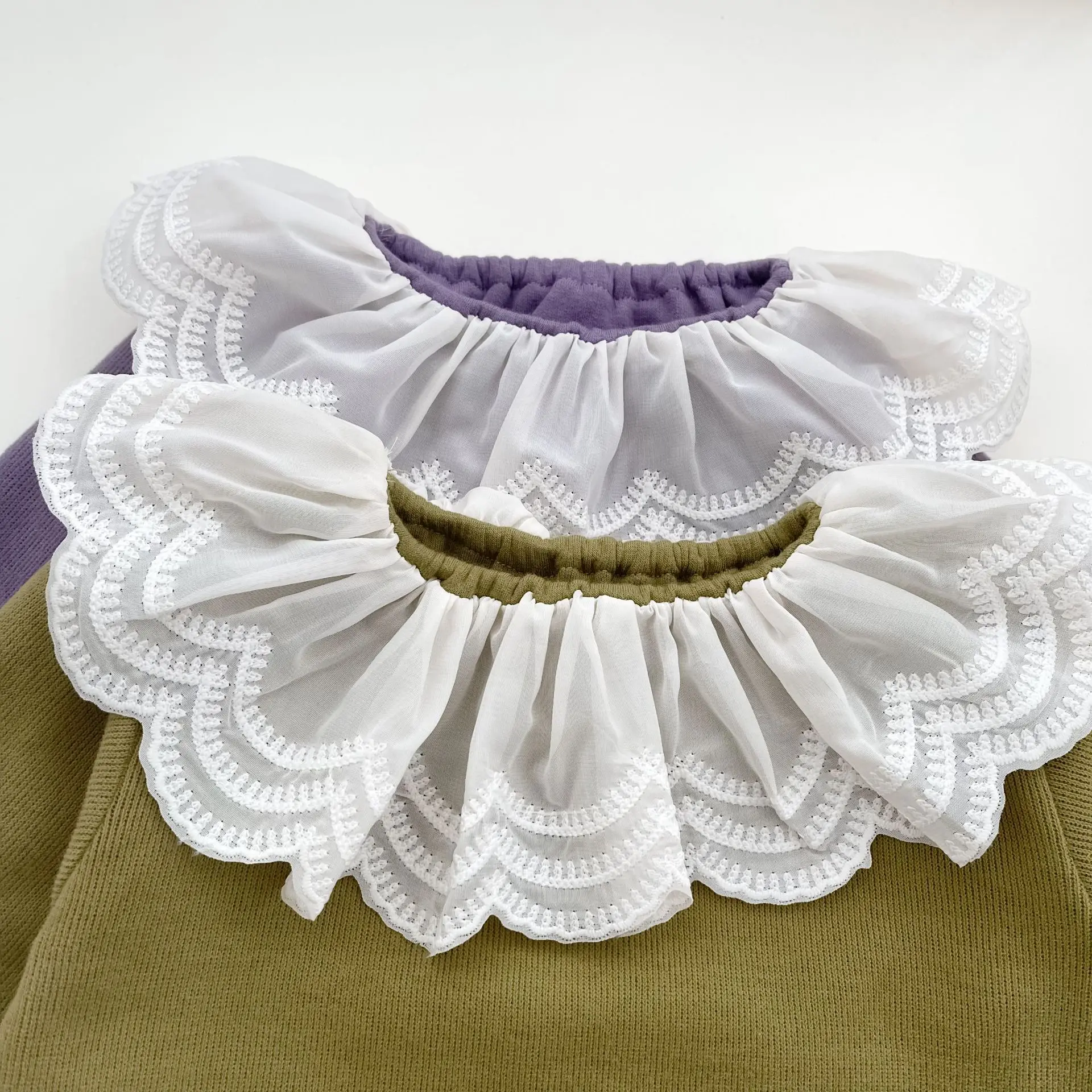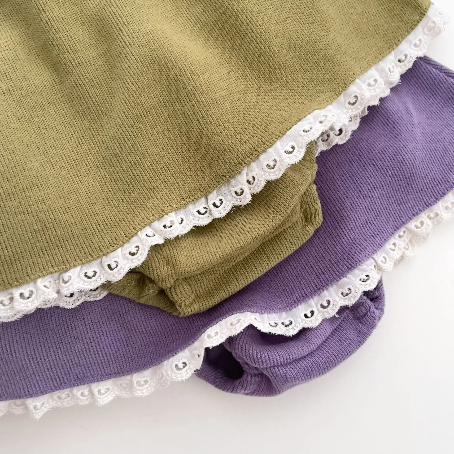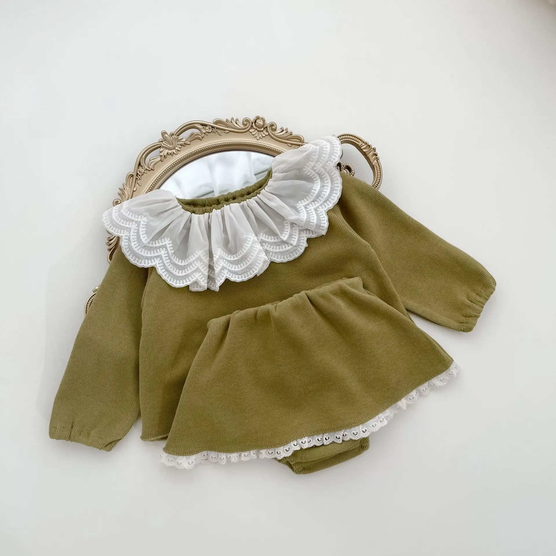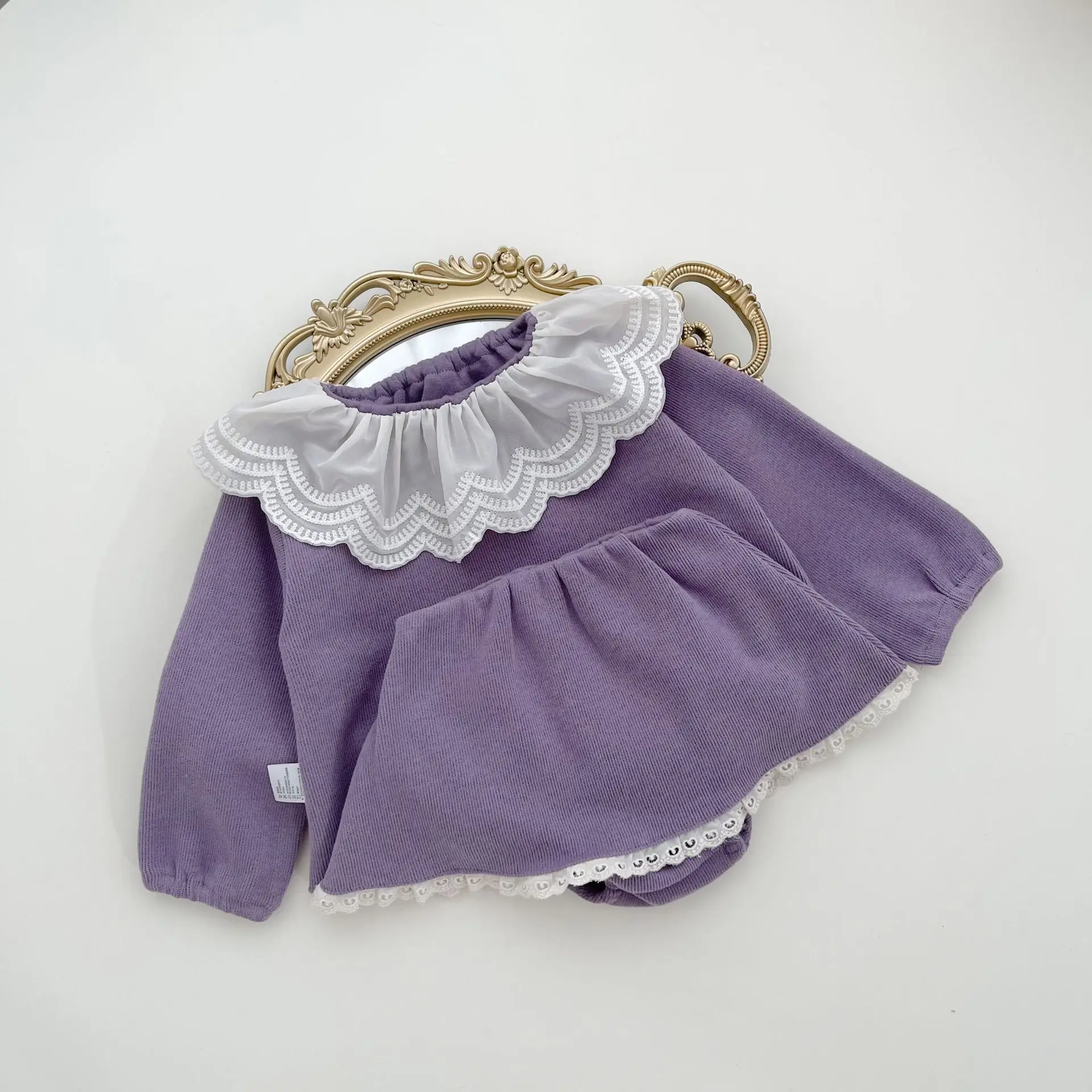 ベビーセットアップ 2点セット ロータス襟長袖Tシャツブラウス+ブルマパンツインスカート 2カラー【mh0006715】