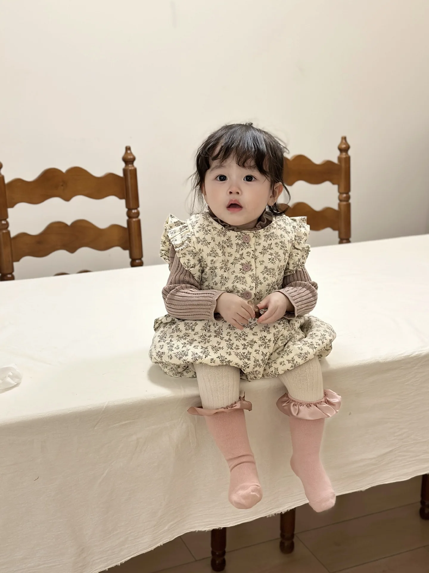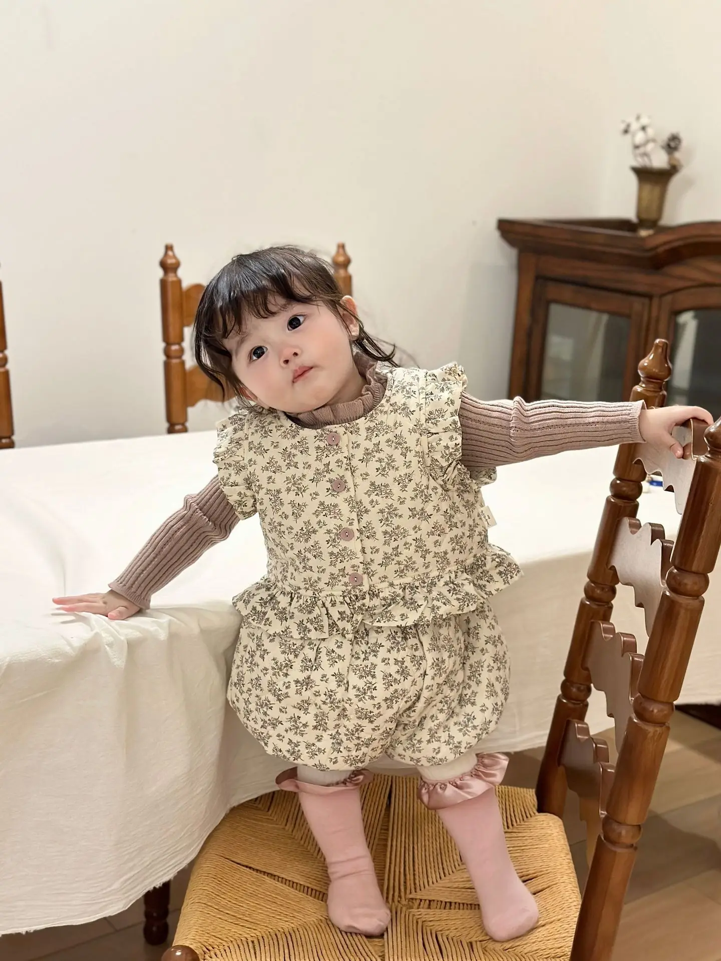 フラワープリントが華やかなパデッドペプラムベストと、バルーンシルエットのショートパンツの2点セットは、冬のお出かけにぴったりな温かく可愛らしいアイテムです。ベストはパデッド仕様でしっかりと暖かさを保ち、ペプラムデザインが女の子らしい可愛さを引き立てます。バルーンショートパンツは動きやすさを重視し、寒さからしっかり守りながらも、おしゃれなシルエットを演出します。フラワープリントがアクセントとなり、韓国スタイルのデザインがスタイリッシュで可愛らしさ満点。普段使いや特別なお出かけにも最適なセットです。
