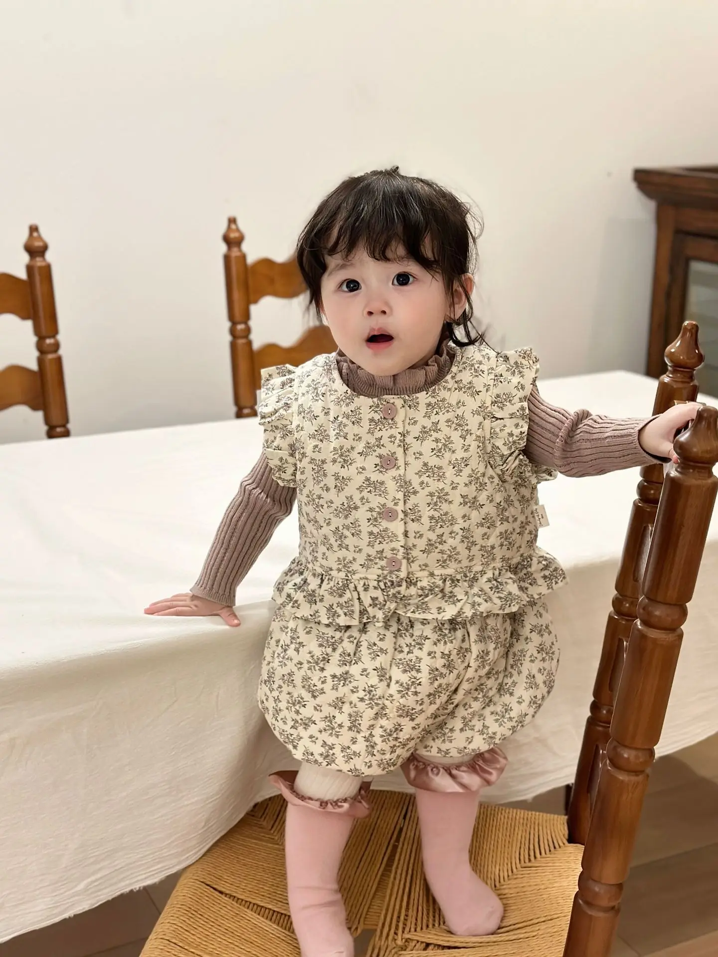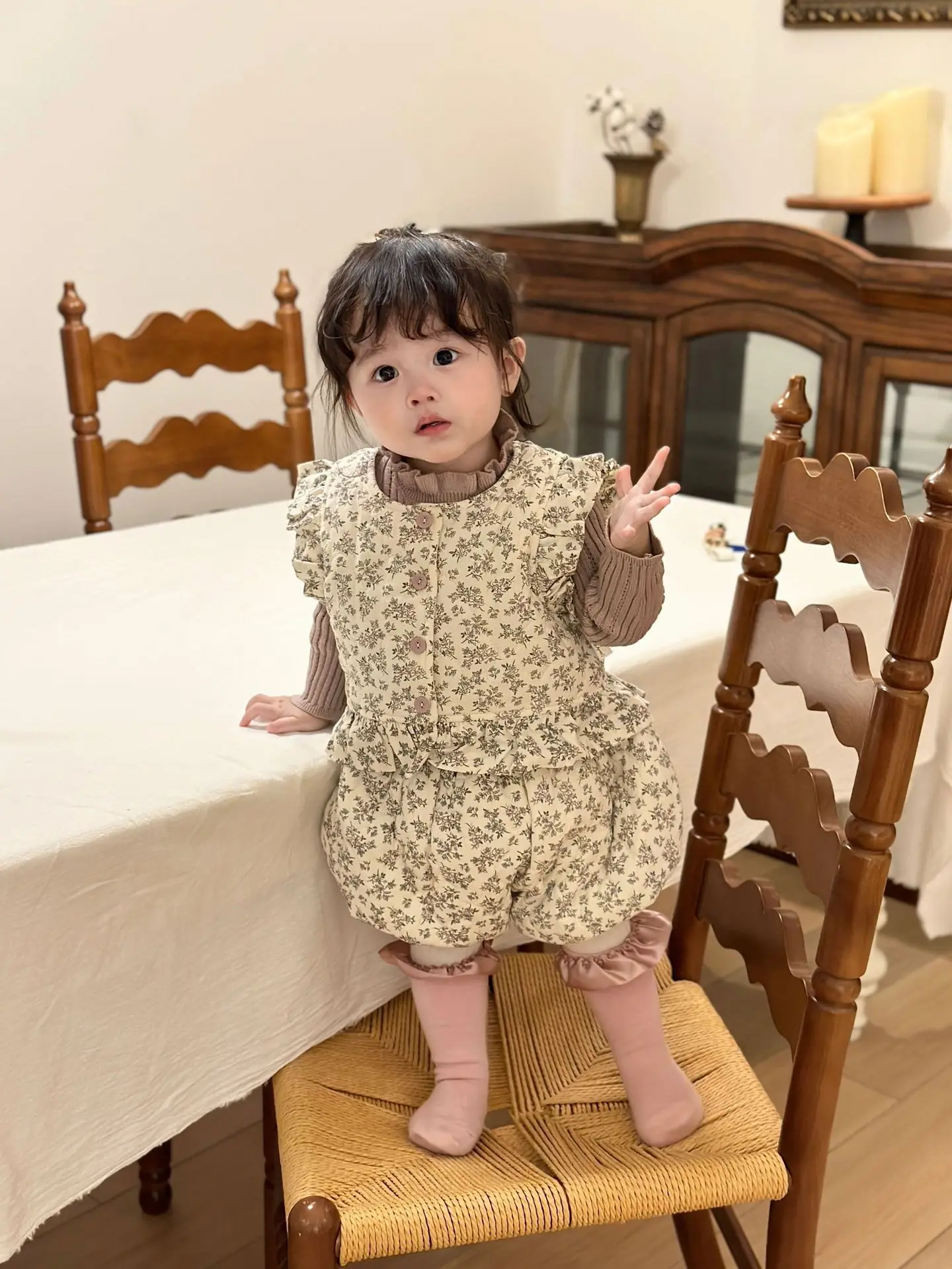 #ベビーセットアップ #フラワープリント #パデッドベスト #バルーンショートパンツ #キッズファッション #ベビーファッション #冬のコーデ