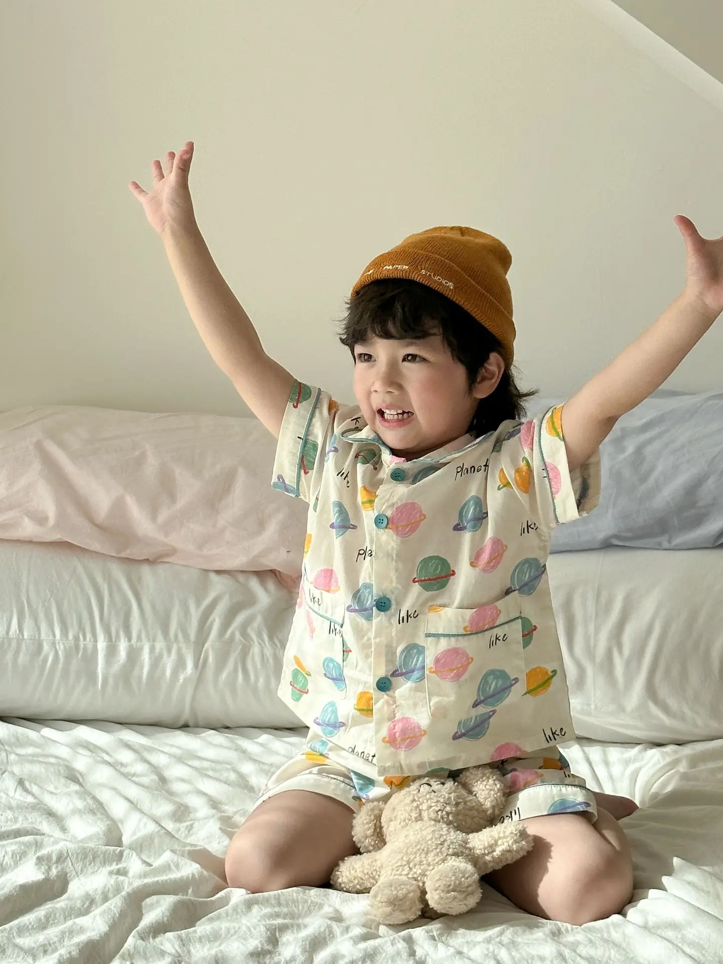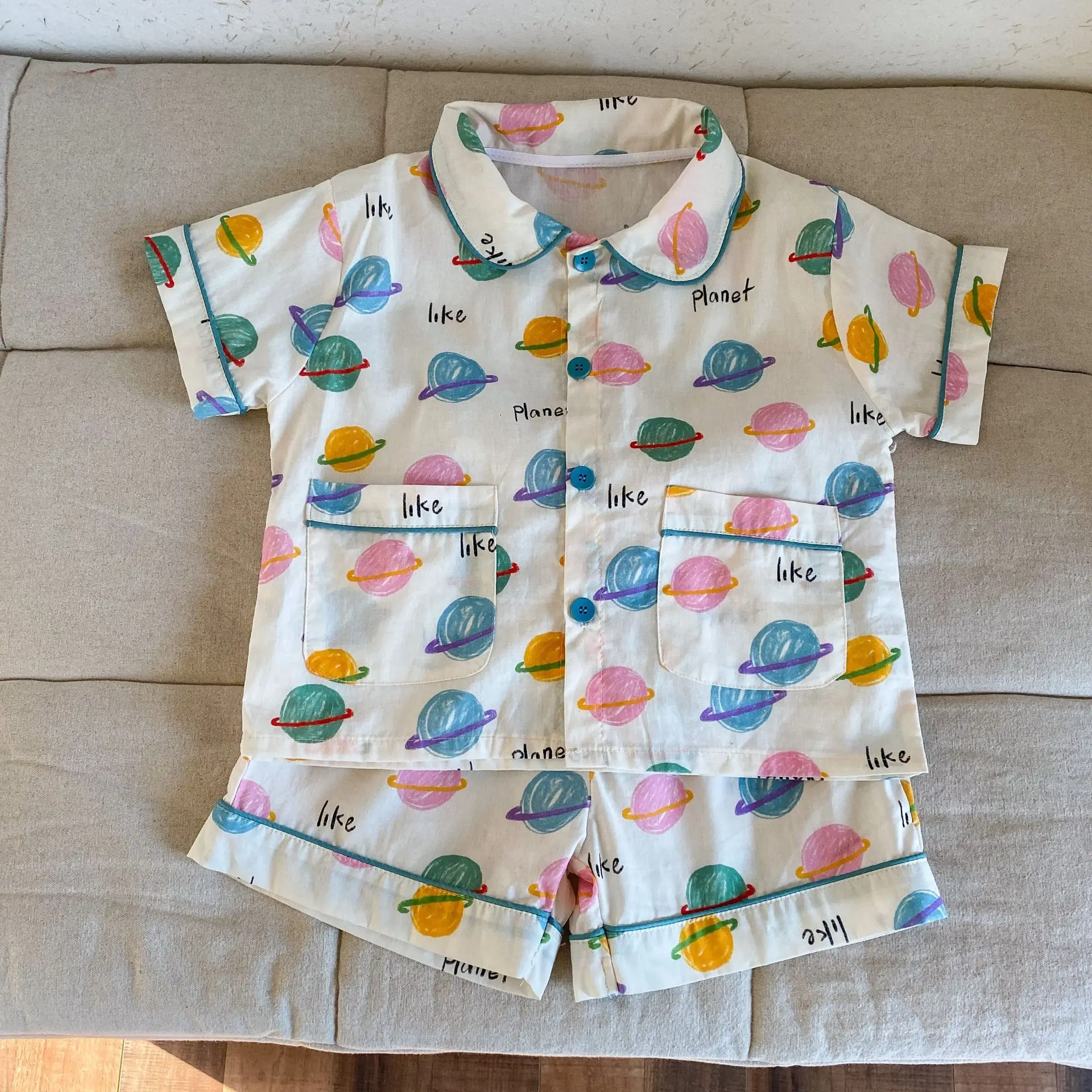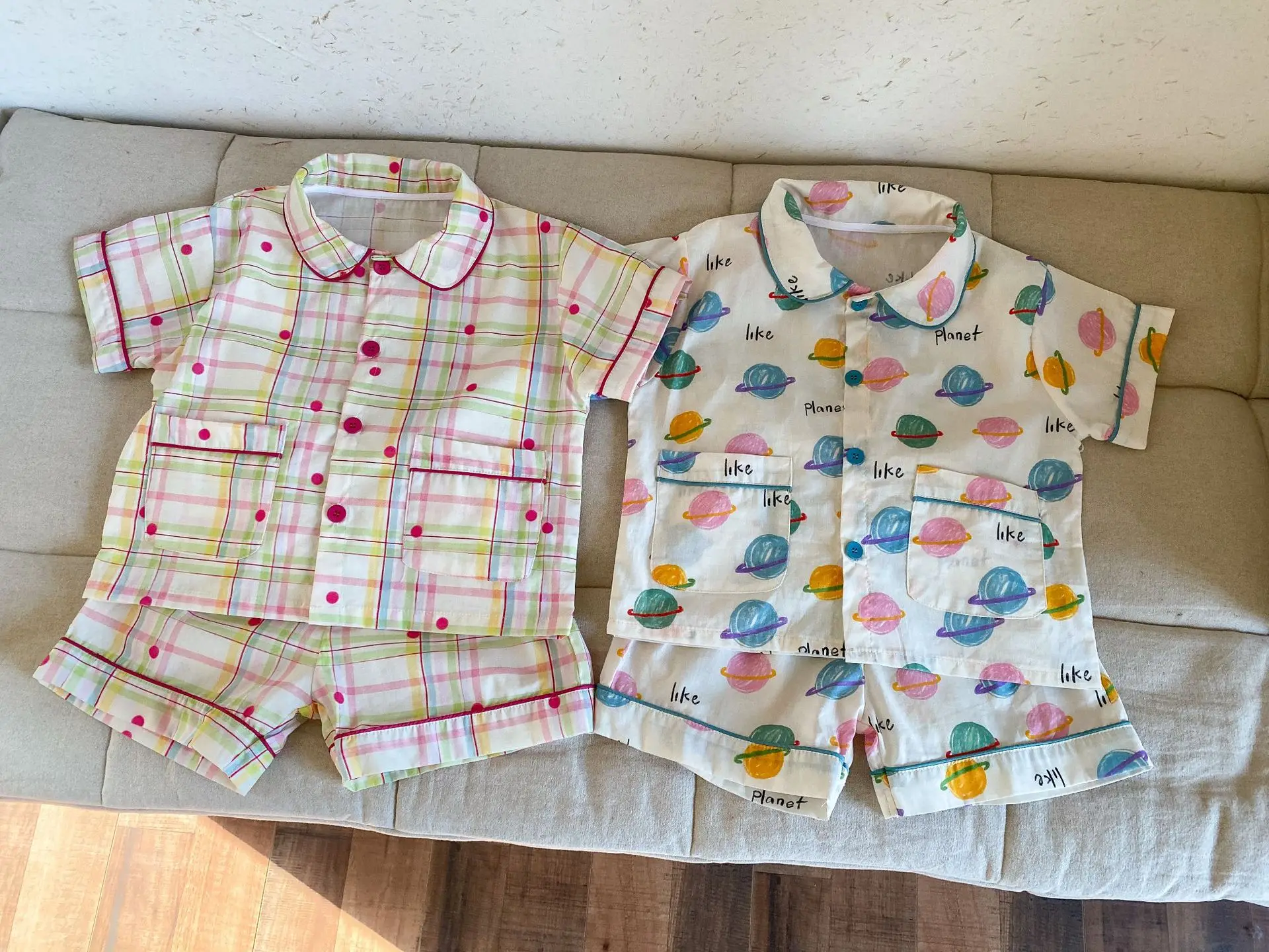 #キッズパジャマ #チェック柄 #宇宙プリント #ルームウェア #コットン素材 #子供服