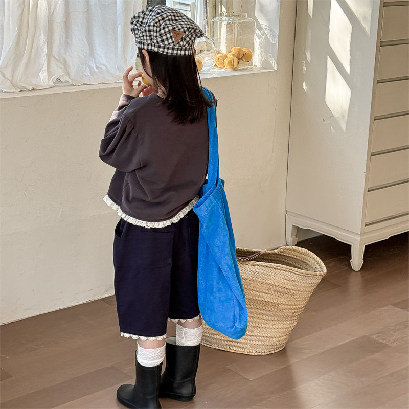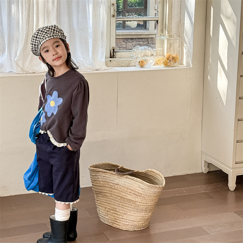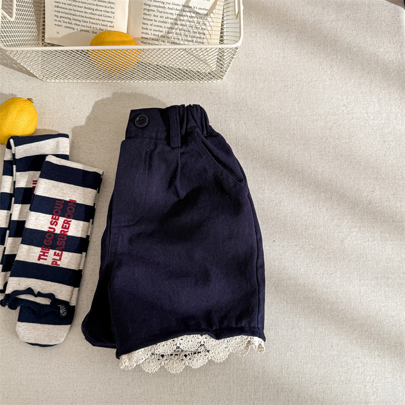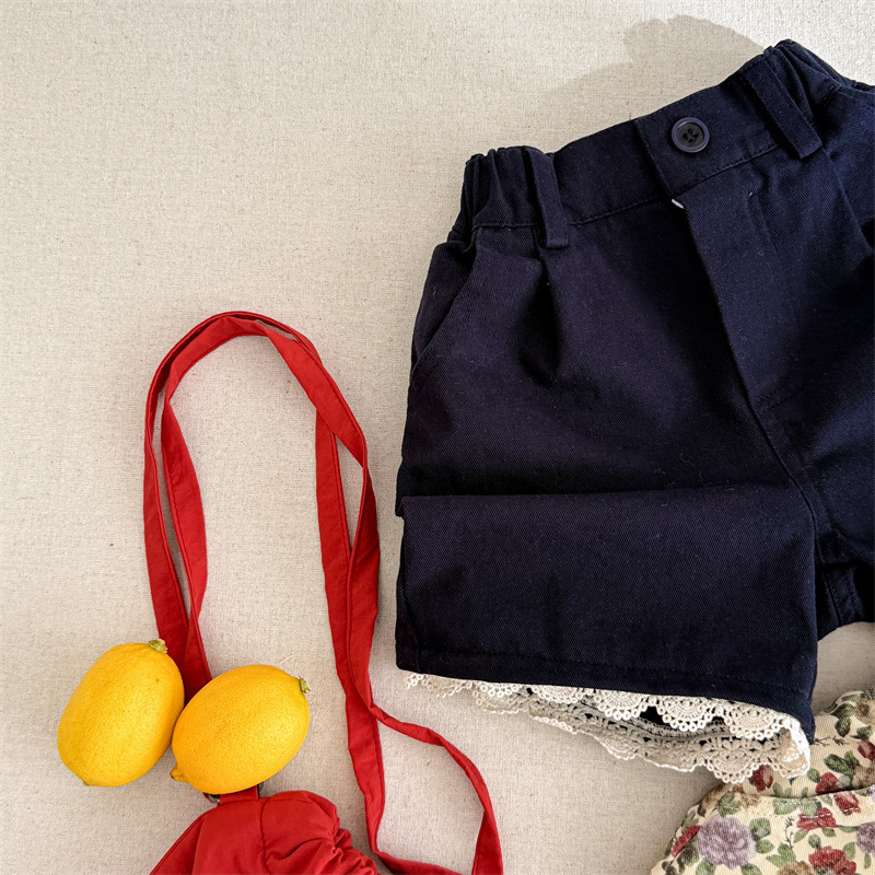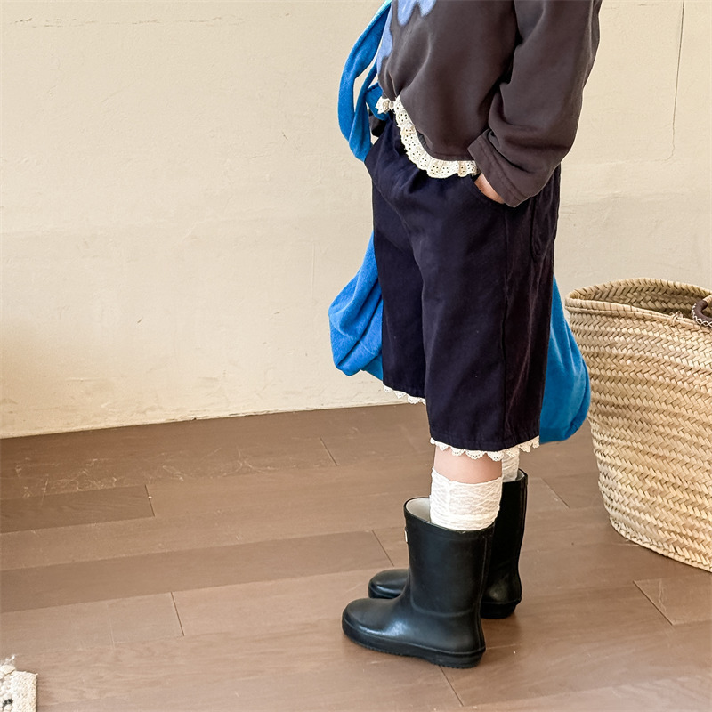 キッズパンツ フラワー/無地裾レースハーフパンツ【mh0009004】