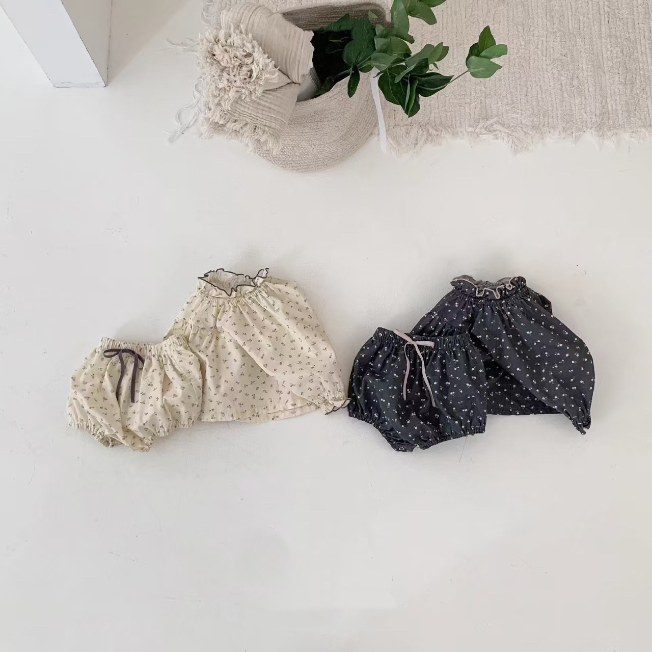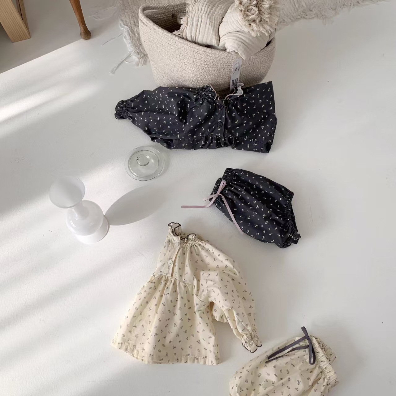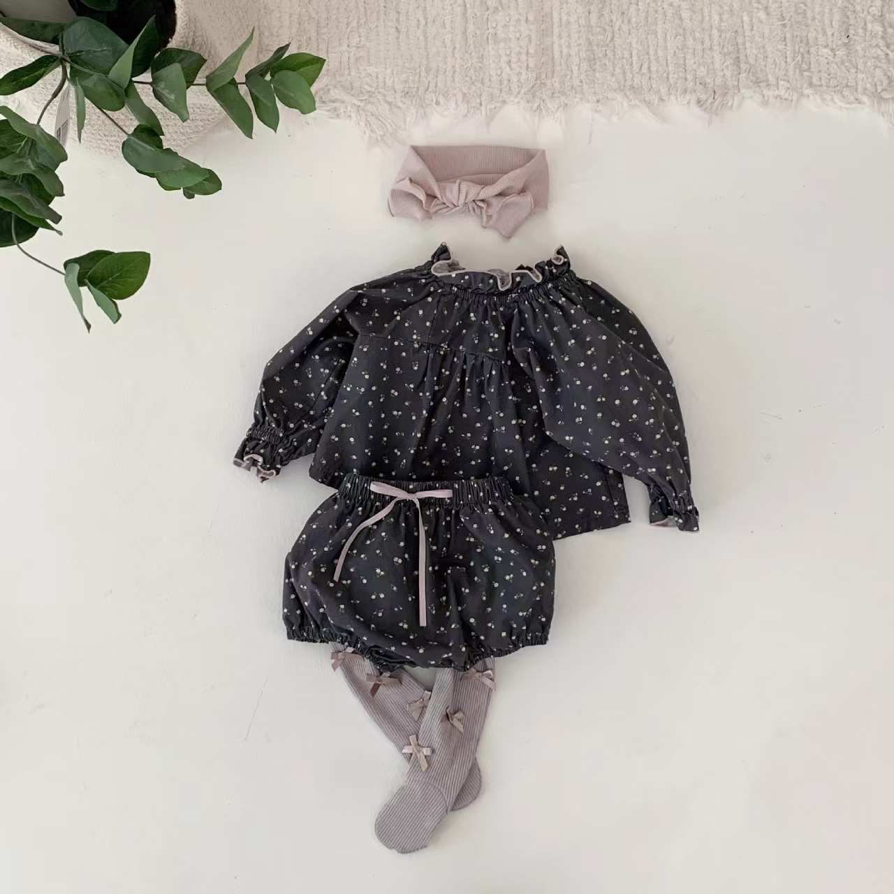 ベビーセットアップ 2点セット フラワー小花柄プリント長袖チュニックブラウス+ブルマパンツ【mh0009157】