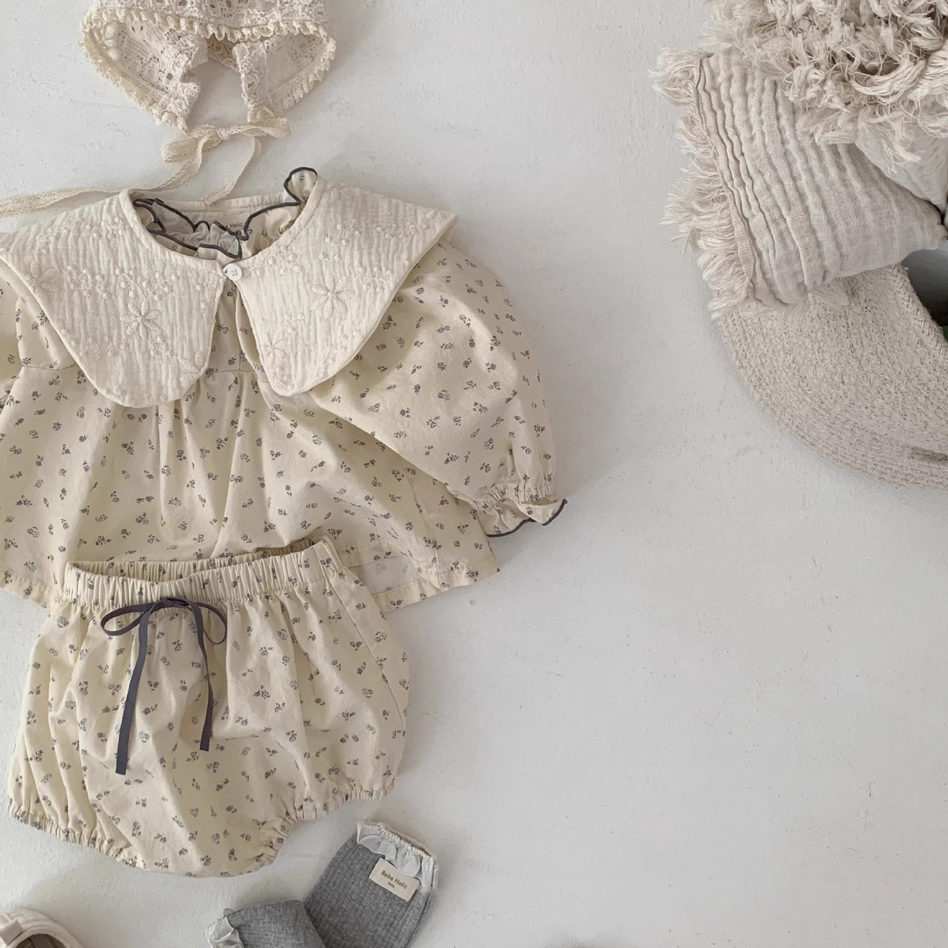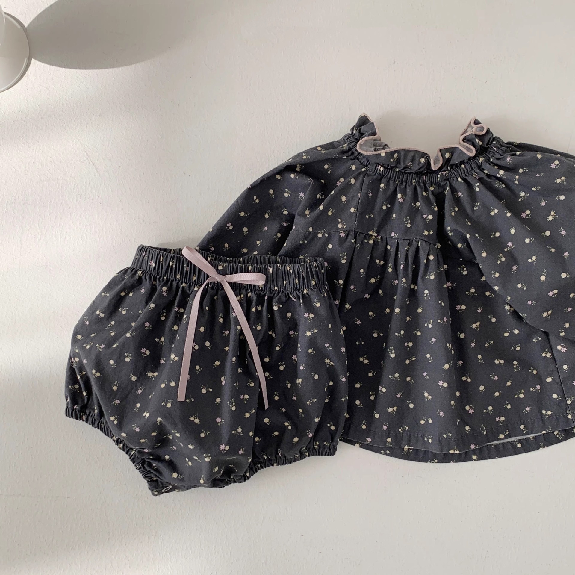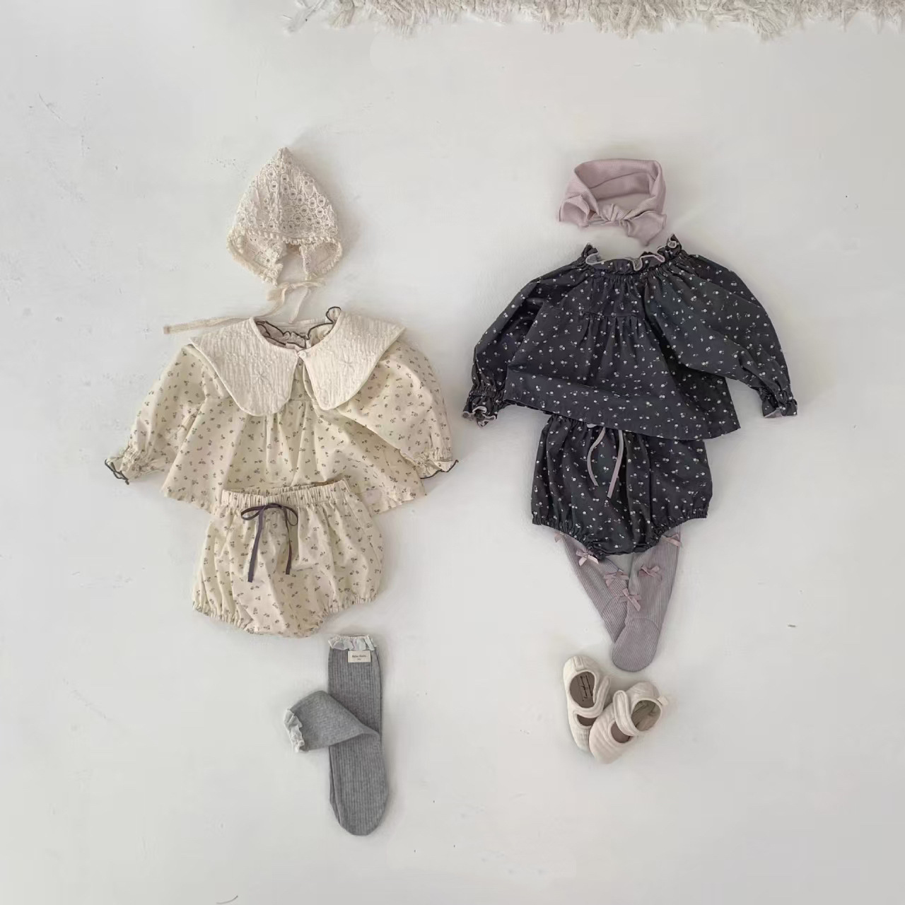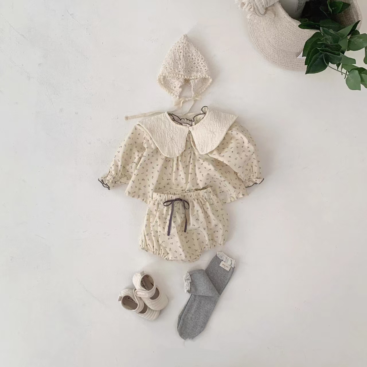 ベビーセットアップ 2点セット フラワー小花柄プリント長袖チュニックブラウス+ブルマパンツ【mh0009157】