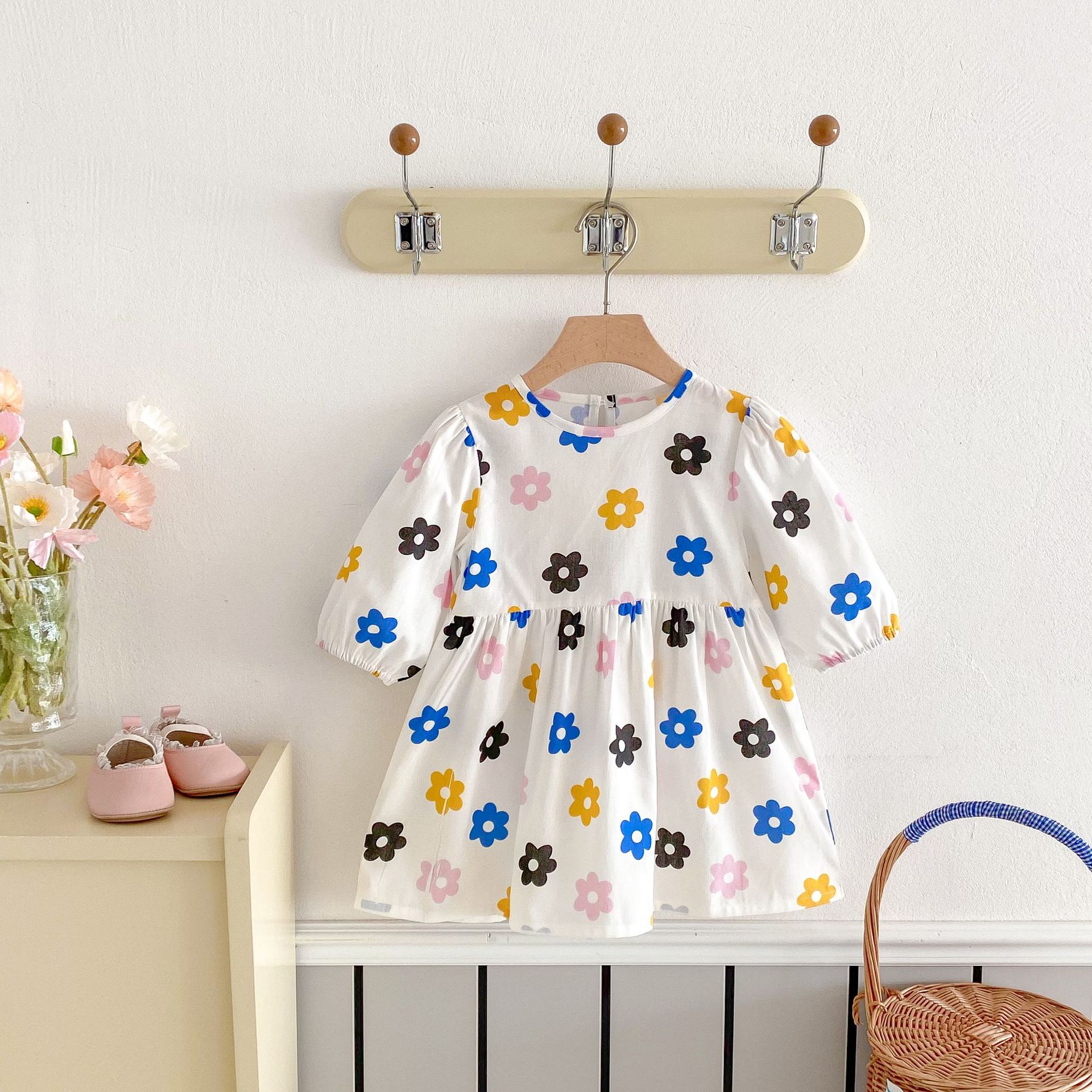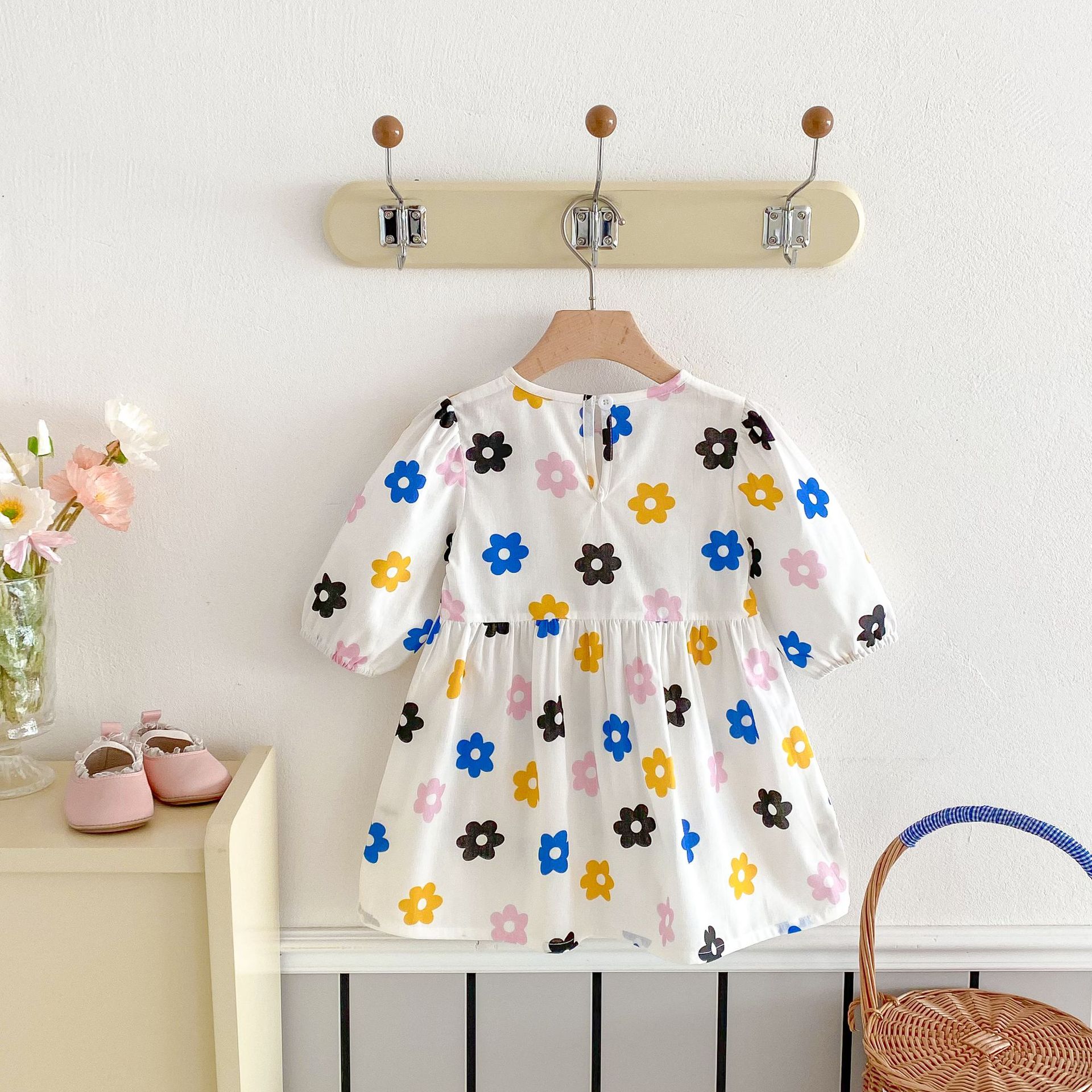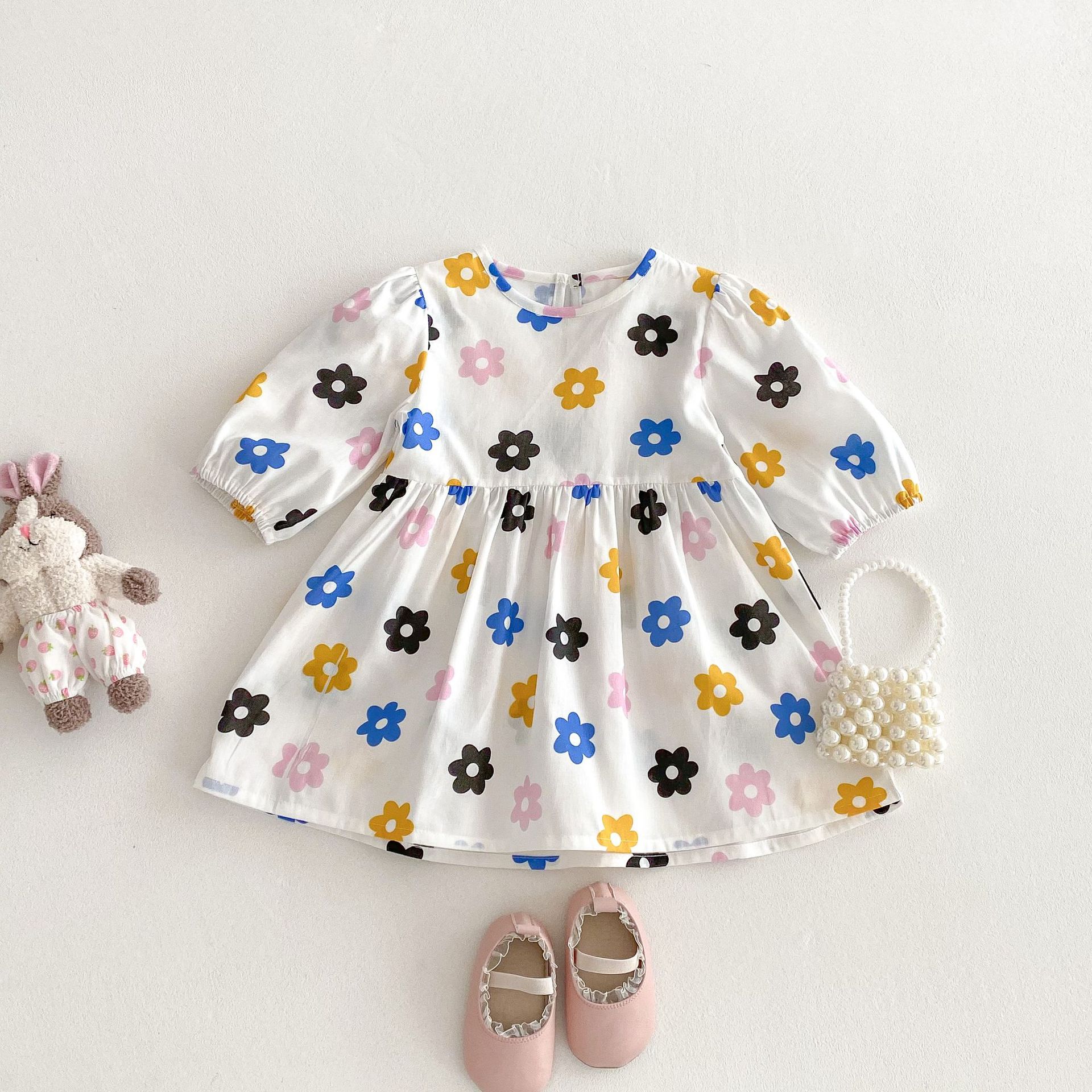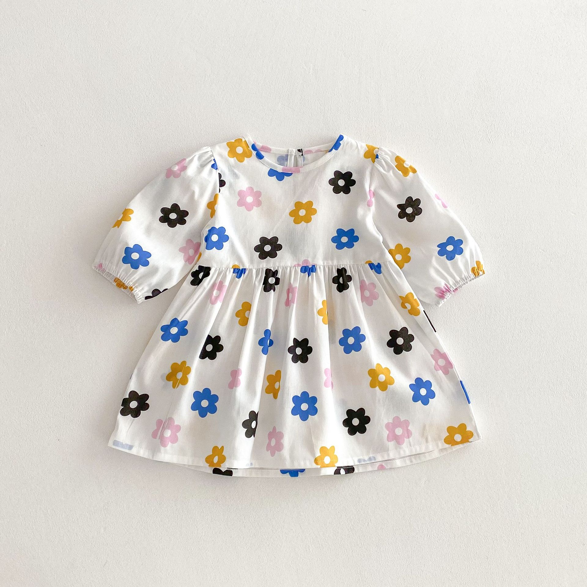 多彩なフラワープリントが目を引く、春夏向けのミッドスリーブワンピースです。軽やかな素材を使用しており、涼しげな着心地で暑い季節でも快適に過ごせます。やわらかなシルエットが動きやすく、1歳から8歳までのお子さまにぴったりです。カジュアルなお出かけや特別なイベントにも活躍する一着で、明るい色合いが可愛らしさを引き立てます。