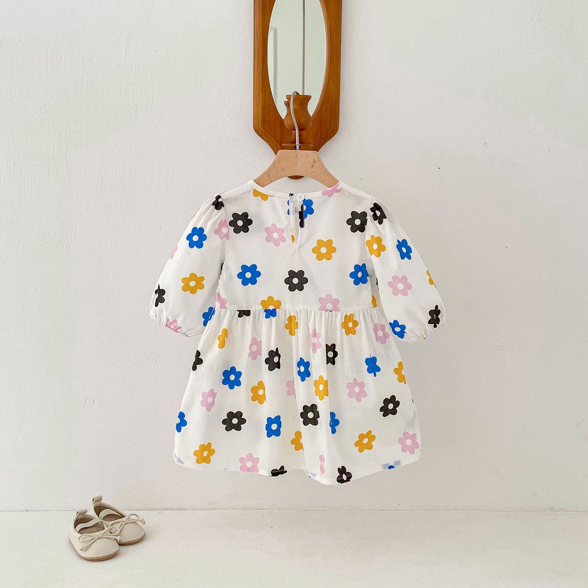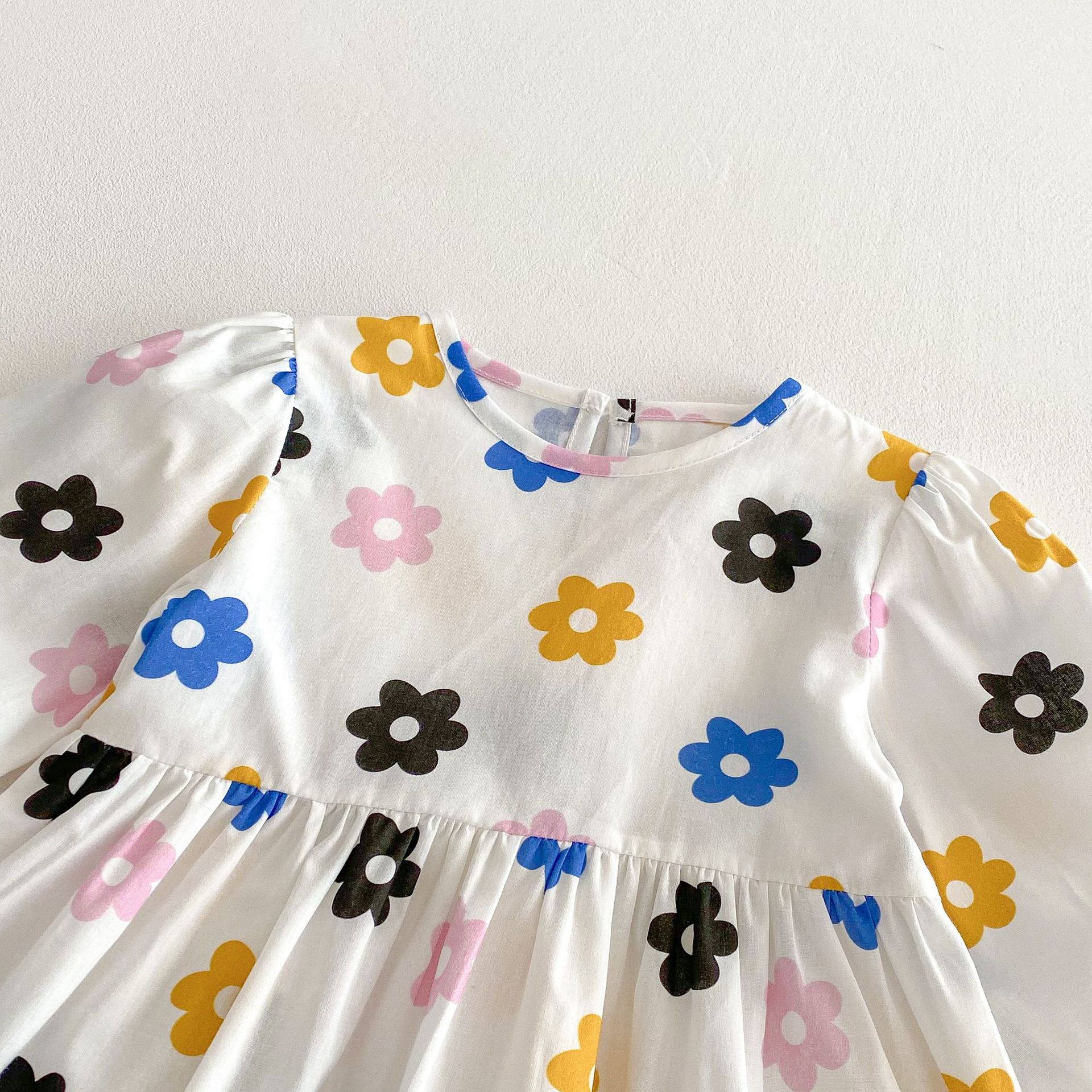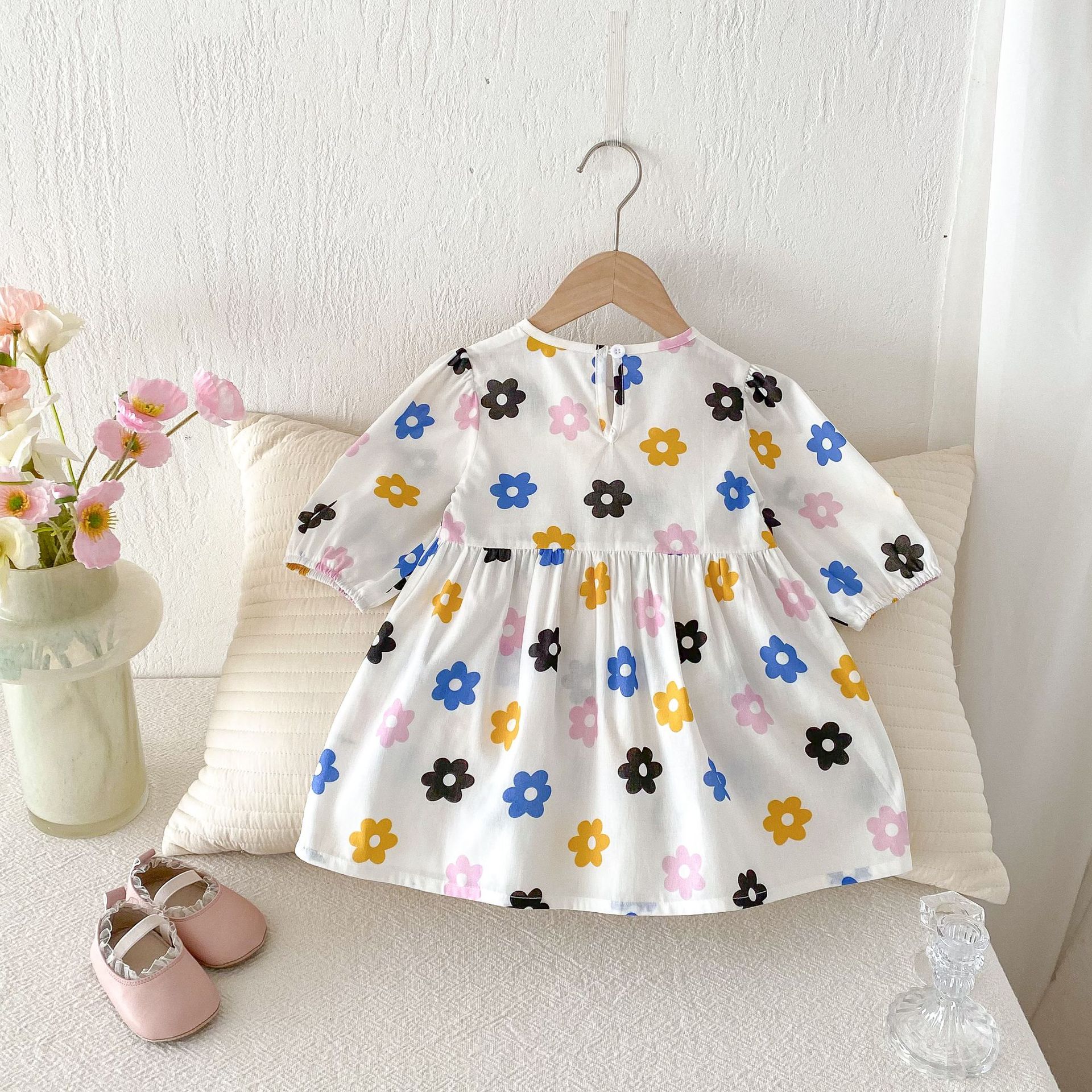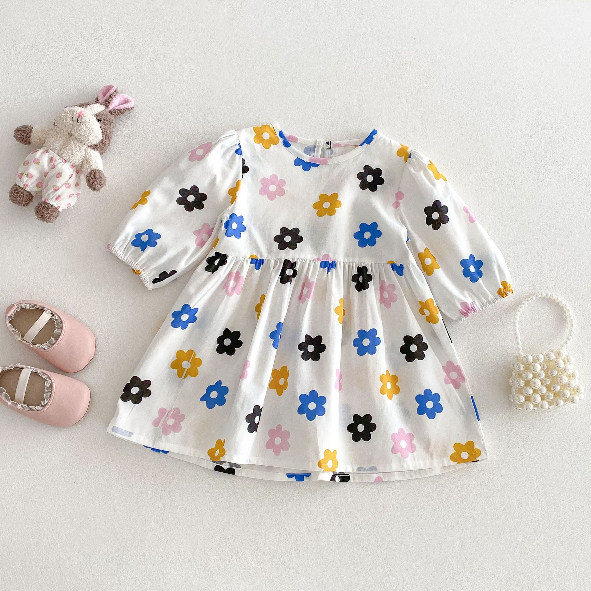多彩なフラワープリントが目を引く、春夏向けのミッドスリーブワンピースです。軽やかな素材を使用しており、涼しげな着心地で暑い季節でも快適に過ごせます。やわらかなシルエットが動きやすく、1歳から8歳までのお子さまにぴったりです。カジュアルなお出かけや特別なイベントにも活躍する一着で、明るい色合いが可愛らしさを引き立てます。