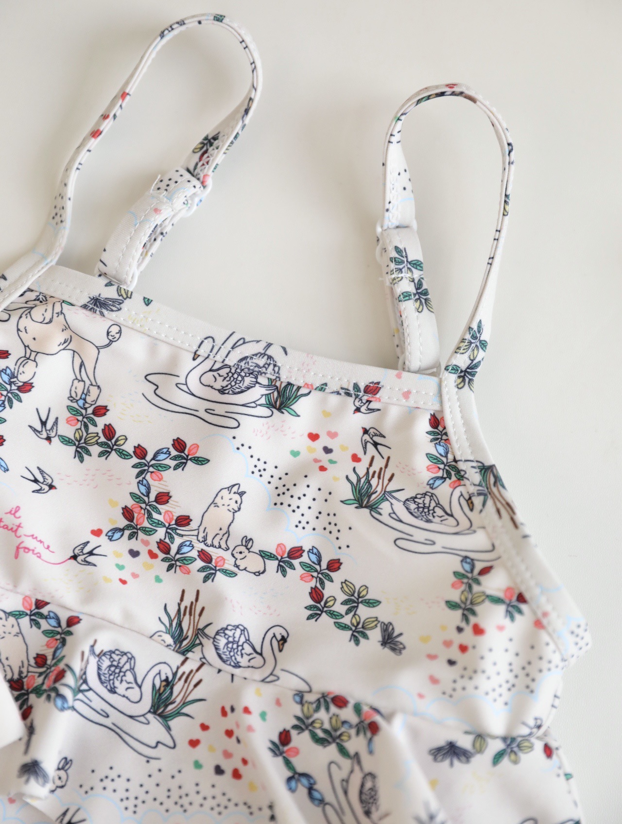 (中国子供製品規定にて肌に触れる部分へのタグの装着は認められていないためほとんど全ての商品のサイズタグはお洋服の外側についておりますが不良ではございません。)
