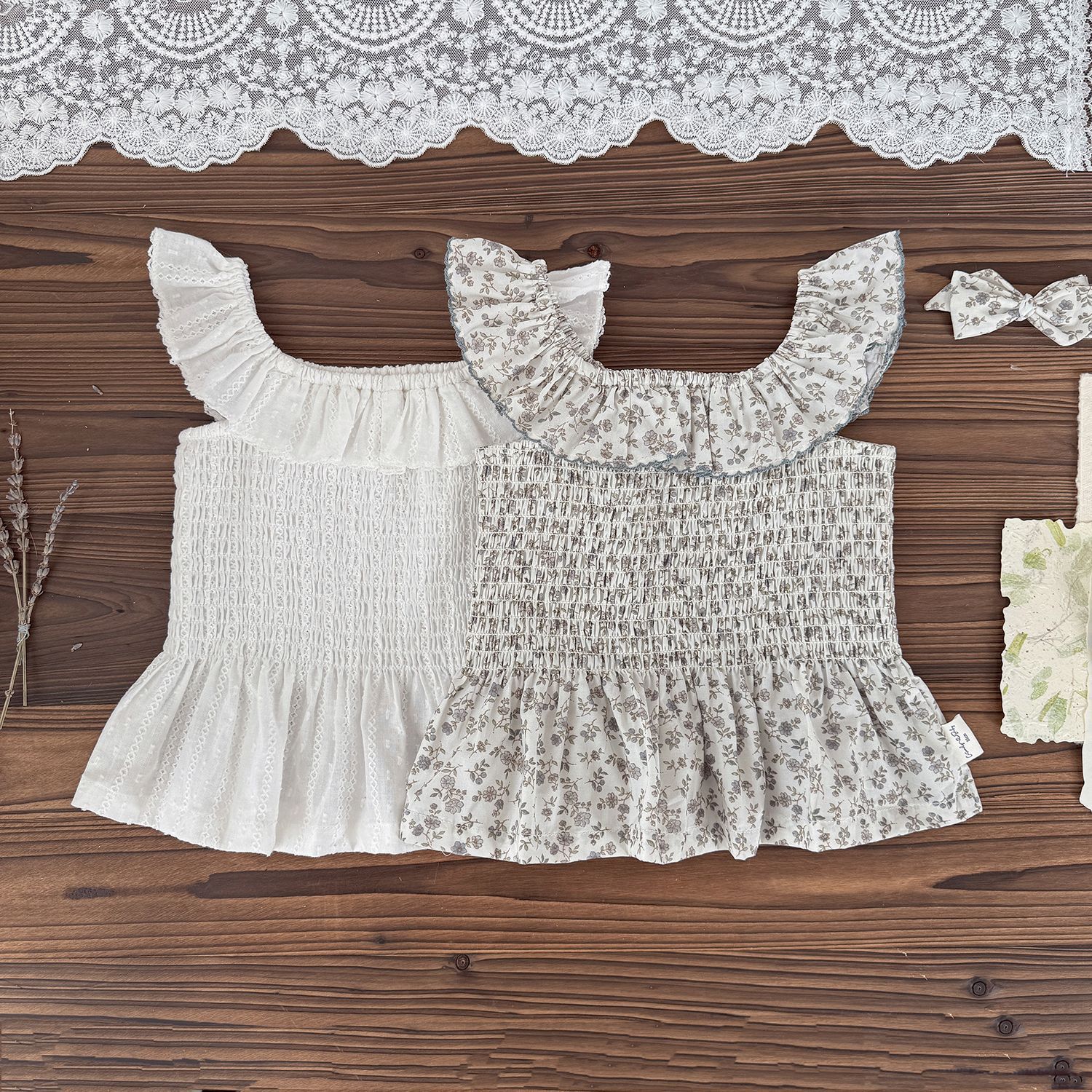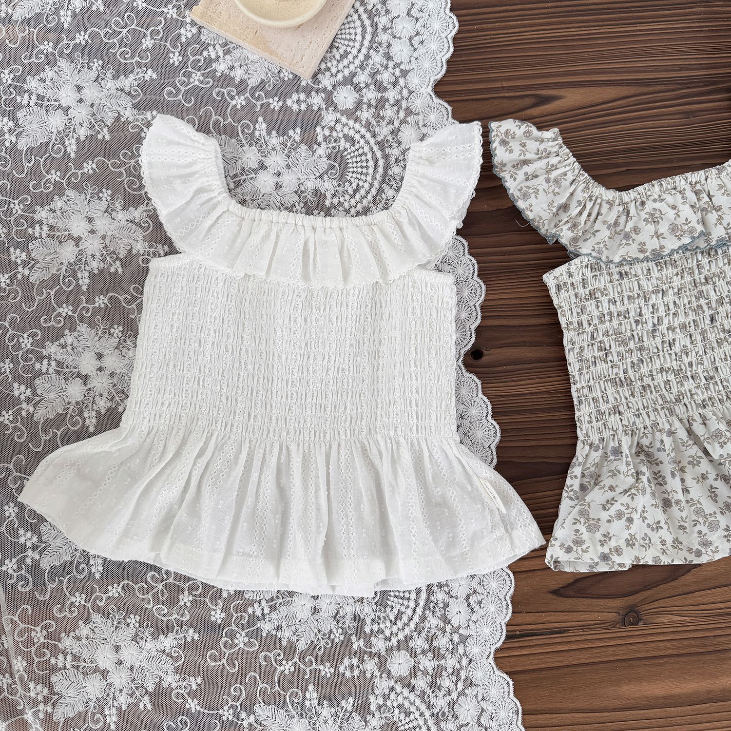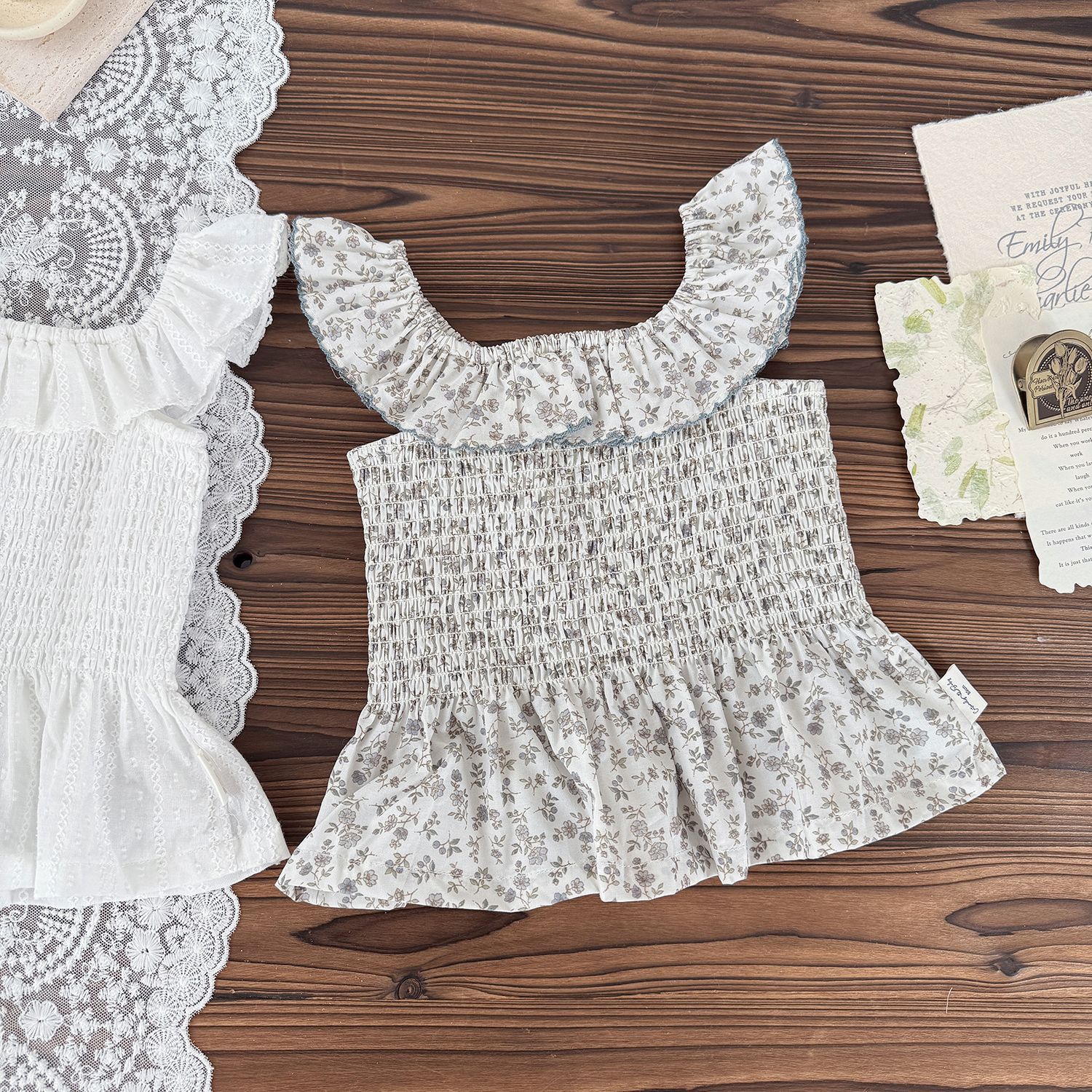 #オフショルトップス #花柄トップス #シャーリング #女の子服 #夏コーデ #ガーリースタイル #パフスリーブ