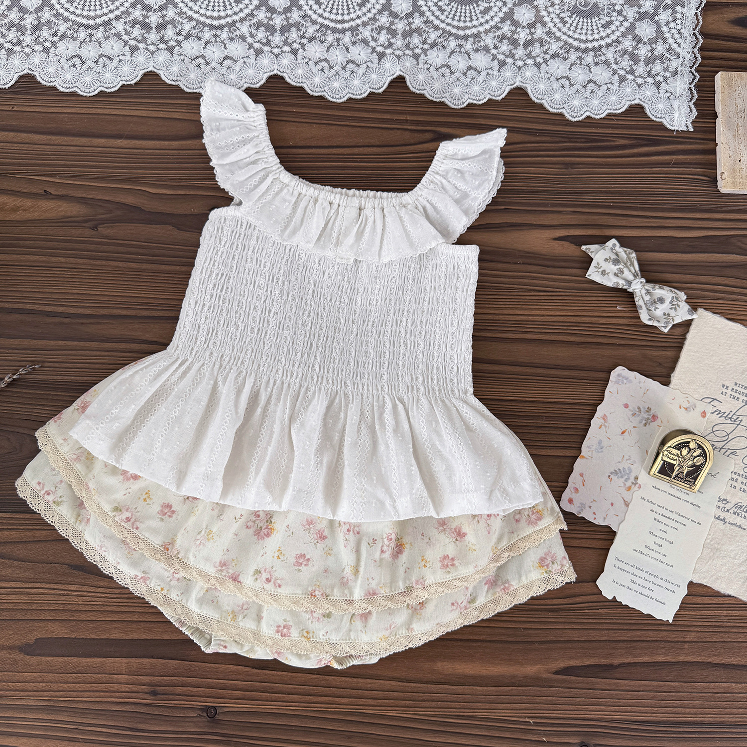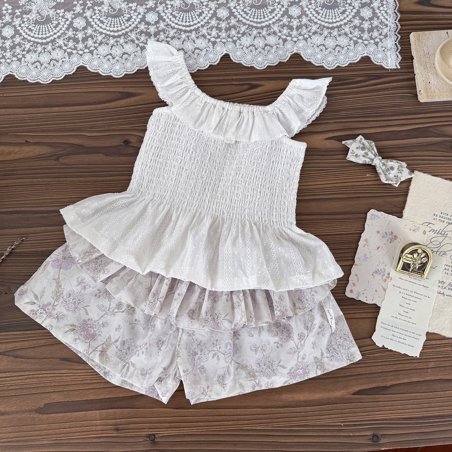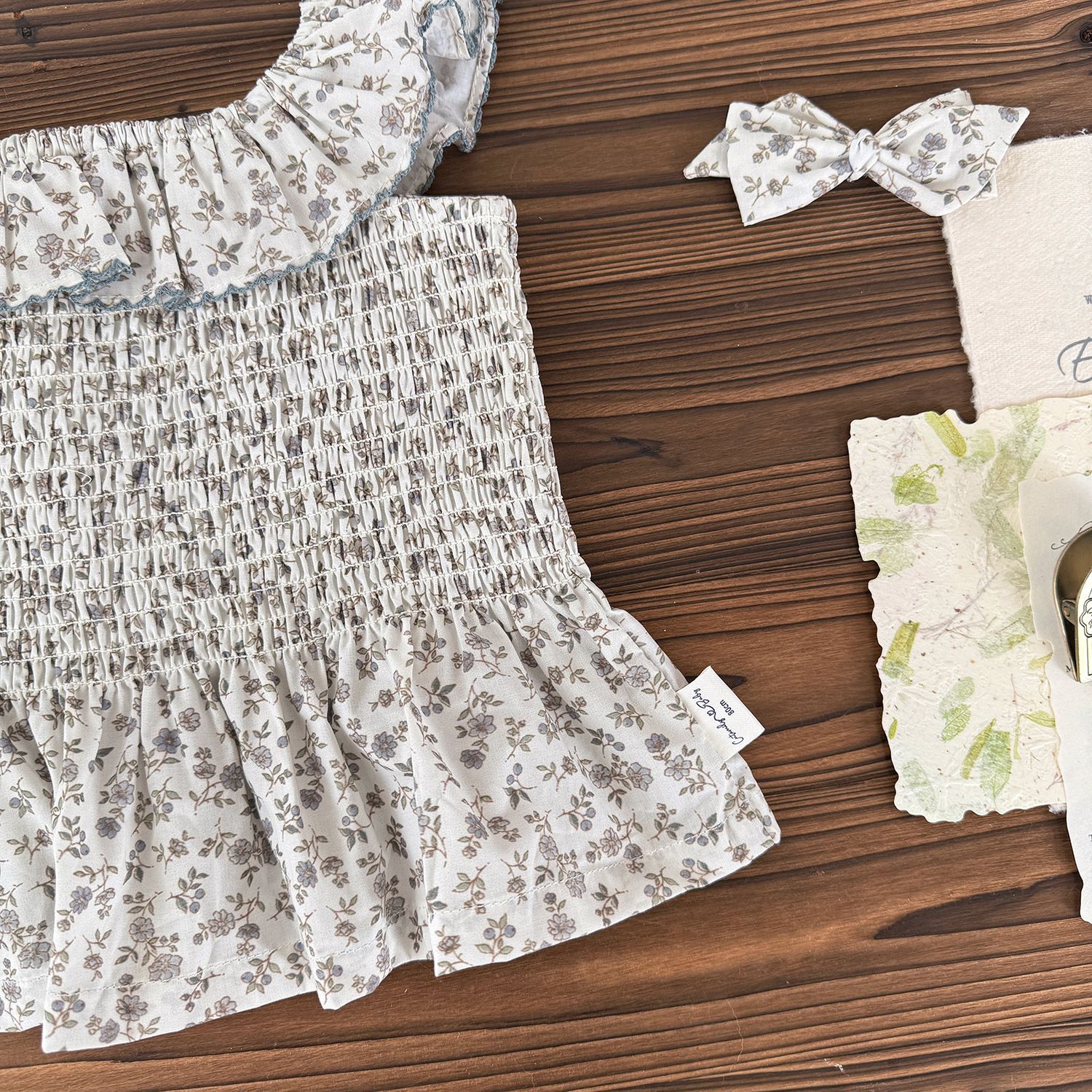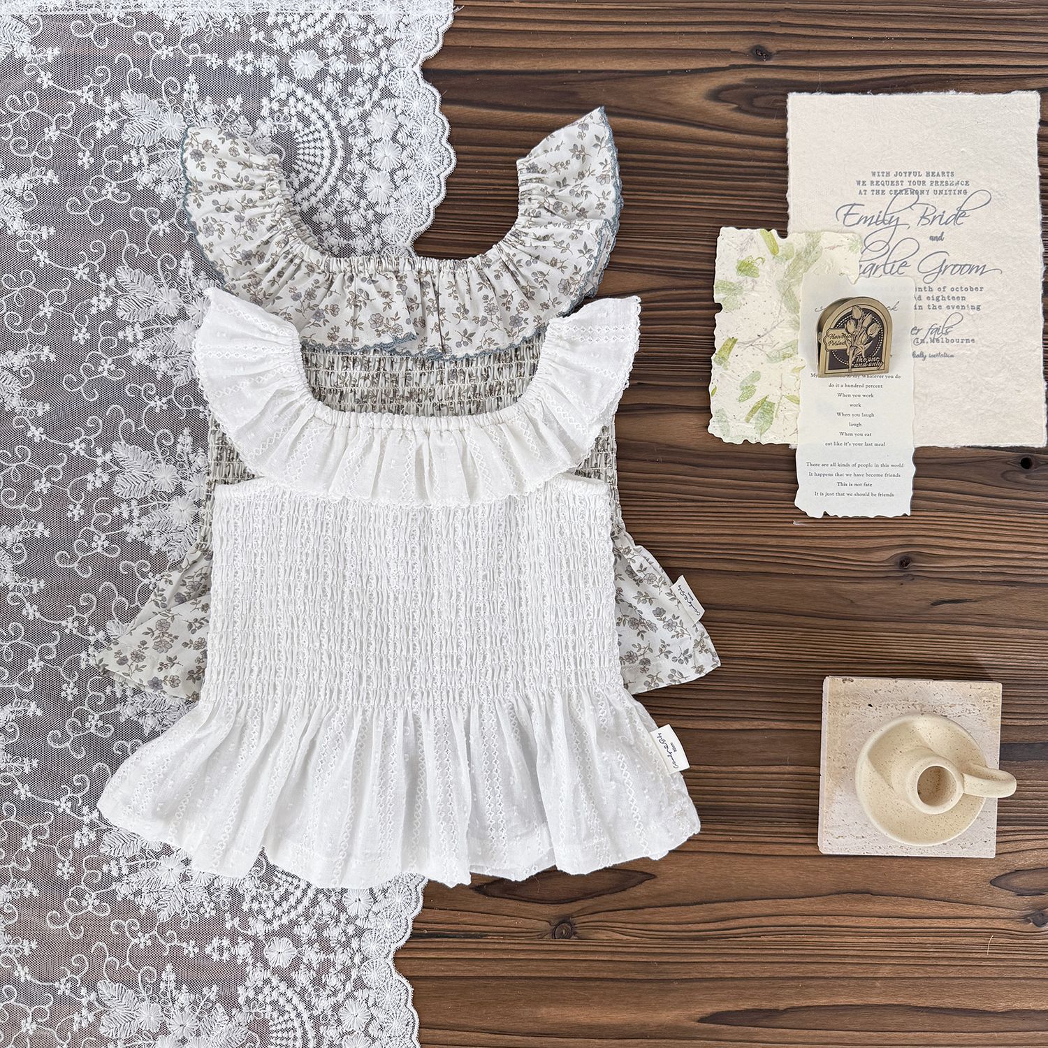 #オフショルトップス #花柄トップス #シャーリング #女の子服 #夏コーデ #ガーリースタイル #パフスリーブ
