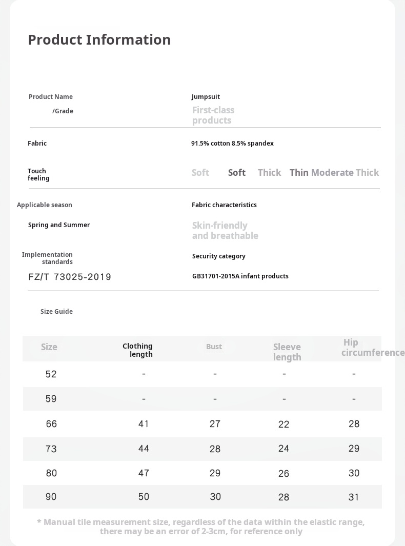 *海外製の布地は伸縮率が悪いものが多く、細身で記載サイズよりも着せにくい場合がございます。