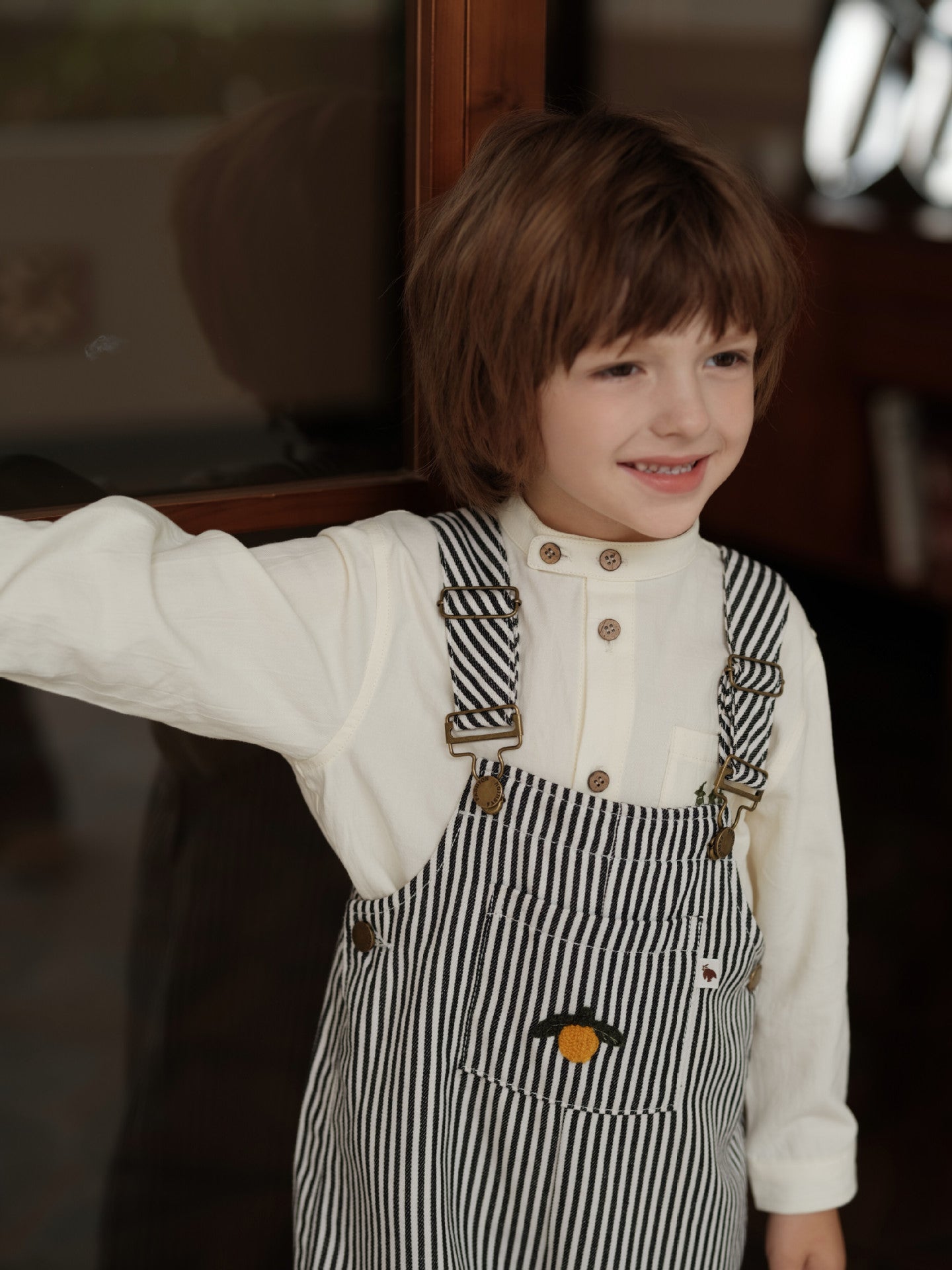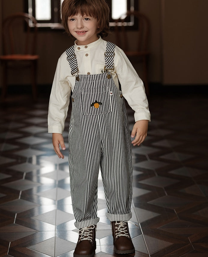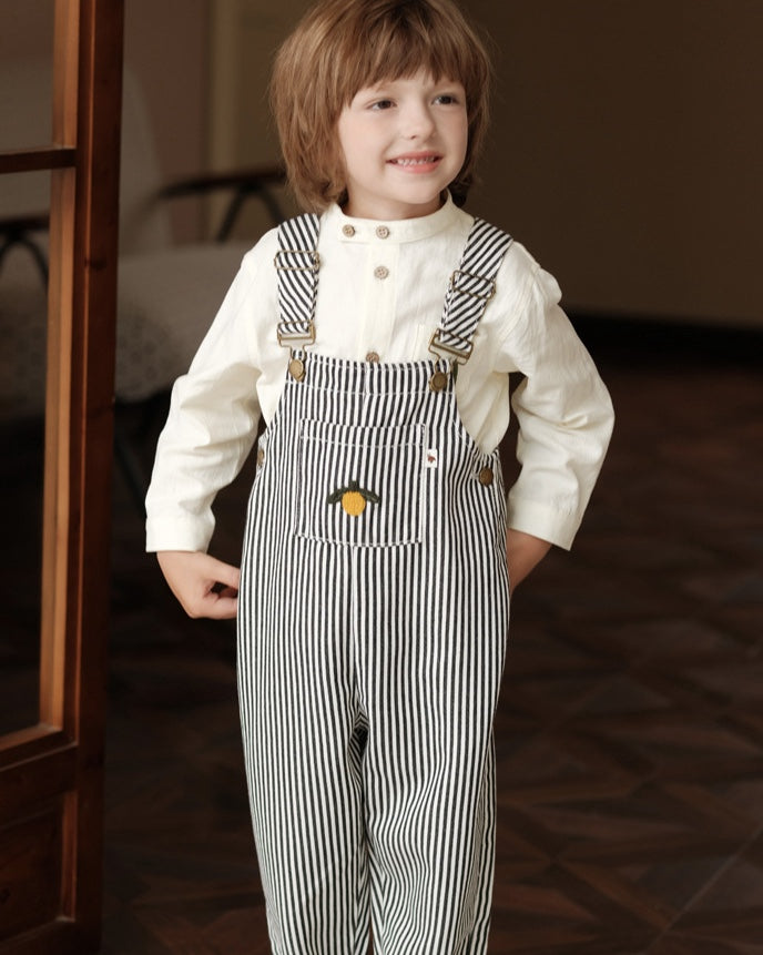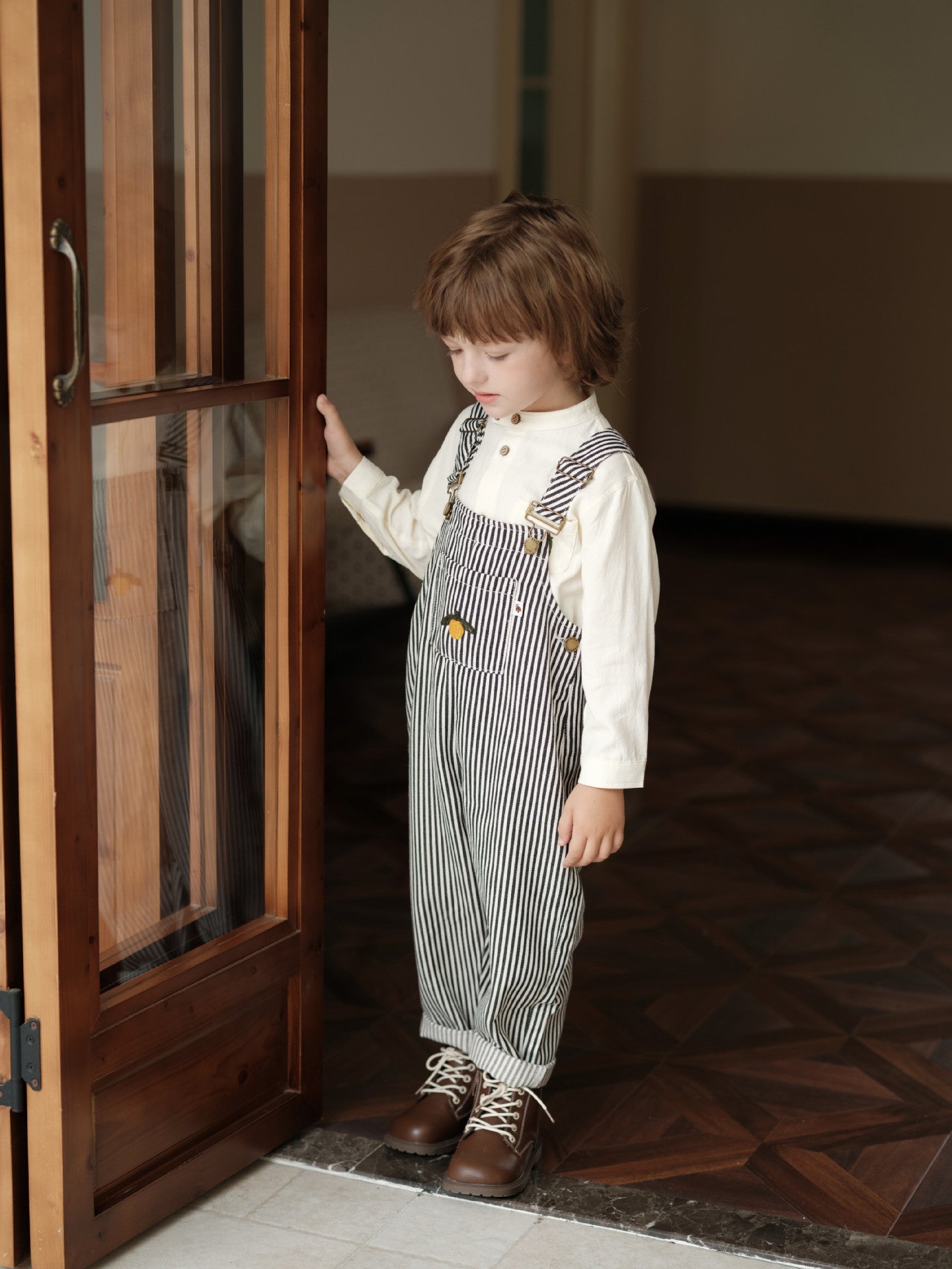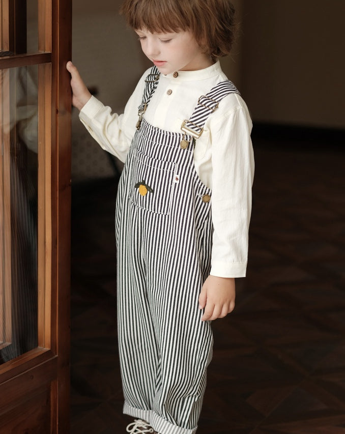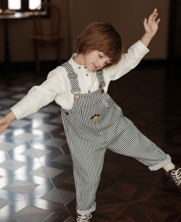 カジュアルでありながらどこかレトロなムードを漂わせる、ストライプ柄のオーバーオールです。ゆったりとしたルーズなシルエットは、動き回る子どもたちの毎日を快適にサポートします。男の子にも女の子にもフィットするジェンダーレスなサロペットは、インナー次第で様々な表情を見せ、おしゃれなキッズスタイルを完成させる万能な一枚です。