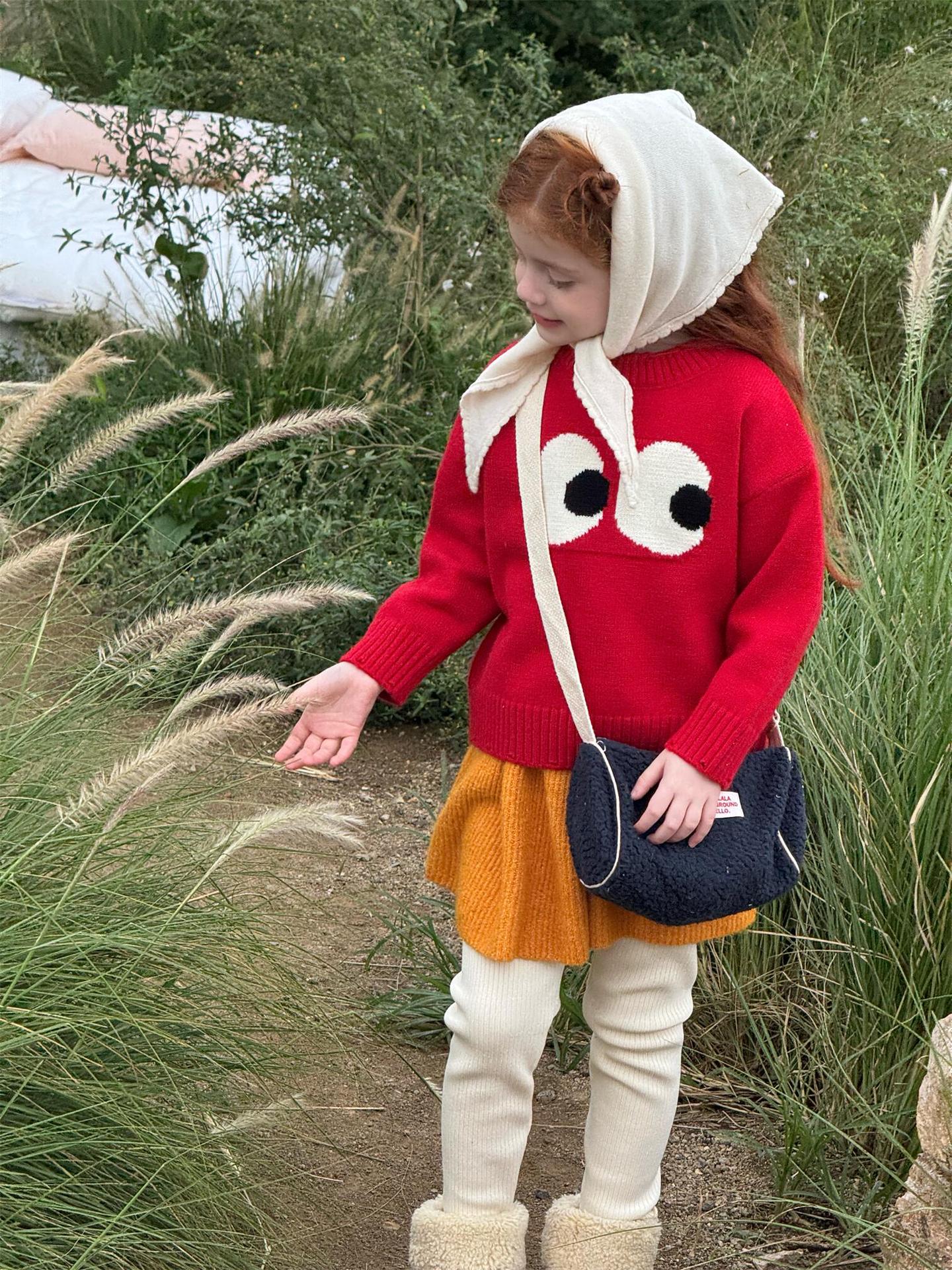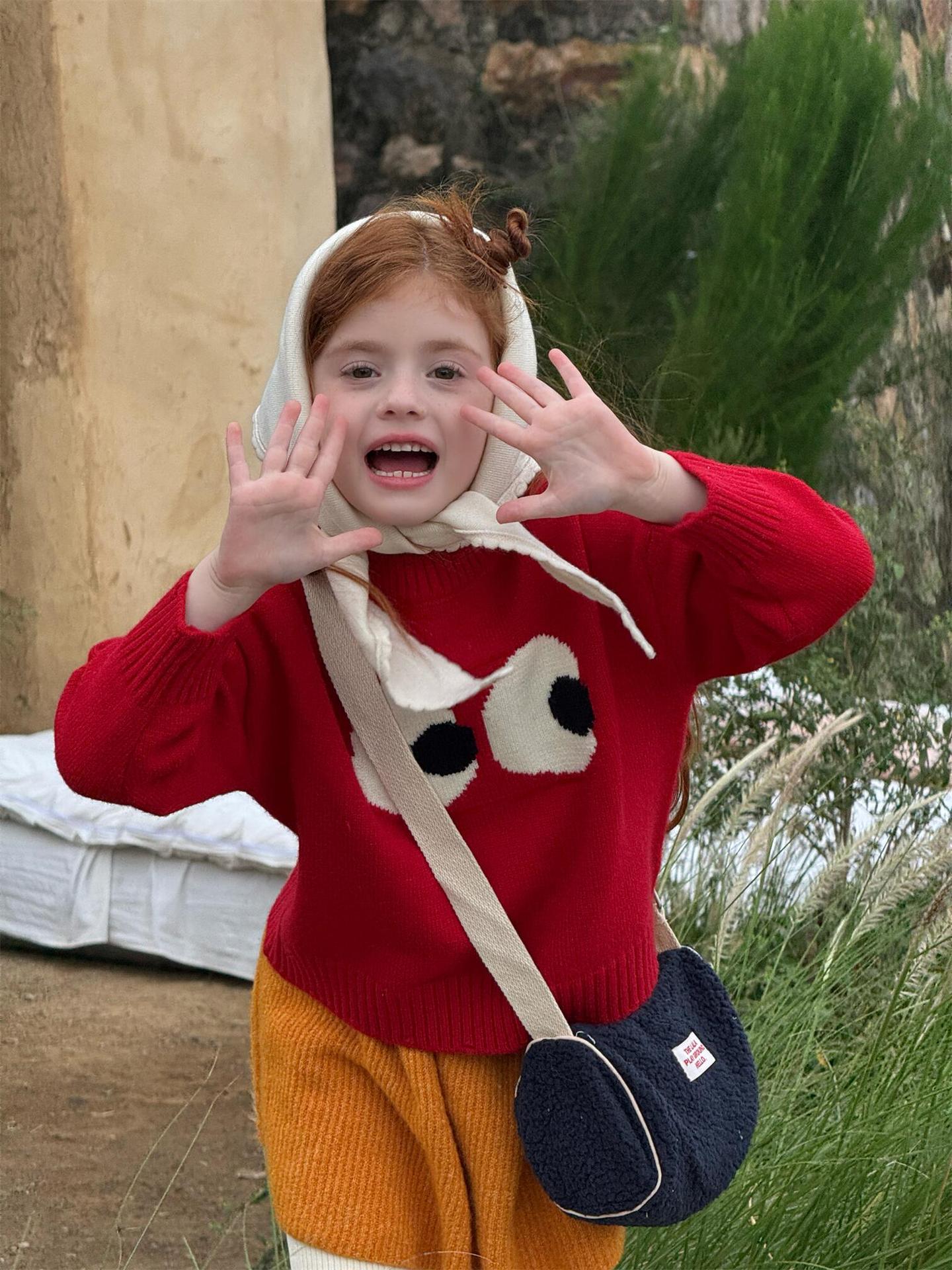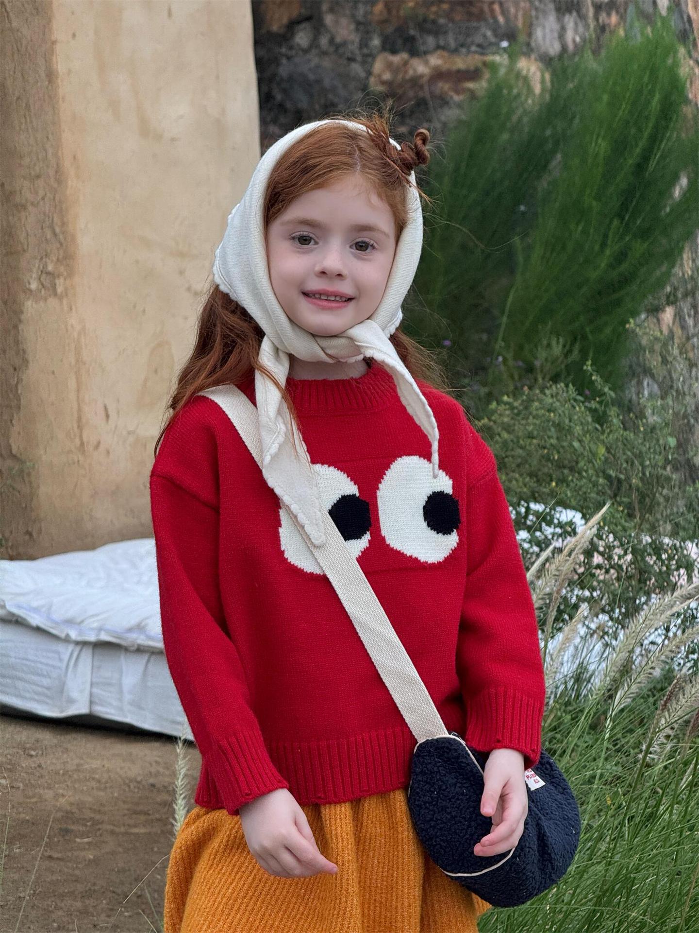 ふっくらと柔らかな肌触りが心地よい長袖ニットセーターは、大きなもこもこ目玉のモチーフが遊び心をくすぐるデザインです。ゆったりとしたシルエットのクルーネックプルオーバーは、着るだけで愛らしいムードを演出し、女の子のデイリーコーディネートをクラスアップします。シンプルながらも存在感のあるビッグアイニットは、お出かけを楽しく彩る子ども服として、感度の高い方々から注目のアイテムです。