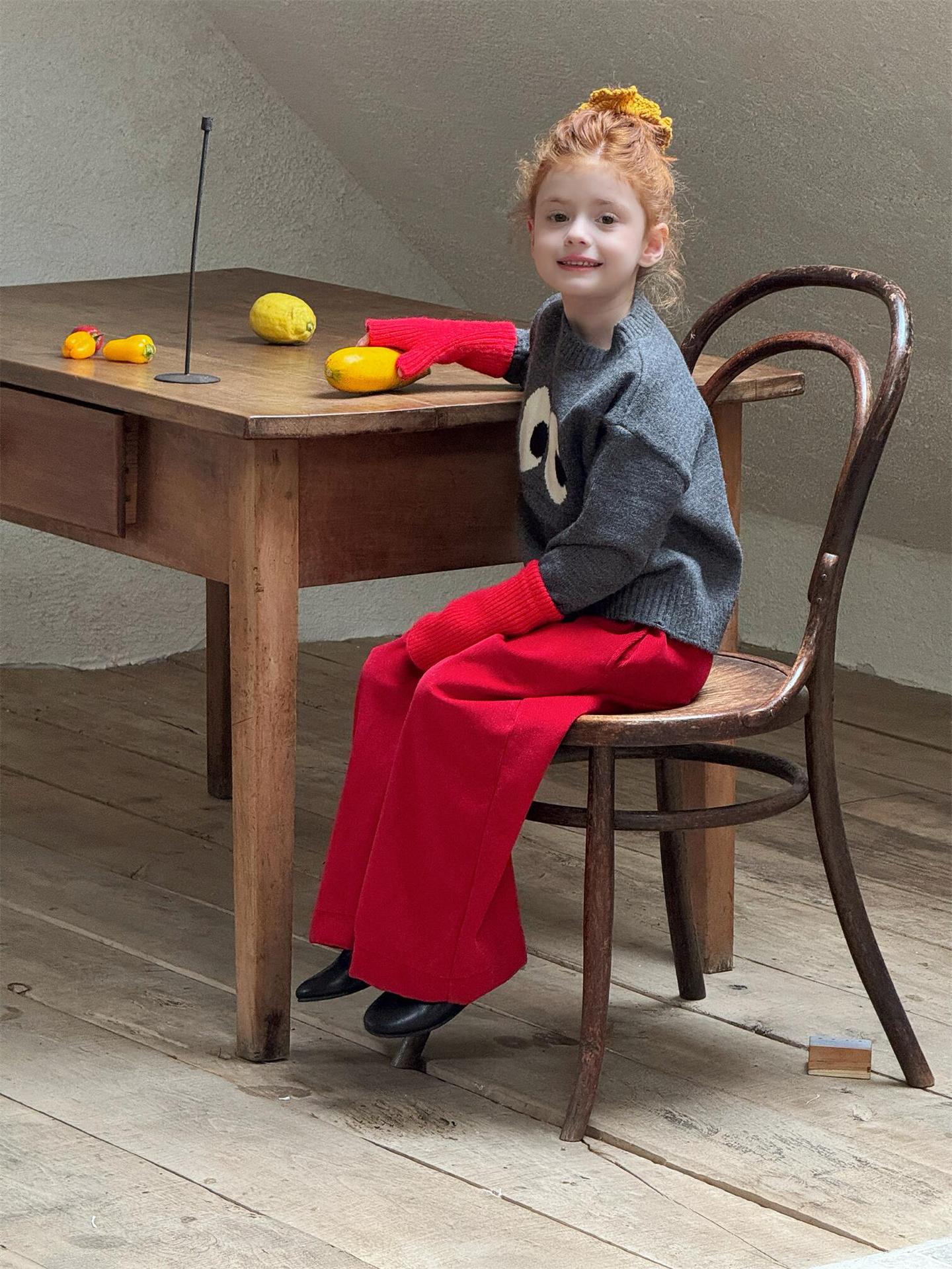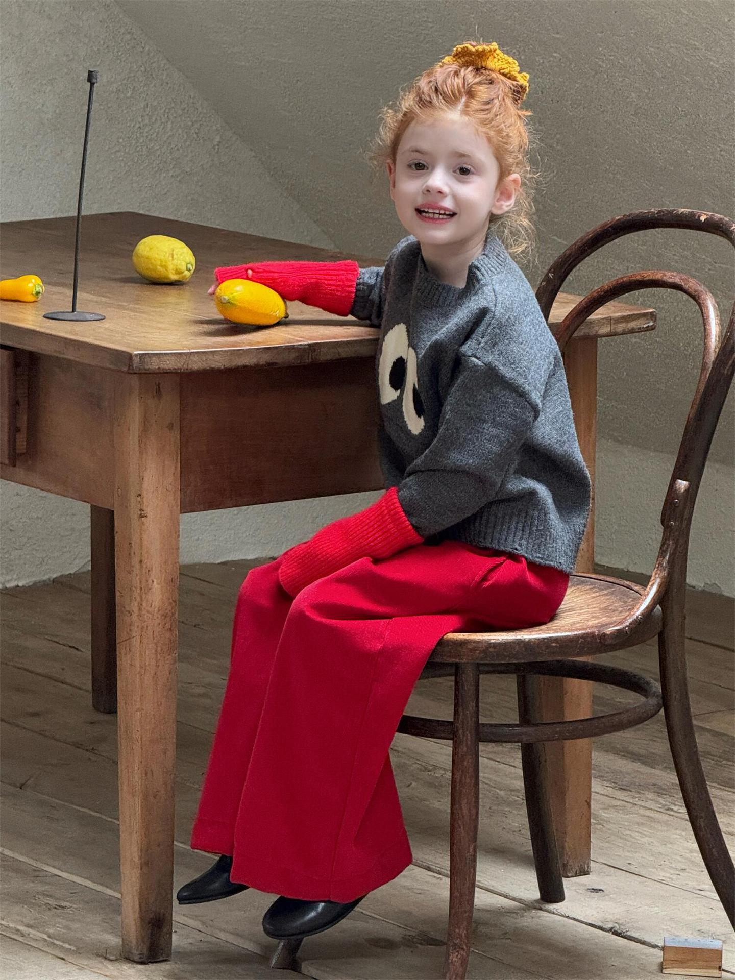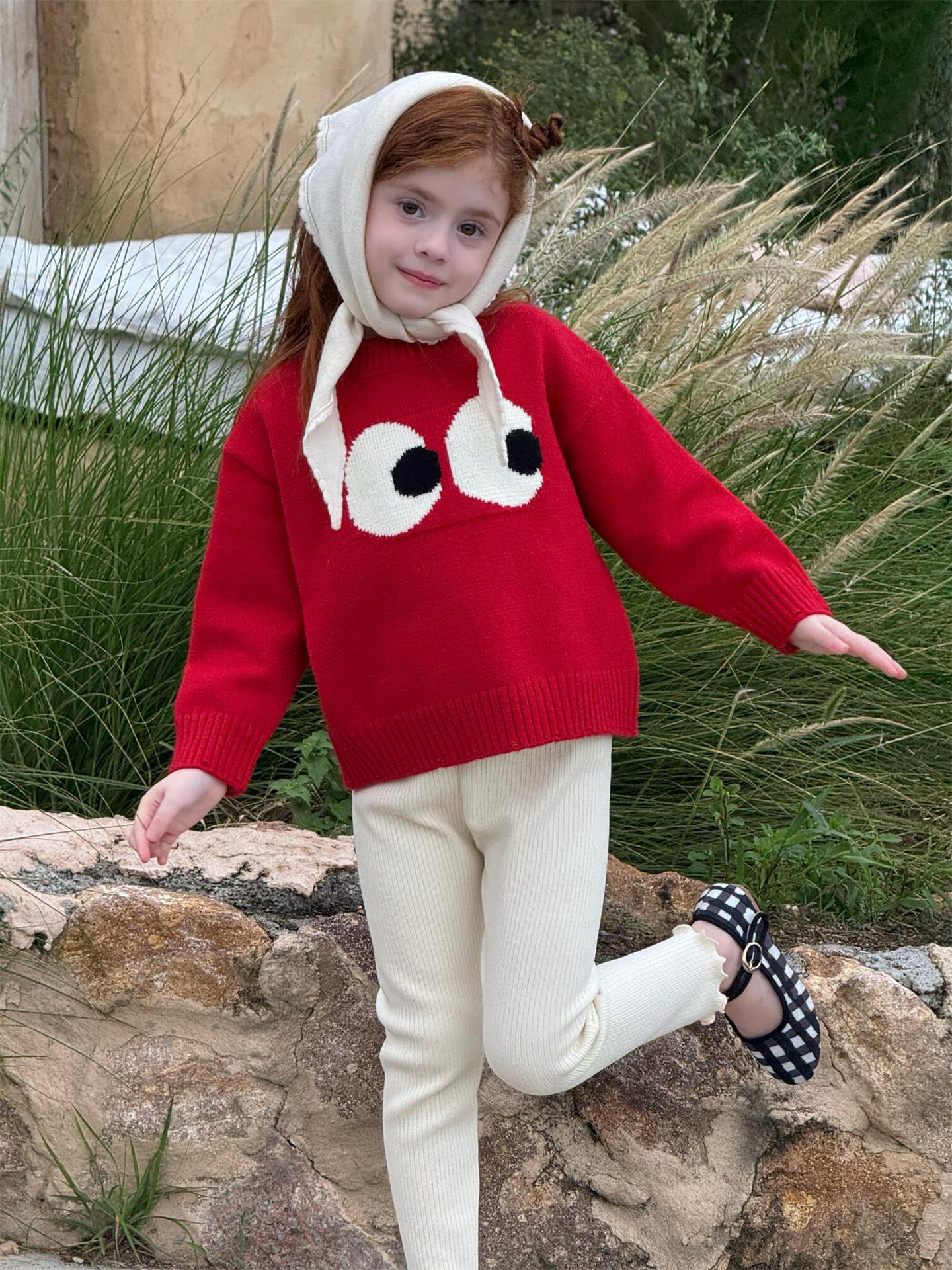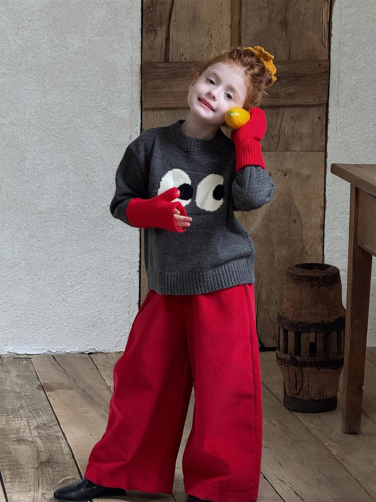 ふっくらと柔らかな肌触りが心地よい長袖ニットセーターは、大きなもこもこ目玉のモチーフが遊び心をくすぐるデザインです。ゆったりとしたシルエットのクルーネックプルオーバーは、着るだけで愛らしいムードを演出し、女の子のデイリーコーディネートをクラスアップします。シンプルながらも存在感のあるビッグアイニットは、お出かけを楽しく彩る子ども服として、感度の高い方々から注目のアイテムです。