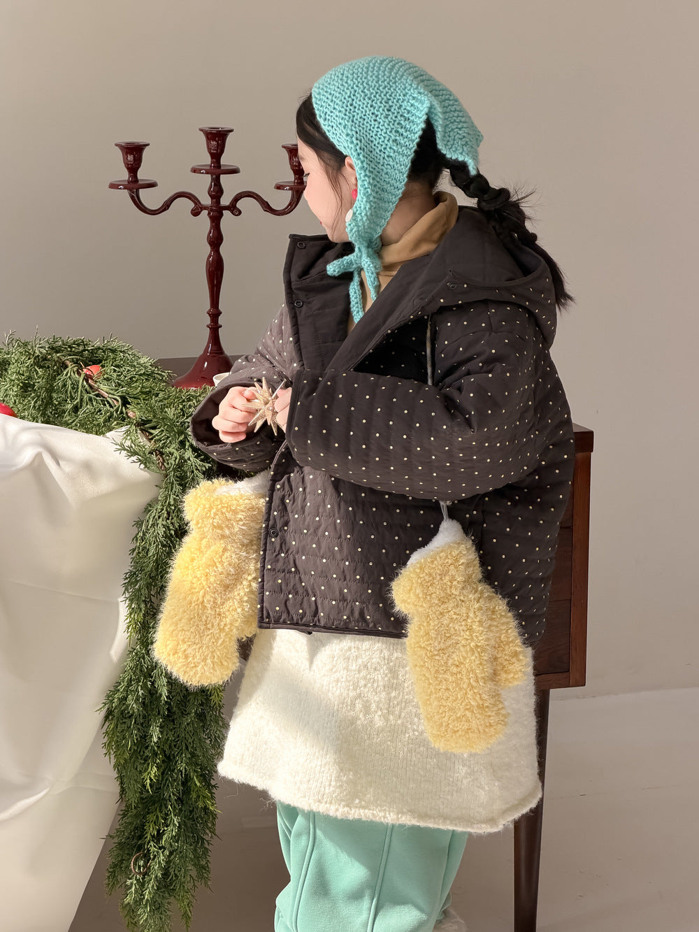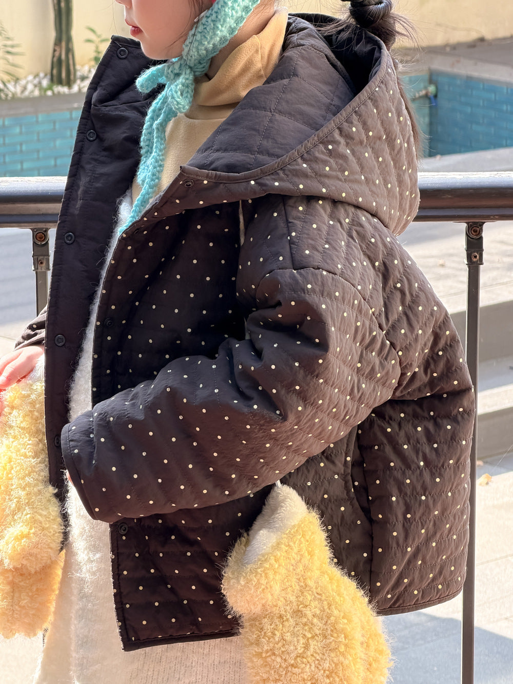 中綿ブルゾンジャケット 水玉ドットプリント フーディ アウター【mh0011861】